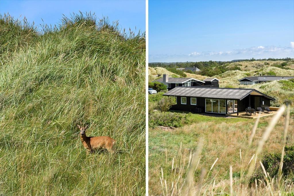Sommerhuset ligger lige ud til et åbent naturareal, hvilket er med til at understrege den uforstyrrede og rolige atmosfære. Vil I på gåtur eller et smut ned til stranden for at bade, kan I følge de små stier fra Svendborgvej og lige ud i det naturskønne sommerhusområde. Saltum Strand ligger bare 675 meter væk, så det er oplagt at hilse på Vesterhavet hver eneste dag på ferien. Er I til sjove forlystelser og badeland, er det rart at have nem adgang til Fårup Sommerland, og den korte afstand til Saltum, Blokhus og Hune giver jer et godt udvalg af spisesteder, indkøbsmuligheder og ferieaktiviteter at vælge imellem.