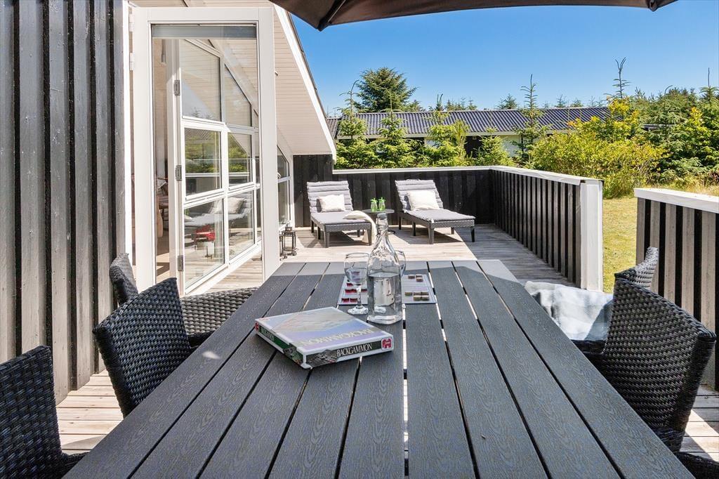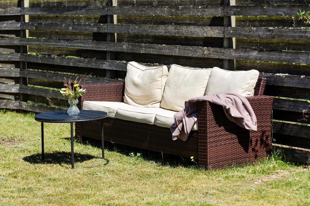 Når vejret viser sig fra sin bedste side, er det oplagt at tilbringe dagene udenfor. Sommerhuset ligger på en helt ugeneret grund, hvor du kan nyde freden og roen i fulde drag. Den store terrasse mod syd er perfekt til solbadning, grillmiddage og hyggelige stunder med udsigt til den omgivende natur. Der er rig mulighed for at finde den helt rette siddeplads dagen lang, hvad enten du søger skygge eller sol. Tænd op i grillen og lad duften af sommer sprede sig, mens I nyder måltidet under åben himmel.