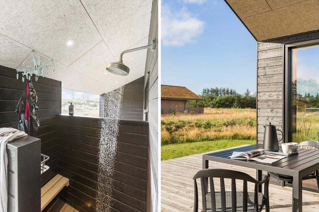 Udendørs byder sommerhuset på en stor terrasse med udendørs bruser, hvor du kan nyde solen hele dagen i rolige og naturskønne omgivelser. Beliggenheden er ideel med kort afstand til både Blokhus Klitplantage og Saltum Strand, samt lokale butikker og restauranter. Her er der perfekte muligheder for både afslapning og aktiviteter i naturskønne omgivelser.