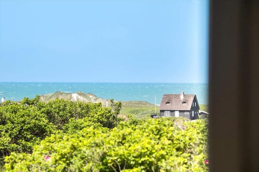 Dette store kvalitetssommerhus fra 2022 er udstyret med bordtennisbord, vildmarksbad og petanquebane, men det er nu beliggenheden, der indledningsvis skal fremhæves. Sommerhuset er nemlig placeret på en lille, lukket vej nær Saltum Strand, og så ligger det højt i landskabet, så I kan skue ud over det naturskønne kystlandskab og Vesterhavet fra stuen.