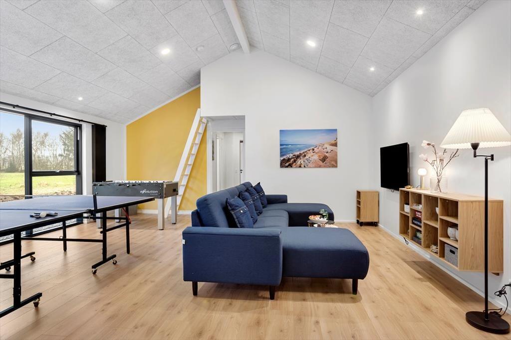 Drømmeferien kan blive til virkelighed på Solmarken 1. Dette smukke og velindrettede sommerhus, der ligger her i Saltums naturomgivelser, er nemlig udstyret med et sjovt aktivitetsrum, et udendørs wellnessmiljø og det lækreste køkken i opholdsafdelingen – og takket være de mange sengepladser kan du tilbringe tiden sammen med en stor flok af familiemedlemmer eller venner.
