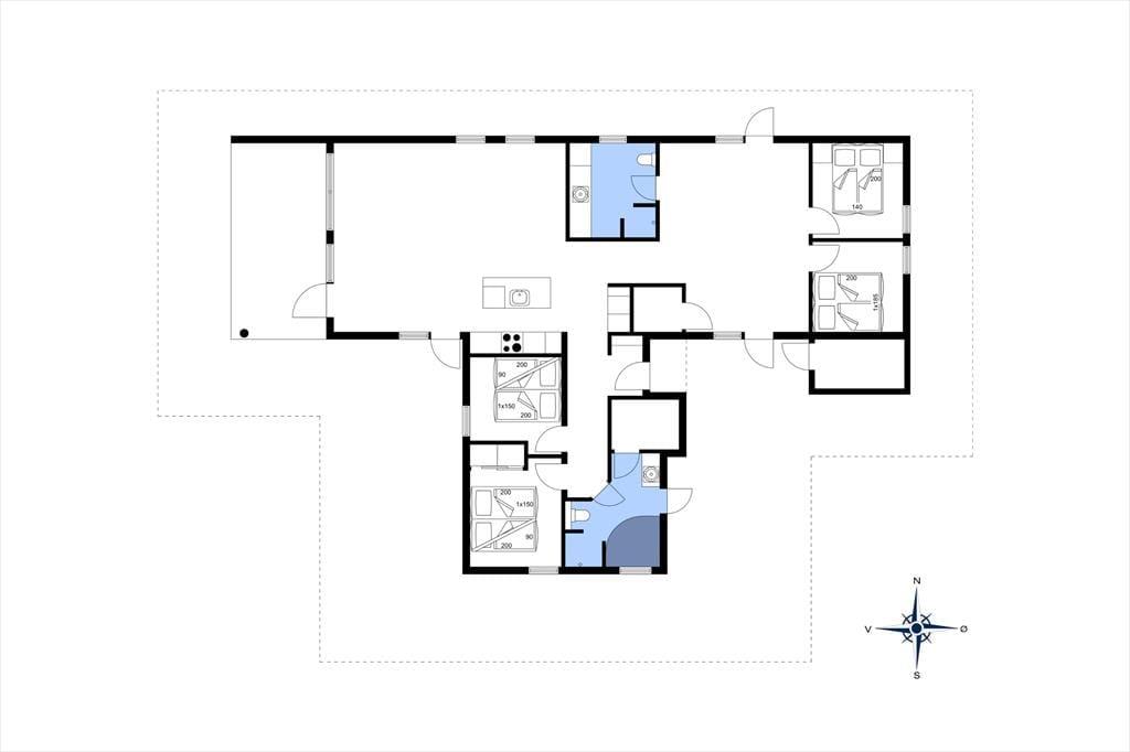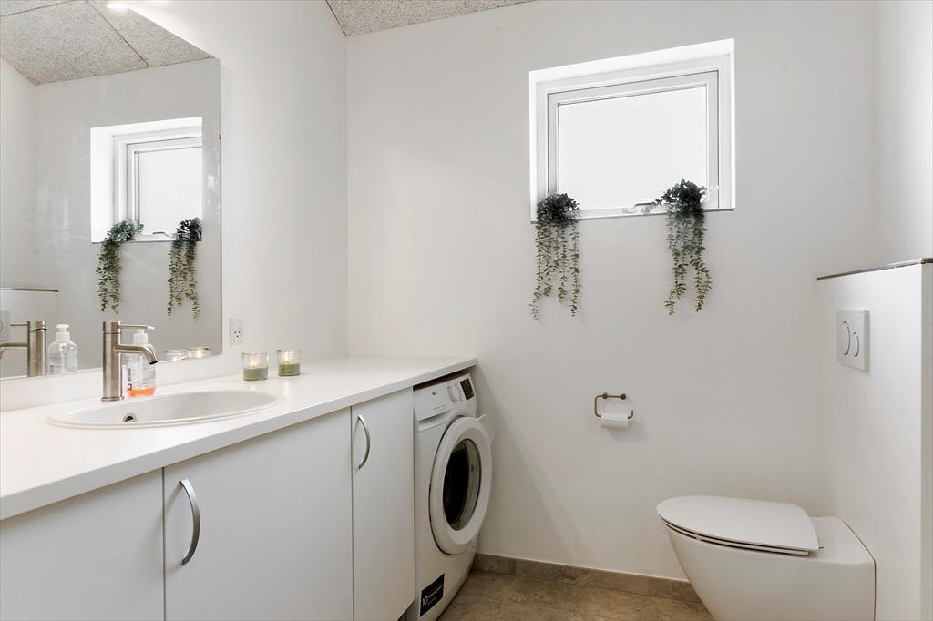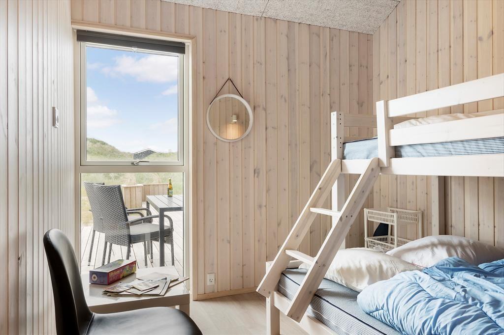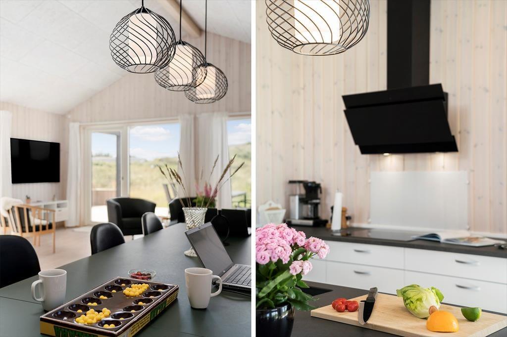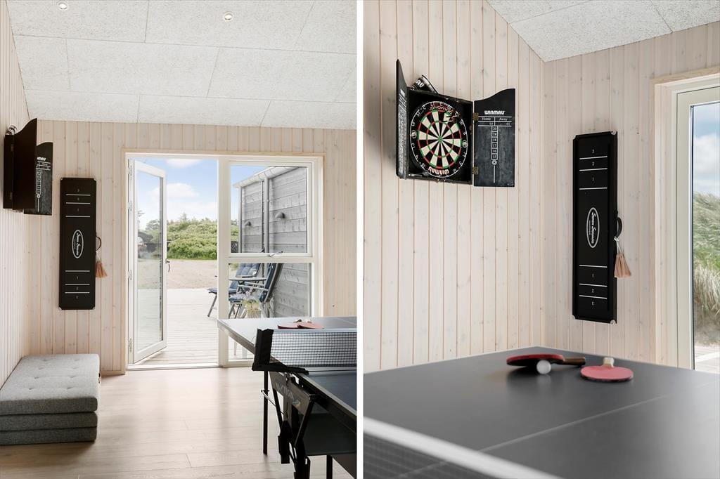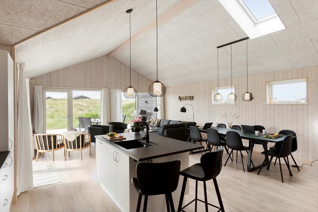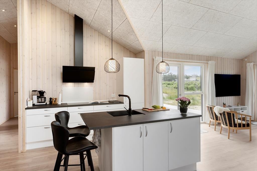 Når du træder ind i dette sommerhus, møder du et lyst og rummeligt køkken alrum, der indbyder til fælles madlavning og hyggelige middage. Her er der masser af plads til at samles omkring måltiderne eller blot slappe af med en god bog eller en film. Køkkenet er veludstyret, så du nemt kan trylle lækre retter frem, mens resten af familien hygger sig i alrummet. Sommerhuset er smart opdelt i en voksen- og en børneafdeling, hvilket gør det ideelt for to familier at dele. Voksenafdelingen byder på rolige soveværelser og et badeværelse, mens børneafdelingen er designet til leg og hygge med et tilstødende aktivitetsrum, hvor børnene kan boltre sig med spil og sjov.