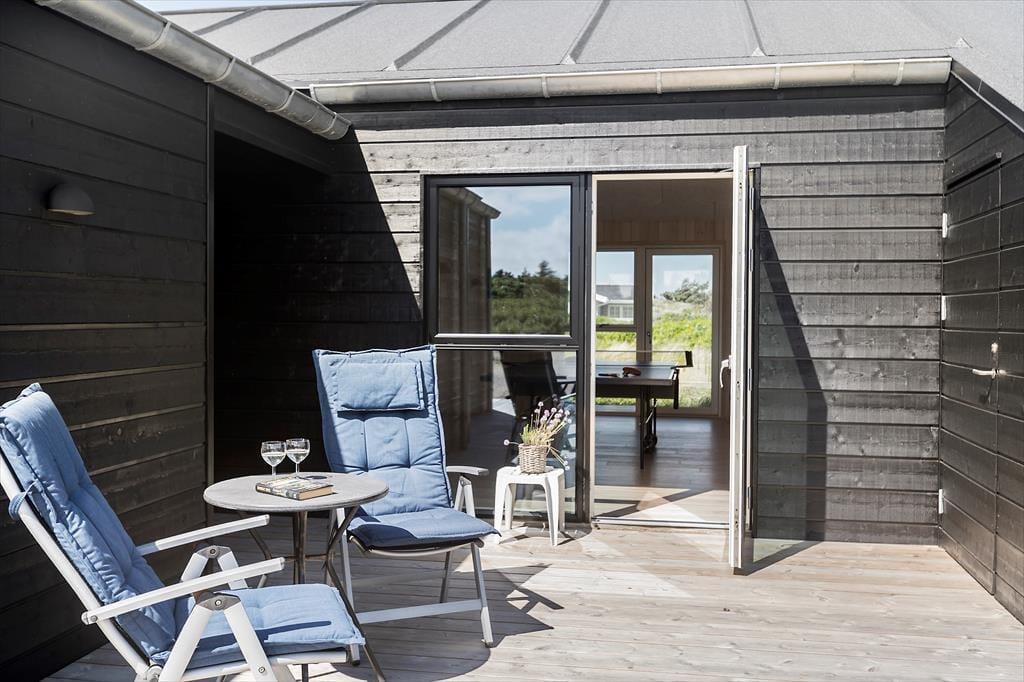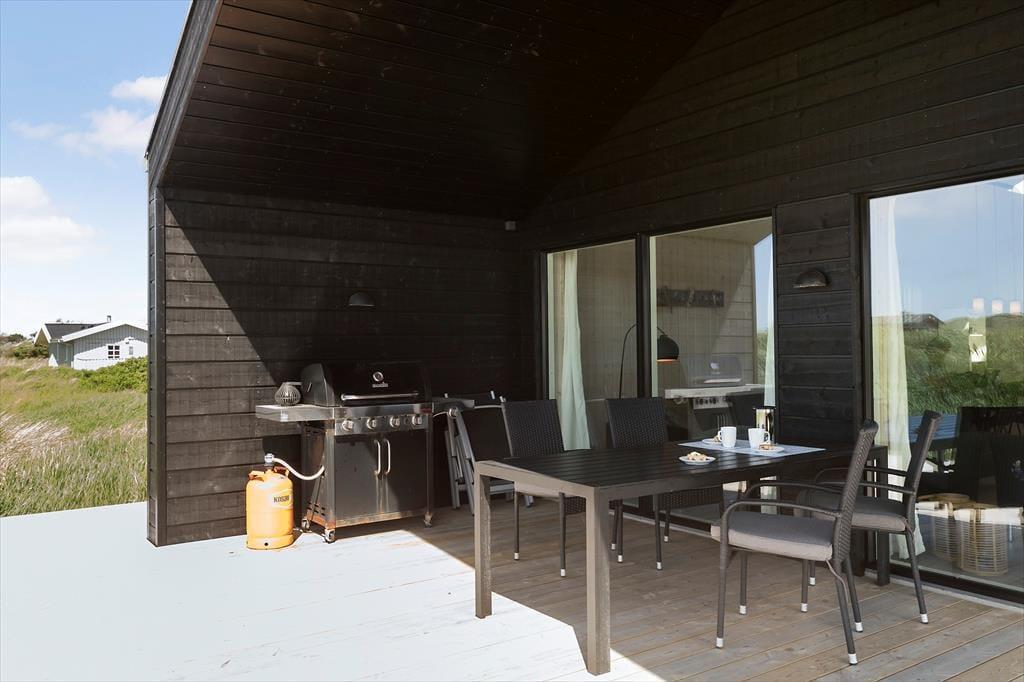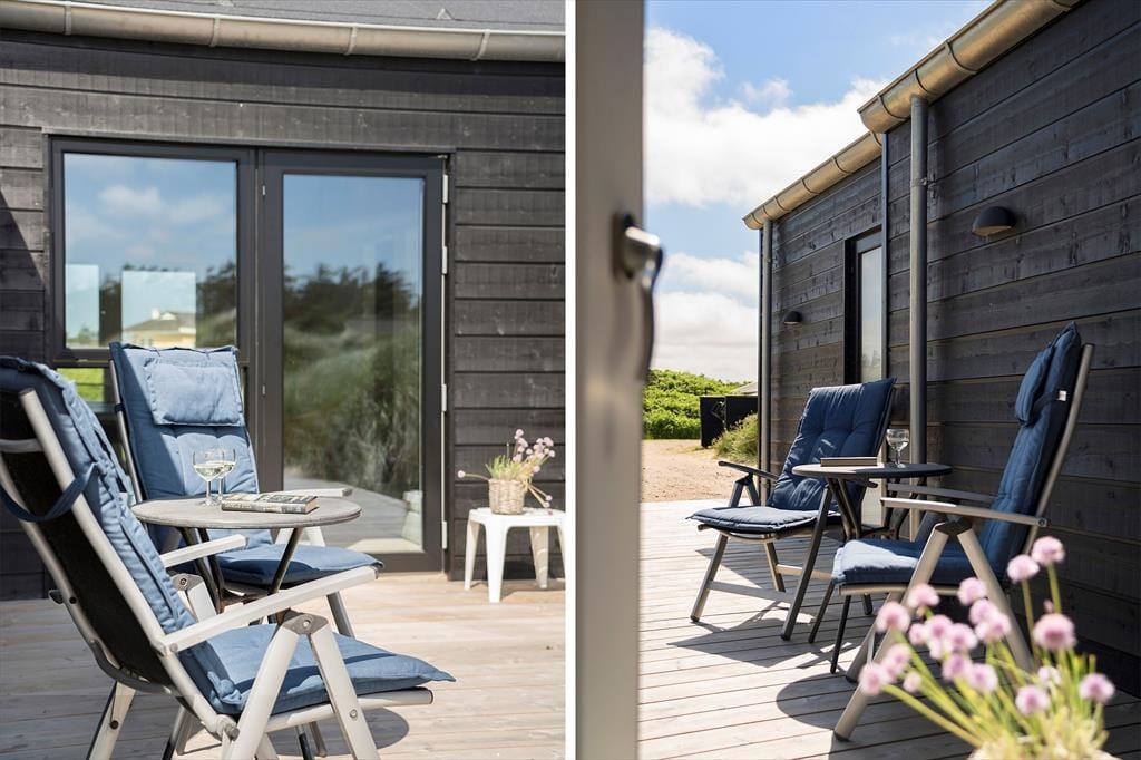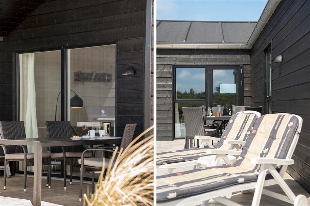 En af sommerhusets absolutte perler er den store terrasse, der breder sig rundt om huset og giver mulighed for at finde både sol og skygge hele dagen. Her kan du starte dagen med en kop kaffe i morgensolen og afslutte den med en middag under åben himmel, mens solen går ned. Terrassen er udstyret med komfortable havemøbler og en grill, så der er rig mulighed for at nyde måltiderne udendørs. Når børnene har brug for at brænde noget energi af, kan de frit lege på den store, grønne grund, mens de voksne slapper af og nyder roen.
