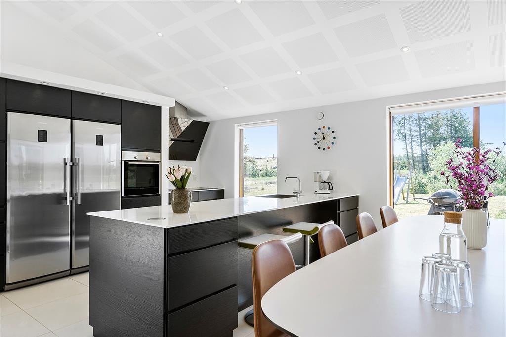 Et lyst og indbydende sommerhus med en dejlig afslappende atmosfære: her kan hele familien komme helt ned i gear og lade op til hverdagens høje tempo igen. Huset er indrettet med en gang der går gennem huset hvorfra der er adgang til alle husets rum. Gangen er i åben forbindelse med køkken og spiseplads der går ud i et. 3 gode værelser, de to med dobbeltsenge og det sidste med enkeltsenge. Fra gangen er der ligeledes adgang til den store stue hvor man kan sidde og nyde udsigten over grunden. Køkkenet er moderne indrettet med alt i hårde hvidevarer, og den samme stil går igen i husets to badeværelser. Begge med bruser, så der aldrig behøver at være kø om morgenen. De store vinduespartier lukker det skønne nordjyske lys helt ind og i stuen er det dejligt at sidde om aftenen og nyde en god bog. Eller følg med i vejrudsigten eller oplevelserne i området via husets internetforbindelse. Bare husk at medbring PC eller tablet på ferien. Hunde er naturligvis også velkomne, så her er virkelig de perfekte rammer for en ferie i det nordjyske for alle familiens medlemmer. Både store, små og 4 benene