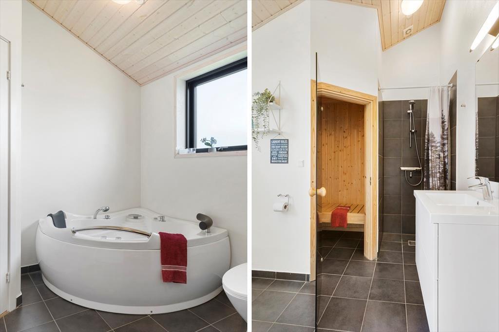 Sommerhuset er præget af en gennemført og stilsikker indretning, hvor alle kvadratmeter er godt inddraget og der er fundet gode og funktionelle løsninger for en optimal udnyttelse. Der er panoramavinduer på den ene langside af huset, herfra kan man nyde Saltums charmerende landskab. Med brændeovn, spa og sauna samt gasgrill udendørs, har man en stor grad af komfort, og til børnene er her barnestol og seng samt masser af dine udendørs tiltag. Køkkenet er åbent og ligger i forlængelse af spisepladsen, i forlængelse heraf kommer sofahjørnet med tvSommerhuset har to badeværelser og otte sovepladser, så uanset om man er en stor familie eller to par afsted sammen, er huset velegnet til en uforglemmelig ferie i det nordjyske. Som en naturlig selvfølge er der Internet installeret i huset.