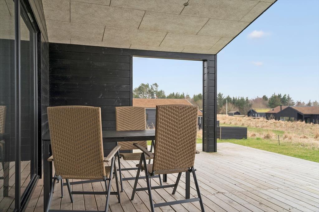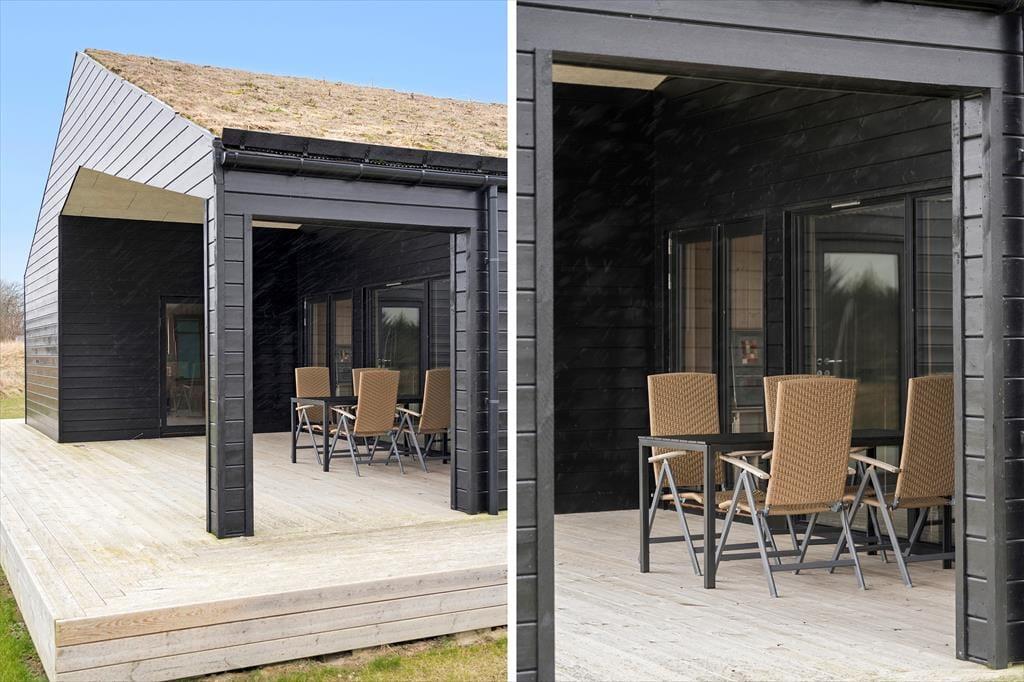 Fra opholdsrummet og et af soveværelserne har I direkte adgang til sommerhusets skønne terrassemiljø. Der er flere gode opholdspladser og solkroge at vælge imellem, inklusiv en stor overdækket terrasse mod vest, og med havemøbler af ordentlig kvalitet og flotte naturomgivelser kan I se frem til mange gode stunder herude.