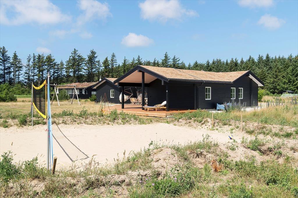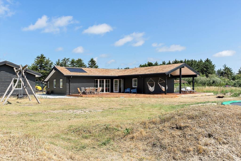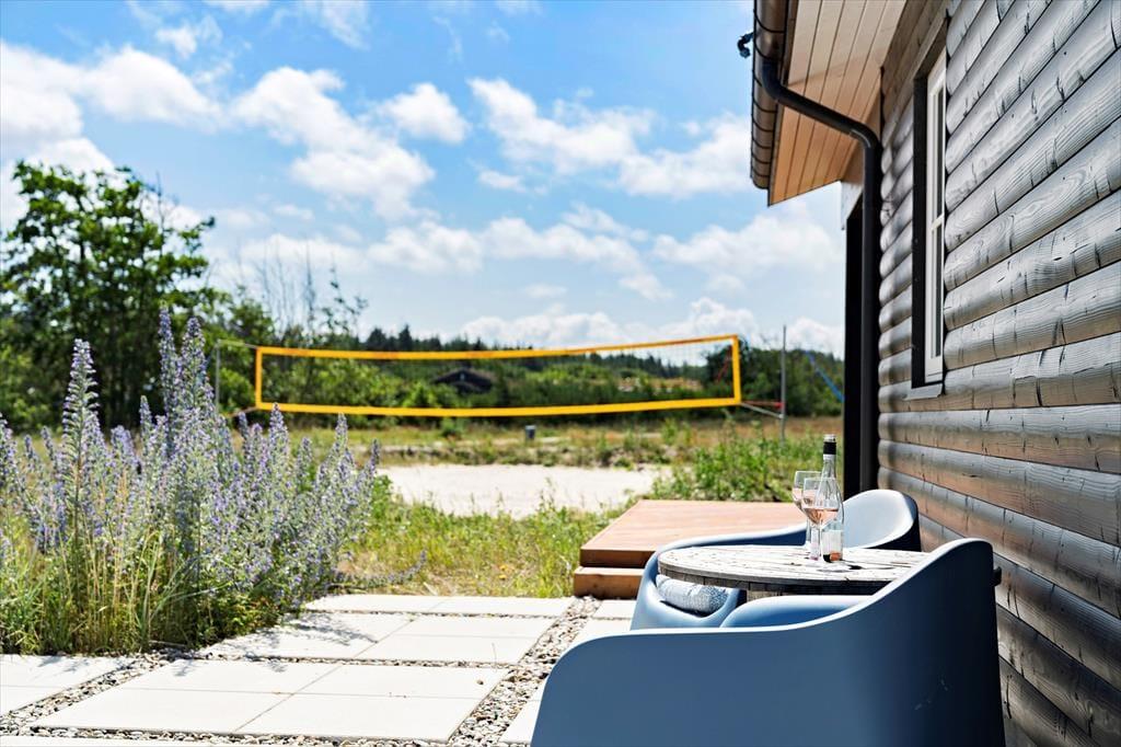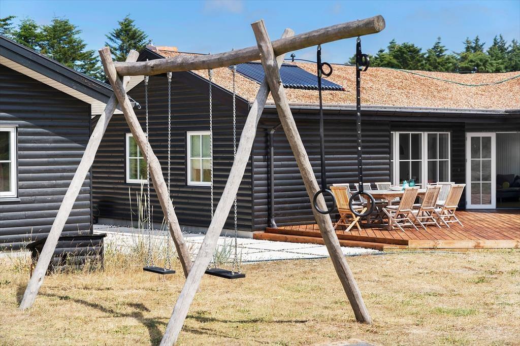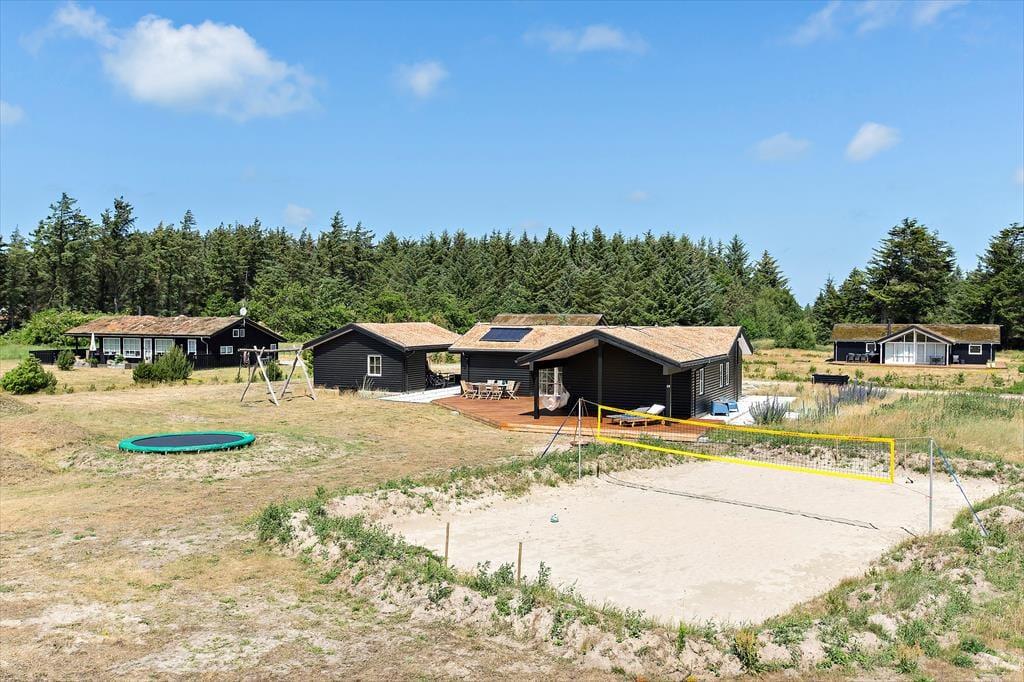 Sommerhusets store, sydvendte træterrasse er delvist overdækket, så uanset om I er til sol eller skygge, kan I finde en passende opholdsplads i løbet af dagen. I huset er der rig mulighed for at holde en aktiv ferie, der er anlagt en beachboldbane, med mulighed for at spille beachvolley med mere. Ved huset er der også en stor trampolin. Om aftenen er det herligt at tænde for grillen og dække op ved havebordet, inden I samles til et lækkert feriemåltid – og når alle er mætte, kan I overveje, om I er i humør til at spille havespil eller bold på den store naturgrund.
