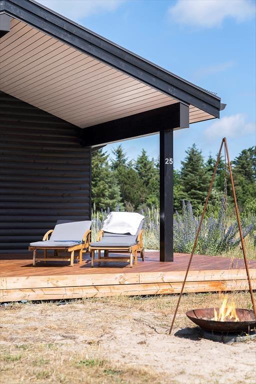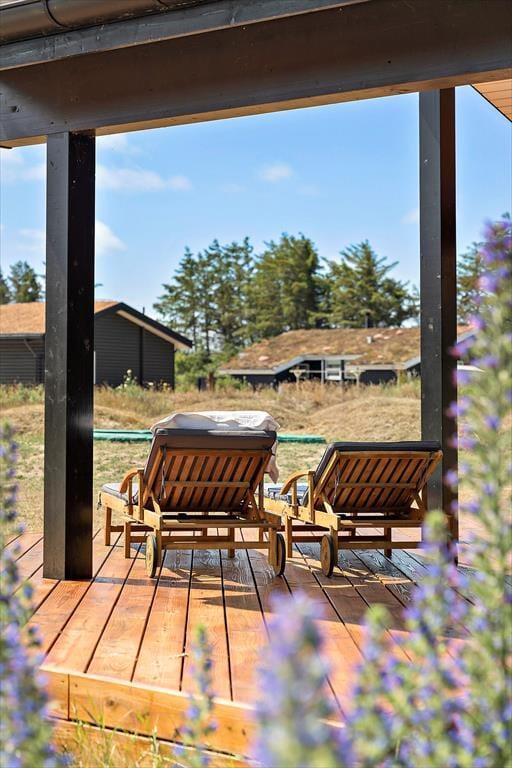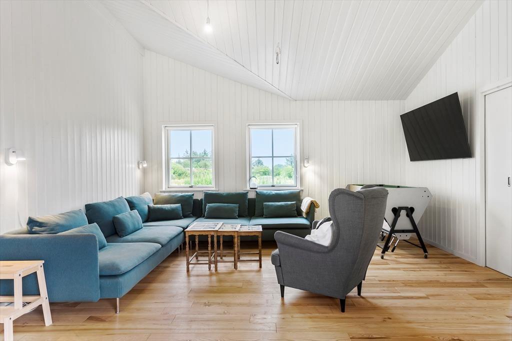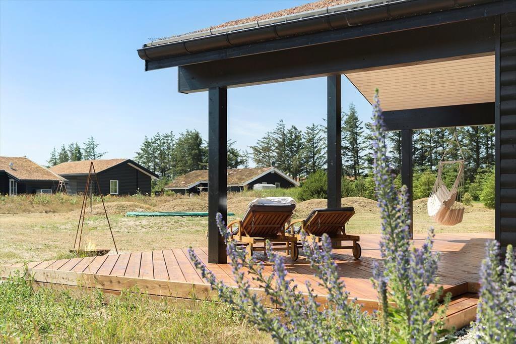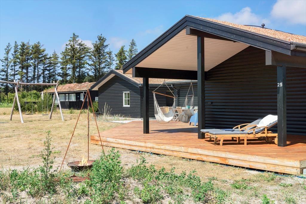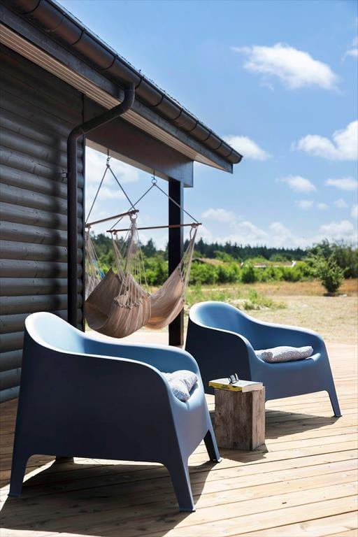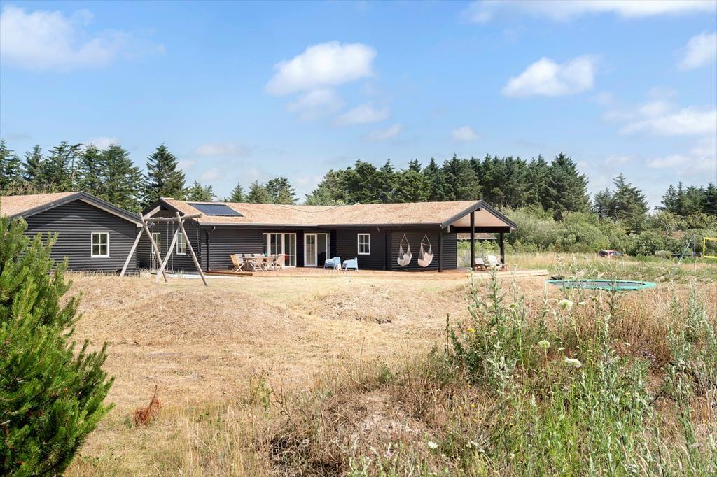 Sommerhusets store, sydvendte træterrasse er delvist overdækket, så uanset om I er til sol eller skygge, kan I finde en passende opholdsplads i løbet af dagen. I huset er der rig mulighed for at holde en aktiv ferie, der er anlagt en beachboldbane, med mulighed for at spille beachvolley med mere. Ved huset er der også en stor trampolin. Om aftenen er det herligt at tænde for grillen og dække op ved havebordet, inden I samles til et lækkert feriemåltid – og når alle er mætte, kan I overveje, om I er i humør til at spille havespil eller bold på den store naturgrund.