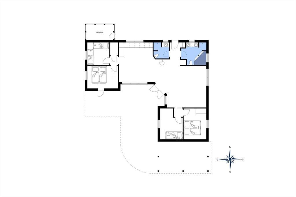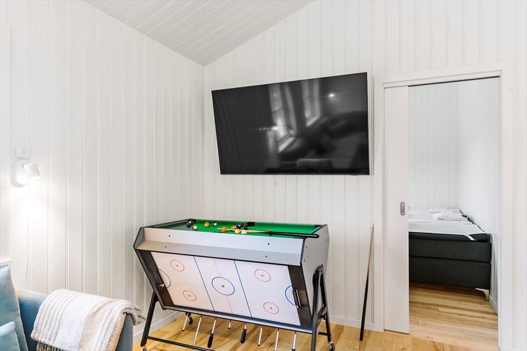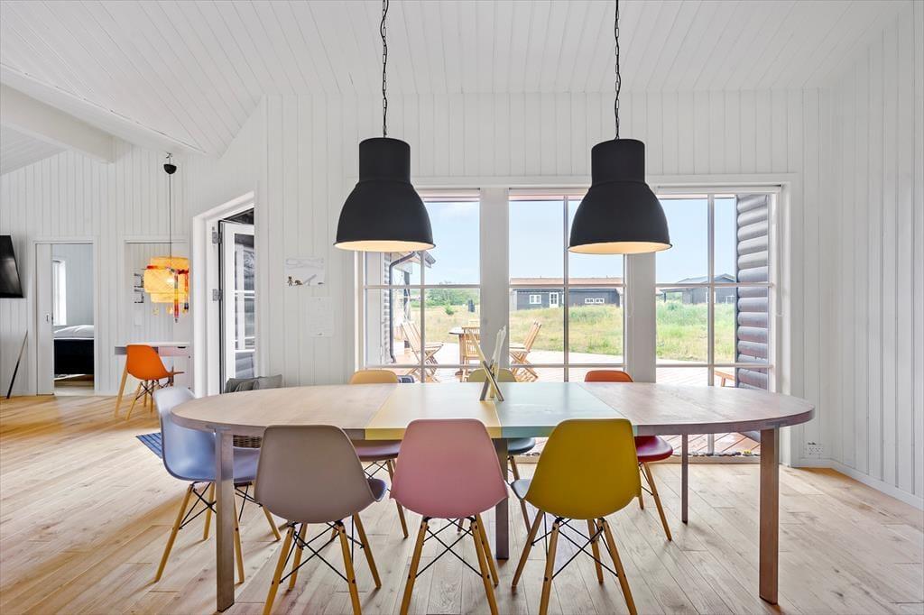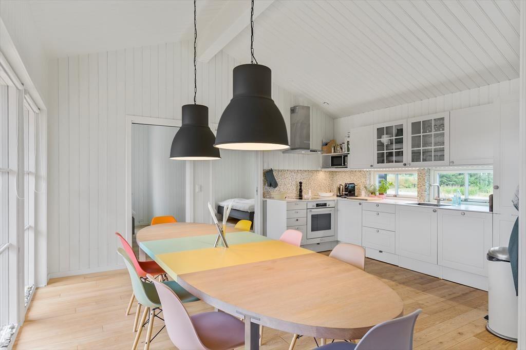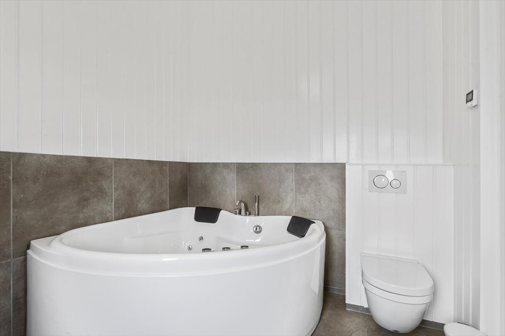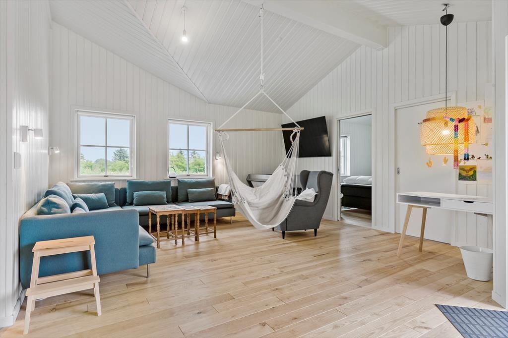 Her på Nordvestvej 25 kan I holde ferie på alle årstider, for ejendommen er isoleret til helårsbrug, og det moderne ventilationsanlæg med varmepumpe samt solvarmen sørger for et lavt energiforbrug. Inden døre er atmosfæren lys og indbydende, og alle rum prydes af flot og komfortabelt møblement. Selve sommerhuset er på hele 118 m2, som blandt andet byder på en stor og stilfuld stue med integreret spisekøkken. Vil I gerne holde ferie med en anden børnefamilie, kan det sagtens lade sig gøre, for husets fire soveværelser er ligeligt fordelt i to afdelinger. Det største af husets to badeværelser er udstyret med et hjørnespa. Der findes desuden vaskemaskine og tørretumbler i teknikrummet, som I er velkomne til at bruge.