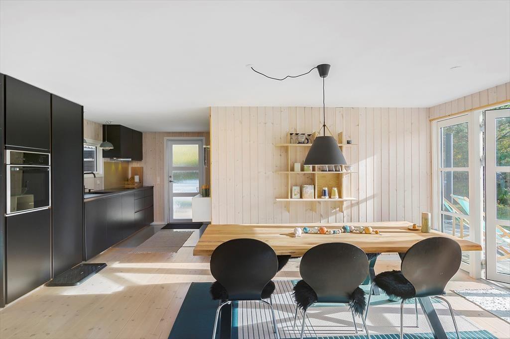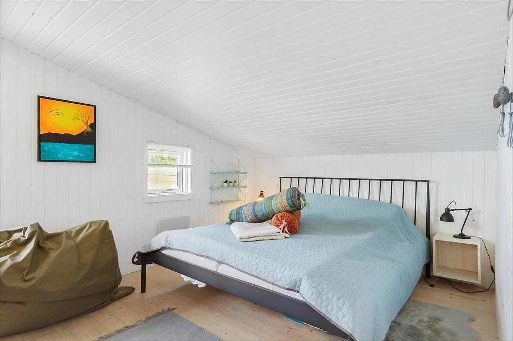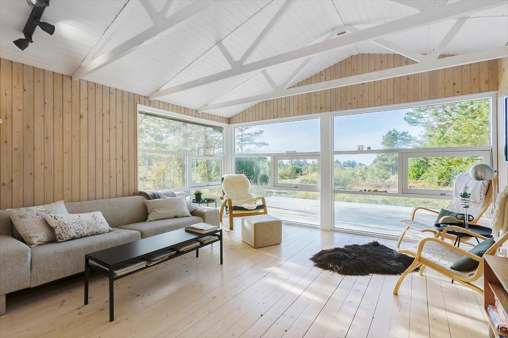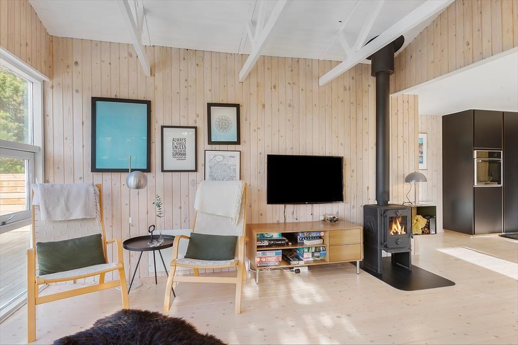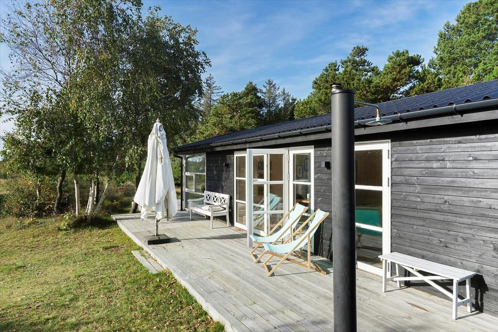 Der er meget godt at sige om naturgrunden, som sommerhuset ligger på. Den måler hele 5001 m2 og byder på tæt bevoksning, så huset er fint skærmet af – mod vest er der dog mere åbent, så I samtidig har udsigt over området. Der er også en god græsplæne at lege på, og hele vejen rundt om huset er der flere terrasser at vælge imellem, så hvis I trænger til en hel dag fuld af afslapning, skal I blot flytte liggestolen af og til for at følge solens gang på himmelen.