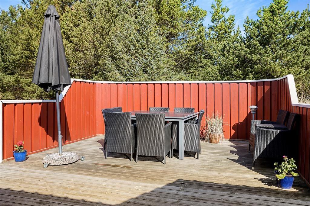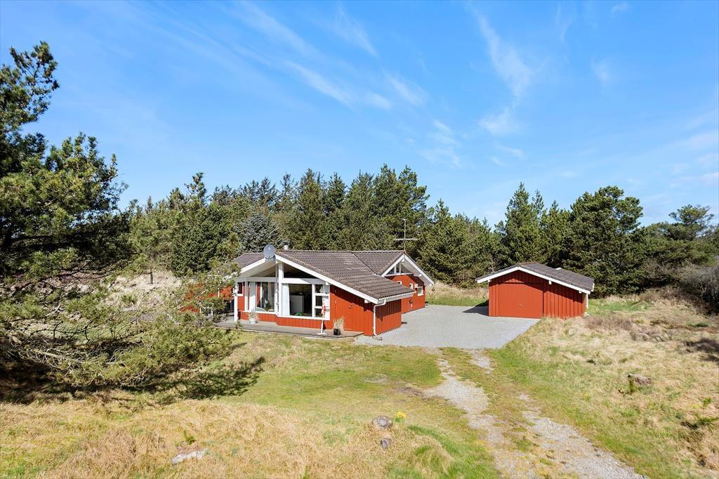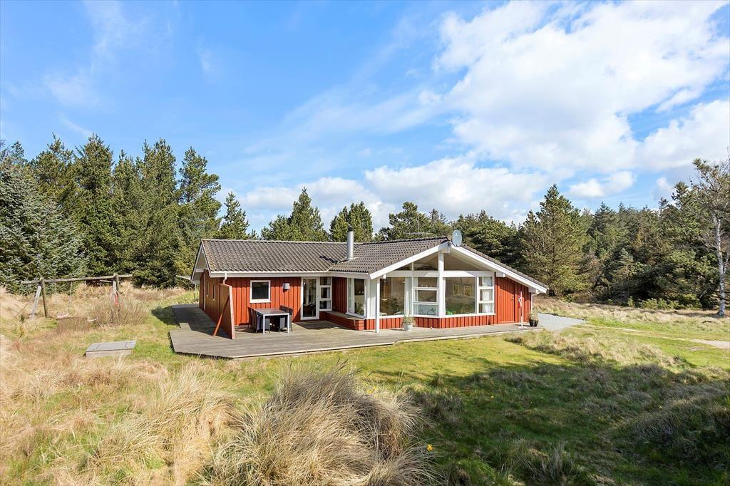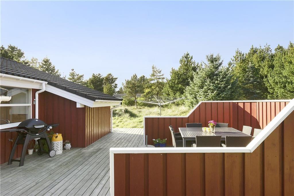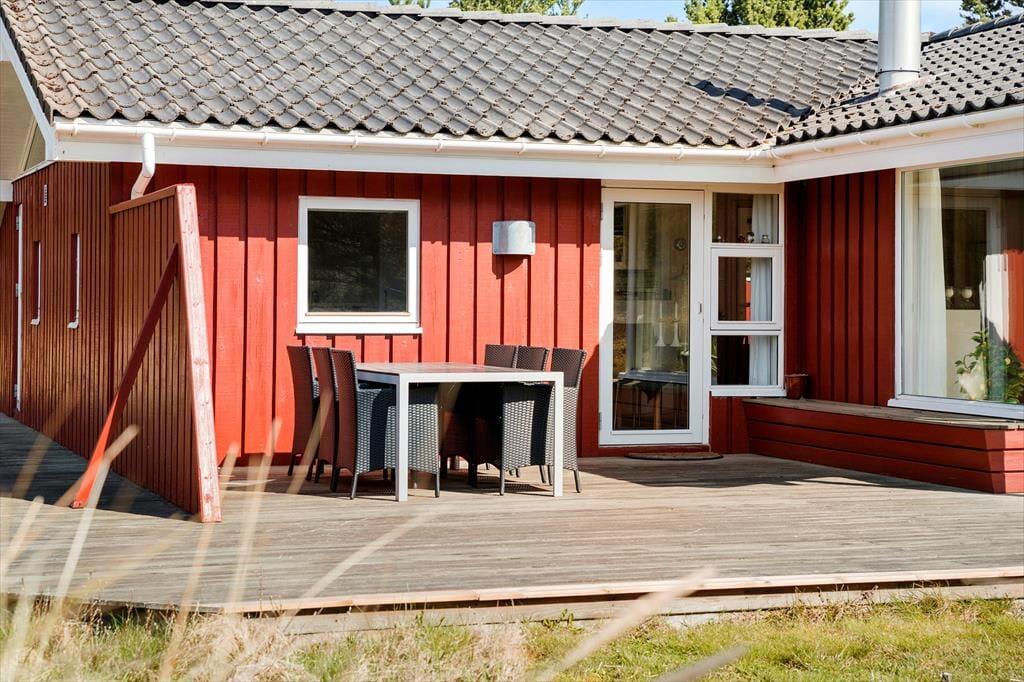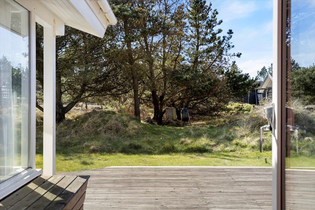 Huset er beliggende på en 2500 m2 stor naturgrund. Med en af de flotteste naturgrunde i området. Der løber en stor terrasse på tre sider af sommerhuset, så her er altid mulighed for at finde en plads i solen og en krog i læ for vinden. Her kan man nyde grillmad og et godt glas vin mens man nyder udsigten til naturgrunden og lytter til vinden i trætoppene. Grunden er omgivet af høje, træer og buske. Til børnene er her sandkasse og gynger. Huset ligger ugenert så er er ideelt til at solbade og slappe af i fred og ro. Havemøbler, liggestole og grill er naturligvis til rådighed.