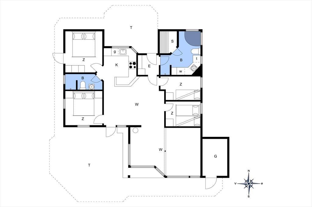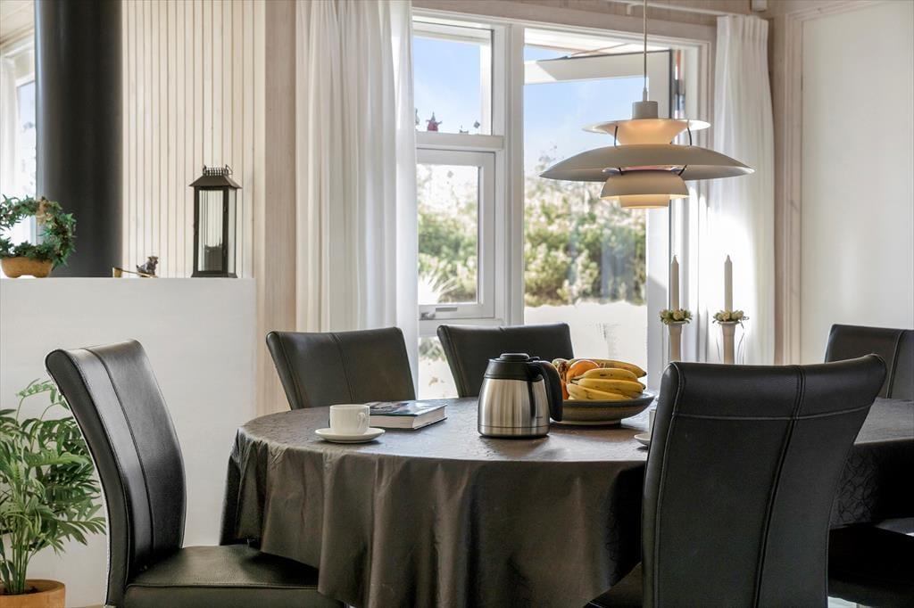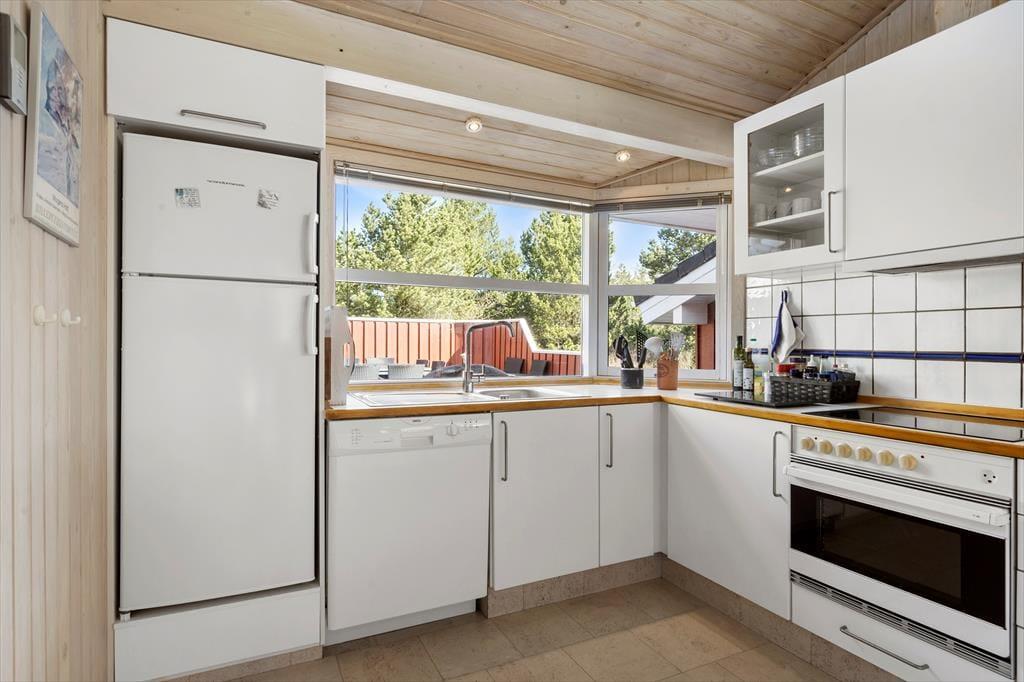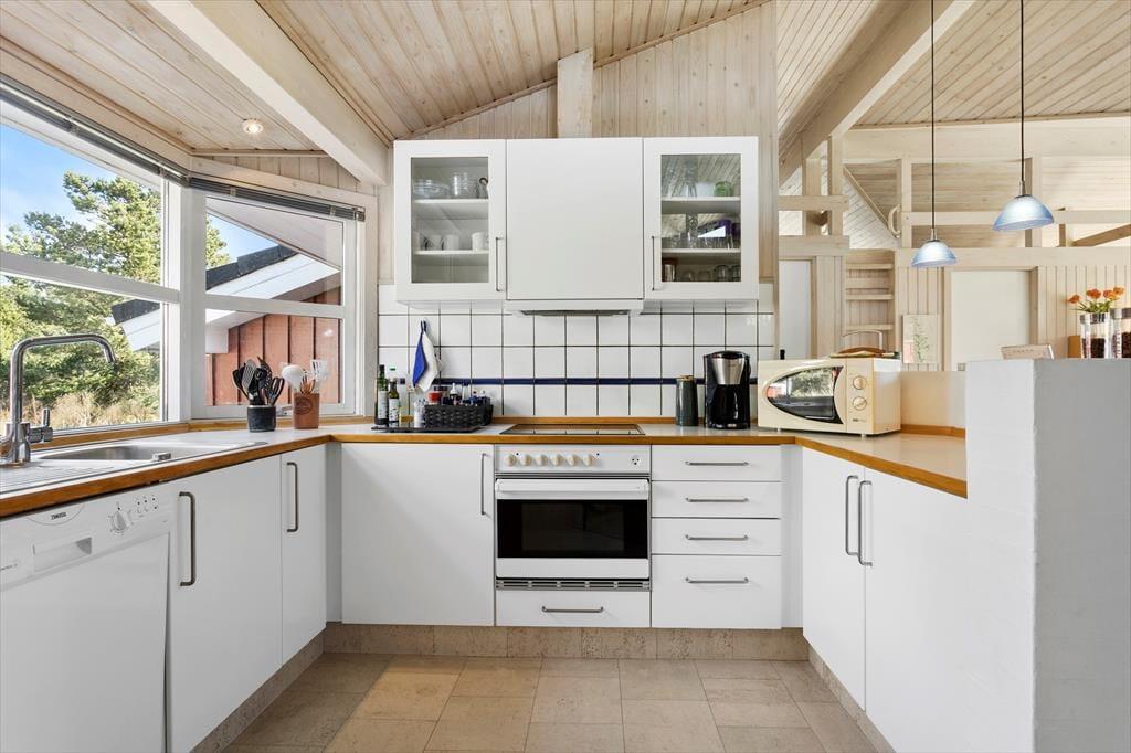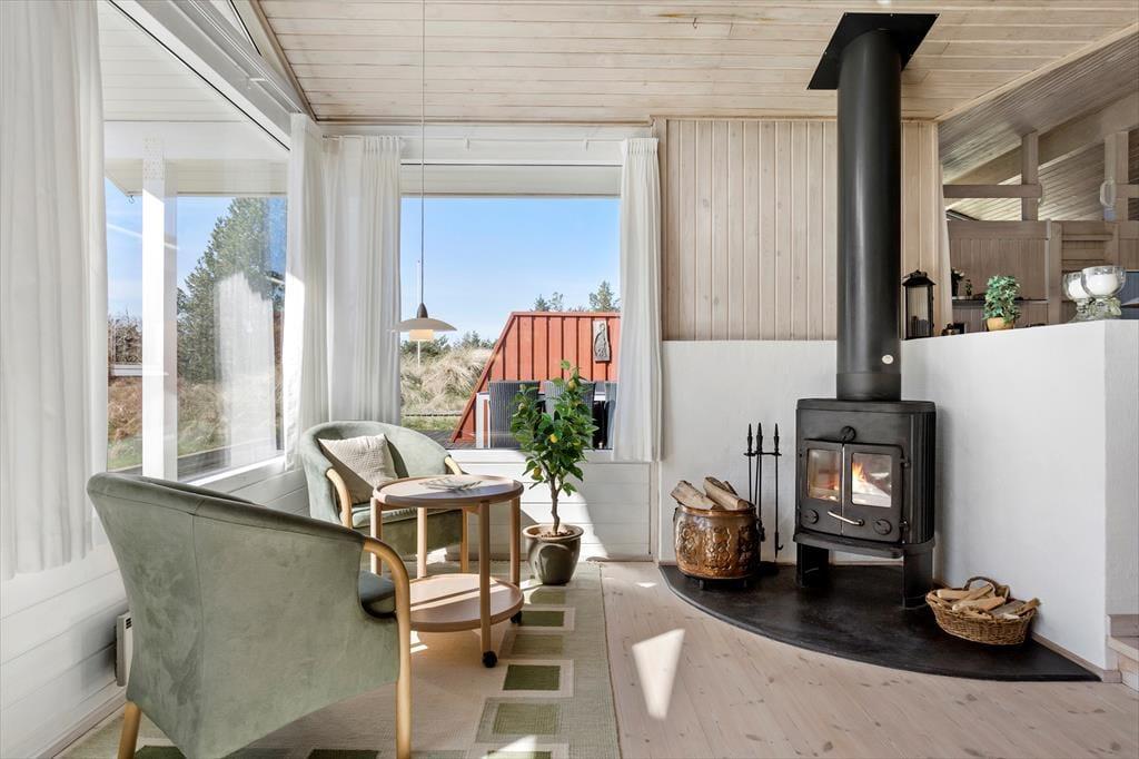Huset er fantastisk godt indrettet med stort køkken alrum med spiseplads. Via et trin er der adgang til den hyggelige stue. Her kan man holde en dejlig og afslappende ferie i smukke og yderst velfungerende omgivelser. Med ild i brændeovnen og udsigt til den omkringliggende grund. Køkkenet er indrettet med alt i hårde hvidevarer og der er naturligvis gratis internet i huset så tag endelig PC eller tablet med på ferien. Huset har hele 4 gode soverum. De to med dobbeltsenge, et med dobbeltseng med en køje over samt et soverum med køjer. Hele to badeværelser hvoraf især skal fremhæves det store badeværelse med både spa og sauna. Her er der mulighed for at varme sig efter en tur i Vesterhavets bølger eller efter en oplevelsesrig udflugtsdag i det nordjyske. Her er virkelig rammerne for den perfekte ferie for den store familie eller par der ønsker at holde en ferie sammen. Huset er en praktfuld kombination af funktionalitet, hyggelig stemning og god stil. Familiens 4 benene medlemmer er naturligvis også velkomne.