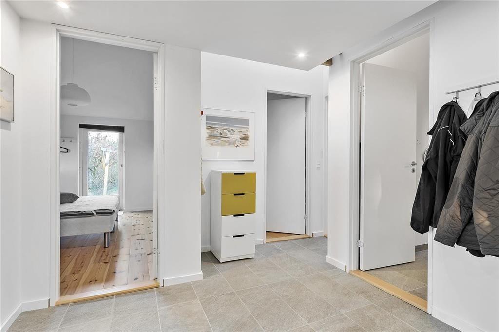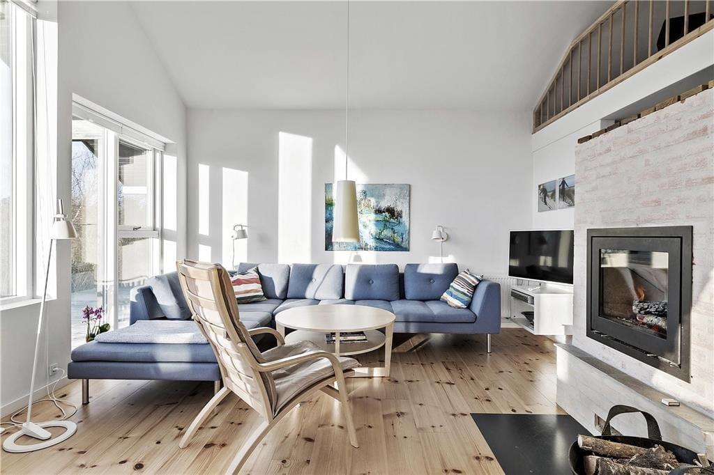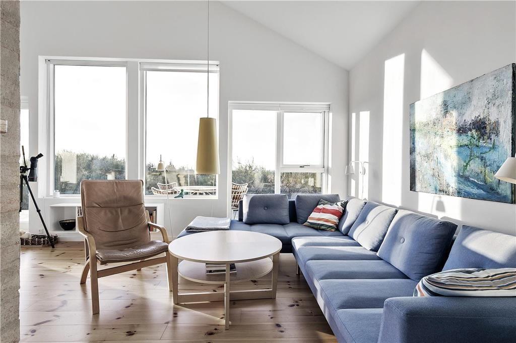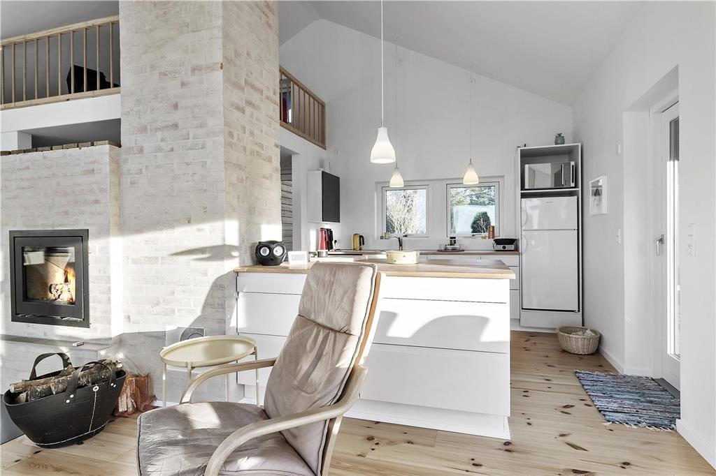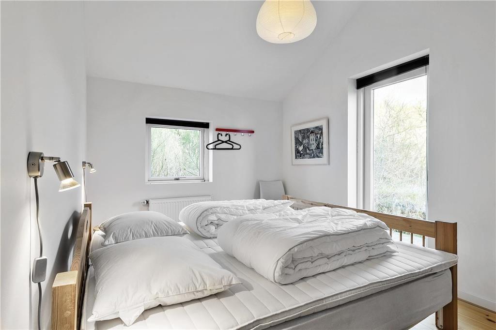 Huset er et moderne ét af slagsen fra 2014, men med grønt tag og sort træfacade afsløres det allerede udefra, at stilen er ganske klassisk. Inden døre er der ligeledes fundet en fornem balance mellem stilrent design og hyggelige detaljer, der alt i alt skaber en original sommerhusstemning. For eksempel giver køkkenafdelingen jer en lækker arbejdsstation, når der skal kokkereres, mens stuens pejseindsats bidrager med varme og atmosfære, hvis I tænder op om aftenen. Og uanset tidspunktet på dagen har I en forrygende udsigt over smuk natur – endda med Vesterhavet i horisonten takket være husets høje beliggenhed. Foruden husets opholdsstue med integreret køkkenafdeling byder huset på et badeværelse og tre gode værelser med i alt seks sengepladser