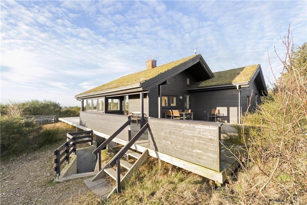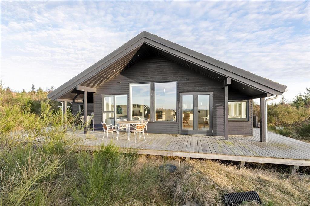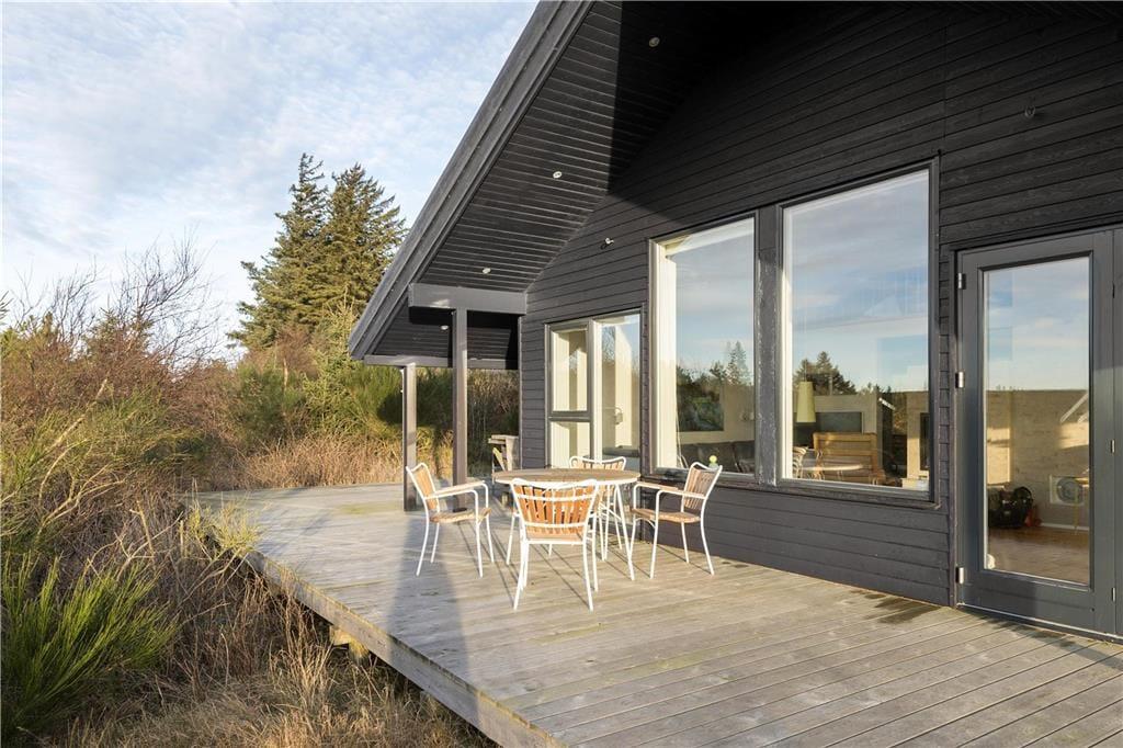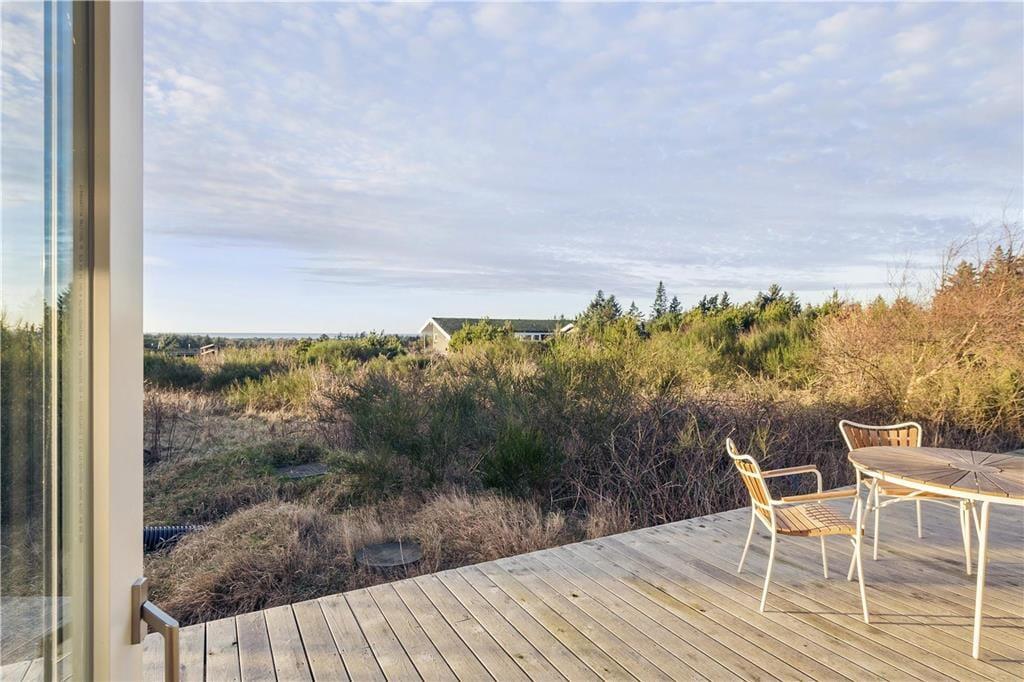 Panoramaudsigten over det vilde, nordjyske landskab får I bestemt også glæde af ude i det fri. Rundt om huset smyger sig en stor træterrasse, og uanset hvor I kigger hen, kan I mærke det velgørende ved at være ude i naturen. Terrassen byder på mange gode kroge, hvoraf nogle er overdækkede, så I kan altid udvælge jer en god opholdsplads uanset vejr og vindretning.