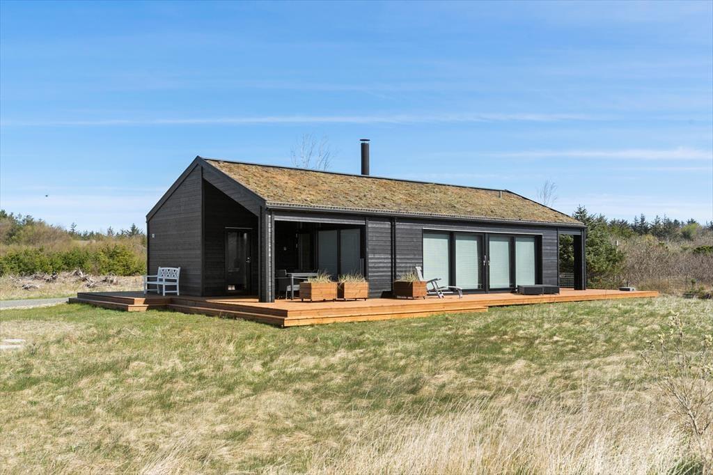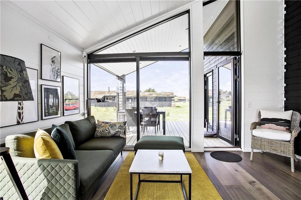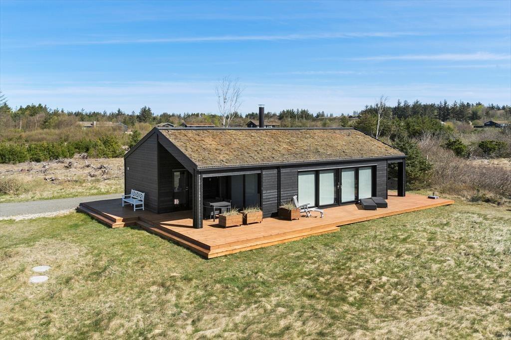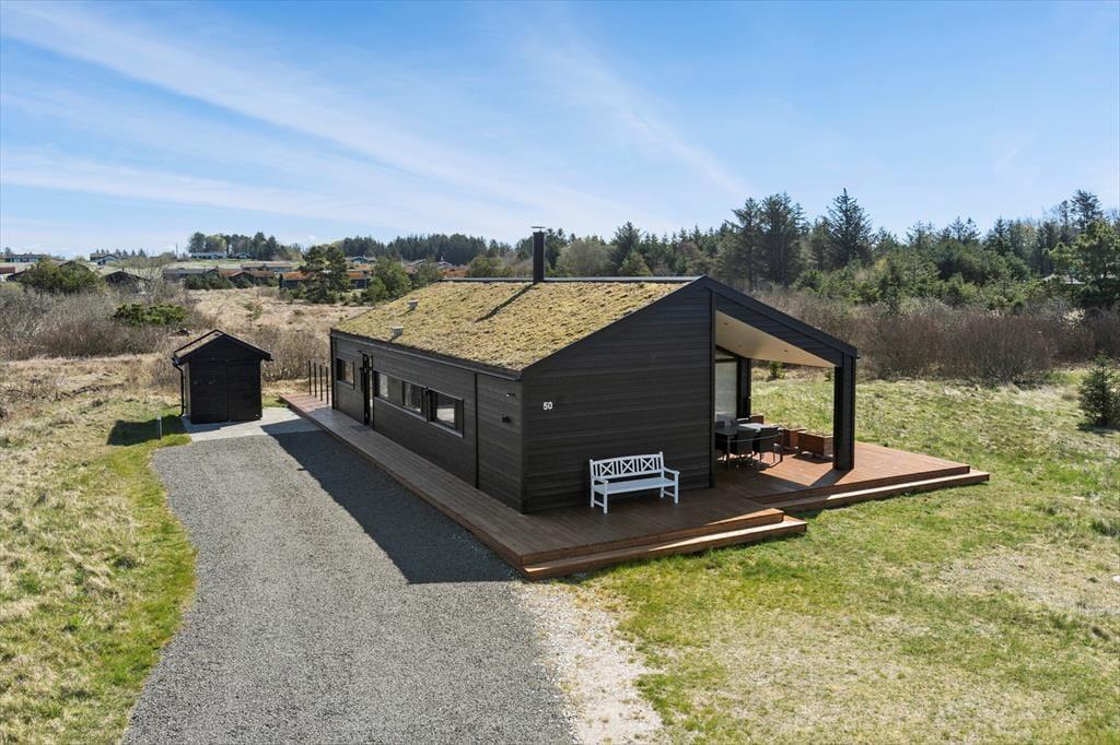 Set udefra passer sommerhuset perfekt ind i den nordjyske natur med sin rå træbeklædning og sit grønne tag. Store vinduespartier bryder facaden og sørger for, at I kan nyde både udsigt og sollys, når I hygger jer indenfor nær brændeovnen. Ligesom den moderne arkitektur er indretningen tilpasset omgivelserne med sit nye, nordiske design og flotte farvevalg. Huset er ikke kun en fryd for øjet, for der er også skruet op for boligkomforten: For eksempel er der gulvvarme på badeværelset, og køkkenafdelingen i opholdsrummet giver jer en superlækker arbejdsstation, når der skal kokkereres. De tre soveværelser er alle udstyret med behagelige dobbeltsenge, og så er der endda plads til to ekstra gæster på hemsen. Huset er desuden udstyret med både Netflix og Sonos, så et godt filmudvalg og god lydkvalitet er garanteret på ferien.