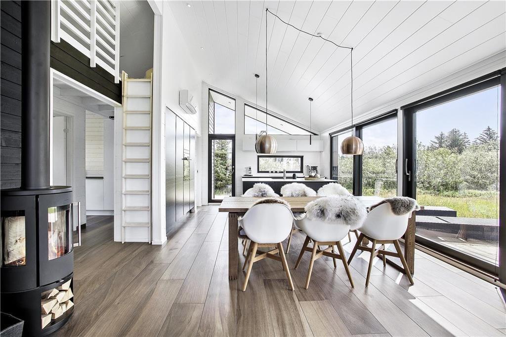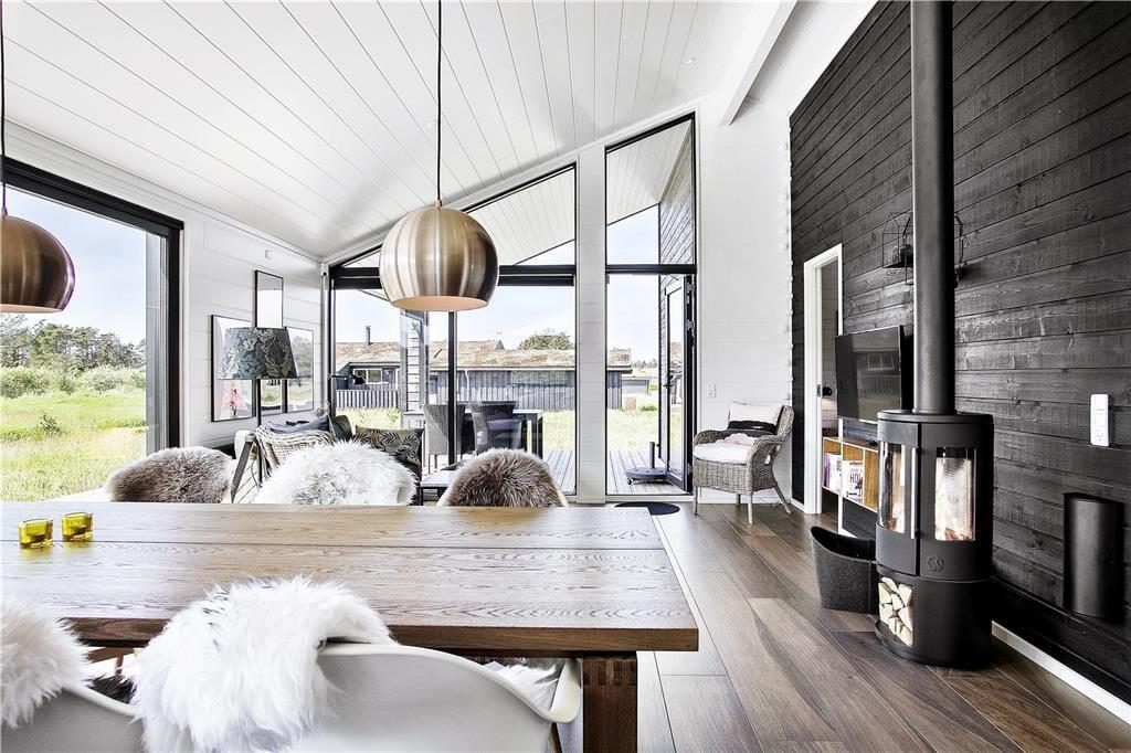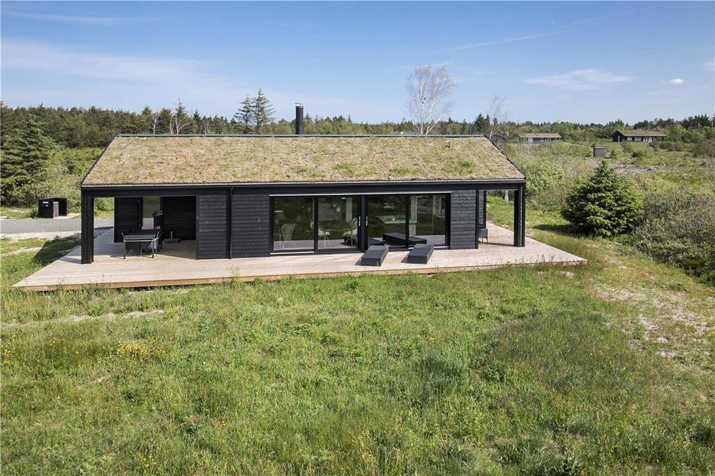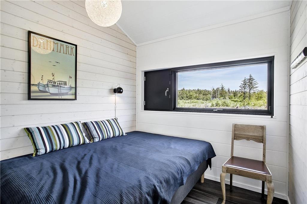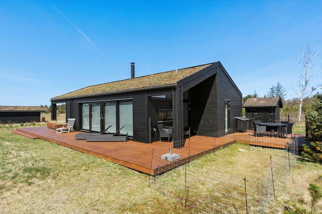 Set udefra passer sommerhuset perfekt ind i den nordjyske natur med sin rå træbeklædning og sit grønne tag. Store vinduespartier bryder facaden og sørger for, at I kan nyde både udsigt og sollys, når I hygger jer indenfor nær brændeovnen. Ligesom den moderne arkitektur er indretningen tilpasset omgivelserne med sit nye, nordiske design og flotte farvevalg. Huset er ikke kun en fryd for øjet, for der er også skruet op for boligkomforten: For eksempel er der gulvvarme på badeværelset, og køkkenafdelingen i opholdsrummet giver jer en superlækker arbejdsstation, når der skal kokkereres. De tre soveværelser er alle udstyret med behagelige dobbeltsenge, og så er der endda plads til to ekstra gæster på hemsen. Huset er desuden udstyret med både Netflix og Sonos, så et godt filmudvalg og god lydkvalitet er garanteret på ferien.