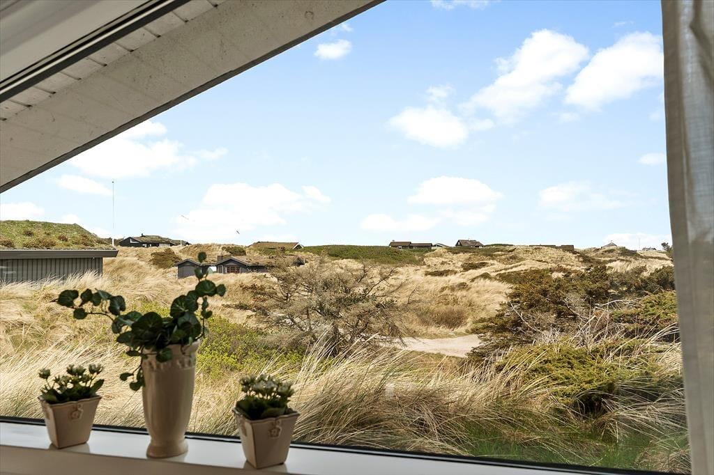 Den store klitgrund med græs, sand og marehalm ligger lidt oppe, og man har derfor en dejlig udsigt over landskabet og Vesterhavet fra de høje klitter. Der er terrasser på begge sider af sommerhuset, så det er muligt at flytte rundt i løbet af dagen for at finde læ og udnytte alle soltimer.