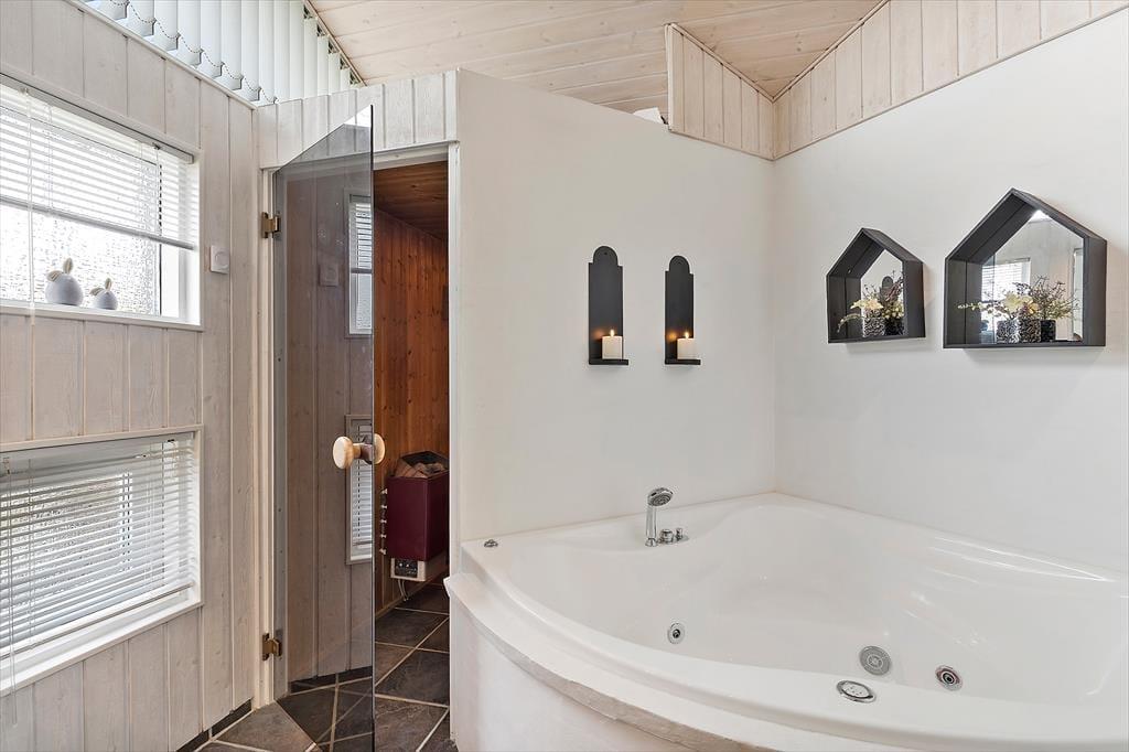 Her er masser af lys, flotte gulve, gode møbler og mange fine detaljer. Desuden både spabad, sauna, vaskemaskine, tørretumbler, parabol med en stor VIASAT-pakke og gratis og trådløst internet, så man hurtigt kan søge informationer om områdets mange muligheder. Her er også installeret varmepumpe, hvilket betyder meget lave forbrugsomkostninger, og tænder man op i brændeovnen, kan man spare endnu mere på udgifterne. Sommerhuset har tre værelser og i alt seks sengepladser, så en stor familie vil sagtens kunne finde sig til rette her. Køkken og spiseafdeling hænger sammen, mens stuen ligger et niveau oppe og har en skøn udsigt til klitterne. Et sommerhus, som vi er stolte af at leje ud!