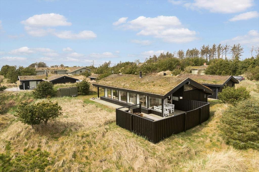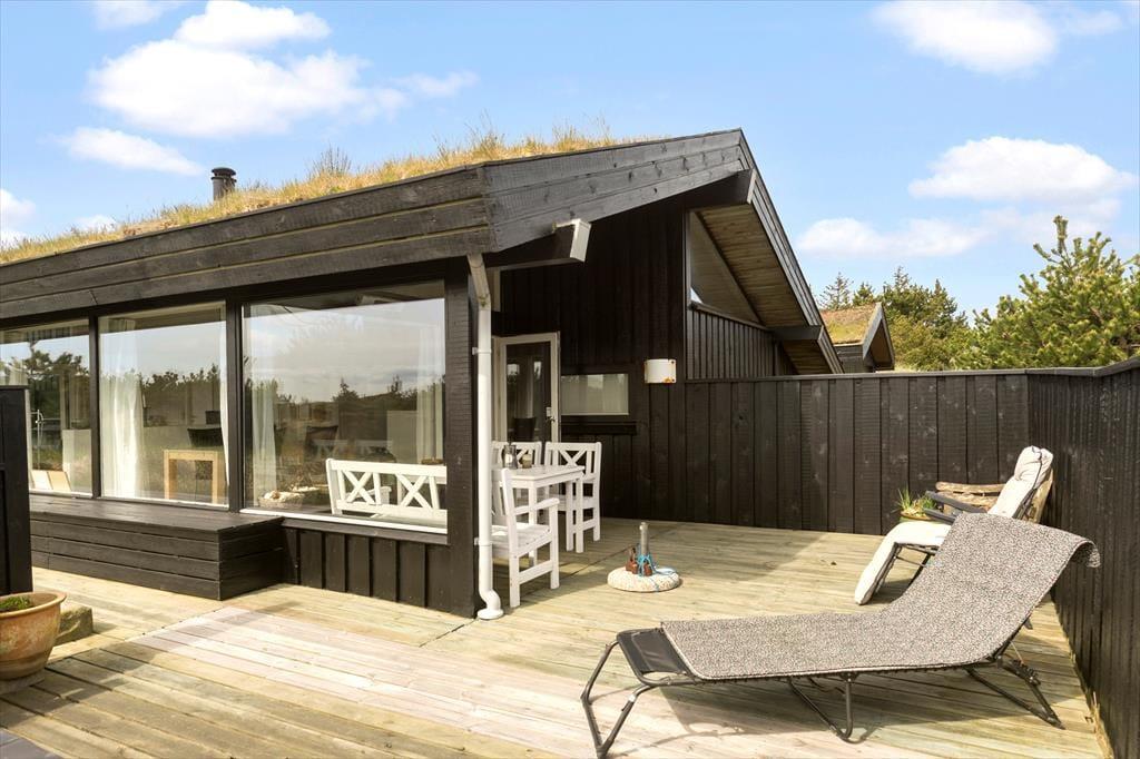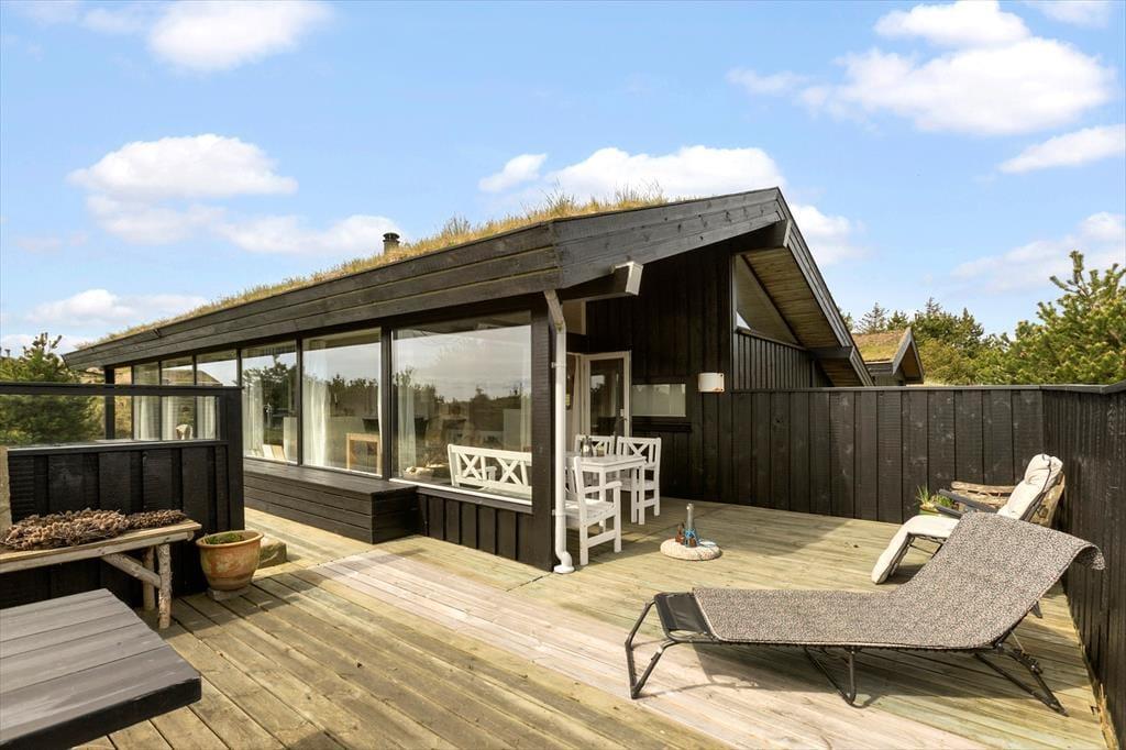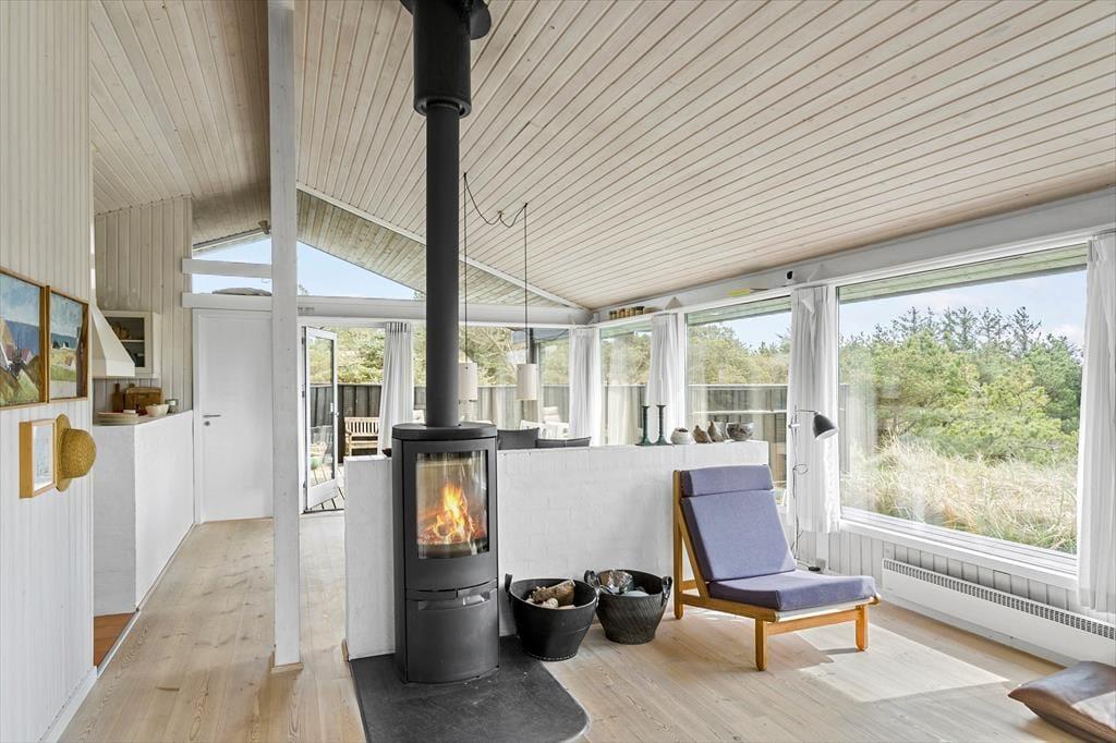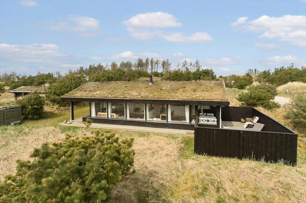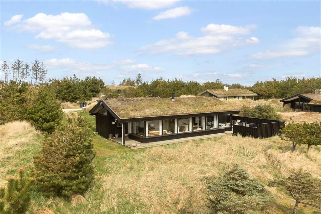 Med sin sorte træfacade og sit levende tag falder sommerhuset nærmest i ét med Kordals bløde klitter og nåletræer. Den vildtvoksende kystbeplantning er også lige præcis det, I får ind på nethinden, når I holder ferie her, for stuens store, sydvendte vinduesparti åbenbarer udsigten for jer, når I sidder omkring spisebordet eller i sofaafdelingen nær brændeovnen. Planløsningen er åben, så stuen er forenet med et veludstyret køkken, og der er også kig op til hemsen, der er placeret over et af husets tre soveværelser. Et fjerde soveværelse er placeret i annekset, der derudover byder på et badeværelse, så hele familien kan nemt og bekvemt tilbringe nogle gode dage sammen i huset.