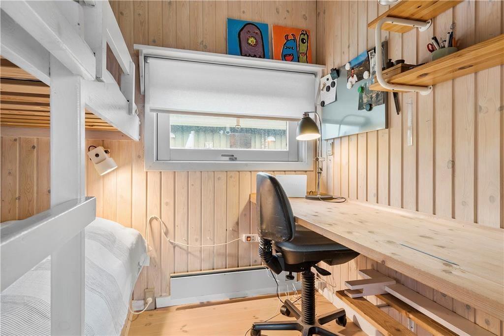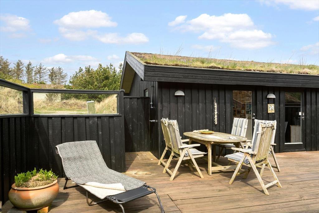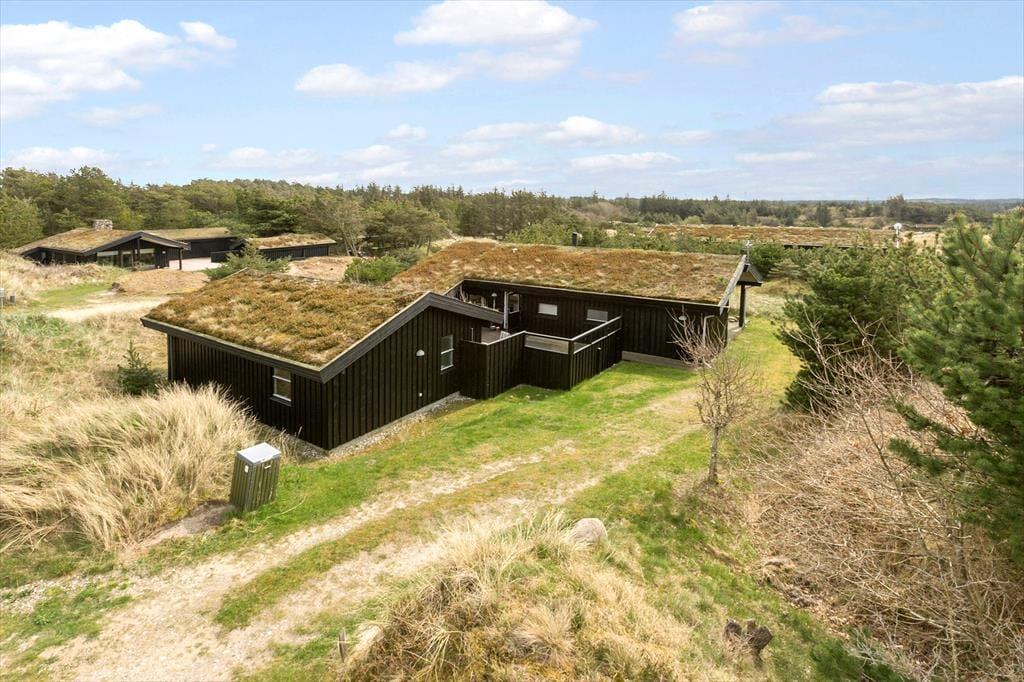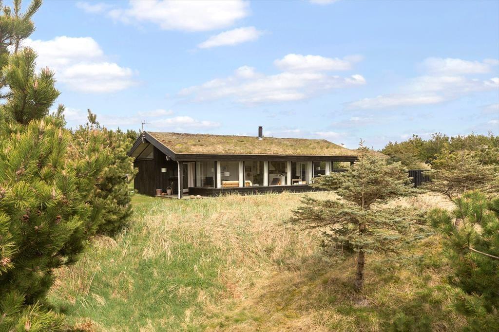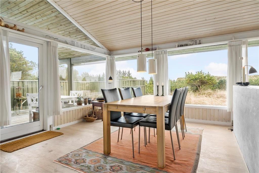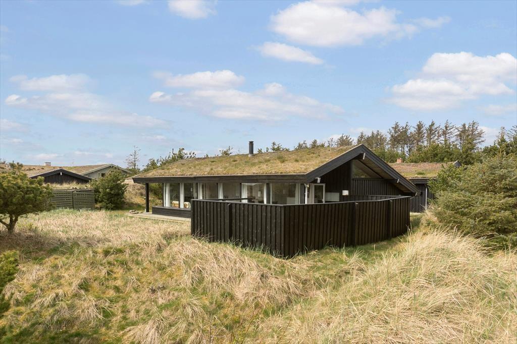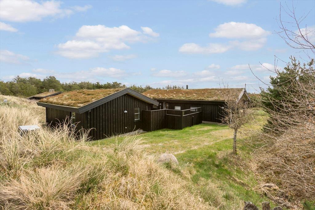 Med sin sorte træfacade og sit levende tag falder sommerhuset nærmest i ét med Kordals bløde klitter og nåletræer. Den vildtvoksende kystbeplantning er også lige præcis det, I får ind på nethinden, når I holder ferie her, for stuens store, sydvendte vinduesparti åbenbarer udsigten for jer, når I sidder omkring spisebordet eller i sofaafdelingen nær brændeovnen. Planløsningen er åben, så stuen er forenet med et veludstyret køkken, og der er også kig op til hemsen, der er placeret over et af husets tre soveværelser. Et fjerde soveværelse er placeret i annekset, der derudover byder på et badeværelse, så hele familien kan nemt og bekvemt tilbringe nogle gode dage sammen i huset.