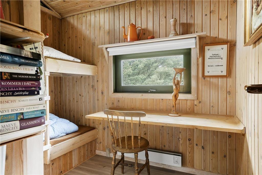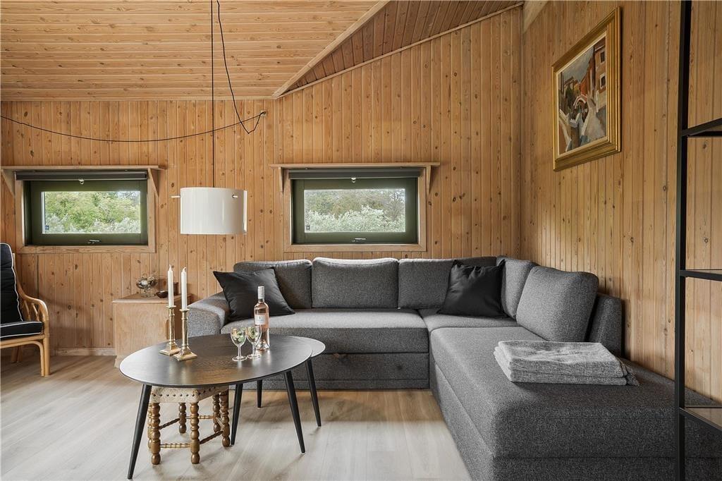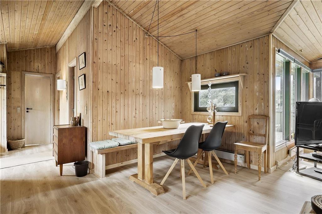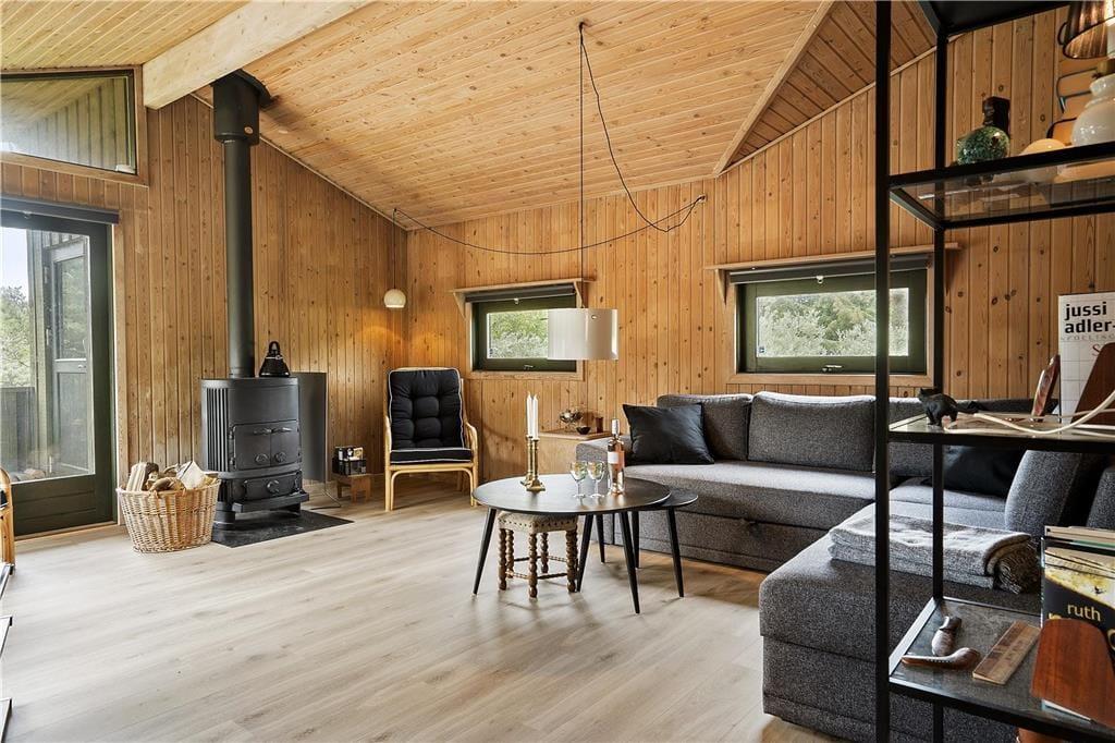 Herude i de grønne omgivelser kommer dagen til at starte med fuglesang, så snart du trækker gardinerne fra og lukker soveværelsesvinduet op. Måske vil du ligefrem se rådyr eller andre vilde dyr, der tripper forbi udenfor, når du sidder med morgenkaffen i opholdsrummet, mens resten af huset langsomt vågner og bliver klar til endnu en skøn feriedag. Selve huset, som er shinet op i 2019, passer perfekt ind i de naturskønne omgivelser med sin hyggelige atmosfære. Tre soveværelser er placeret i to afdelinger, og derudover rummer huset et badeværelse og en stor stue med integreret køkkenafdeling. Er det køligt udenfor, kan I tænde op i brændeovnen – og når sommersolen skinner, kan I åbne terrassedørene og invitere fuglefløjt og sommerlige dufte indenfor.