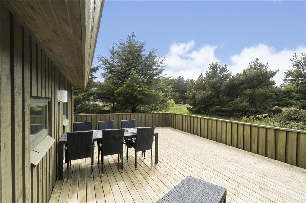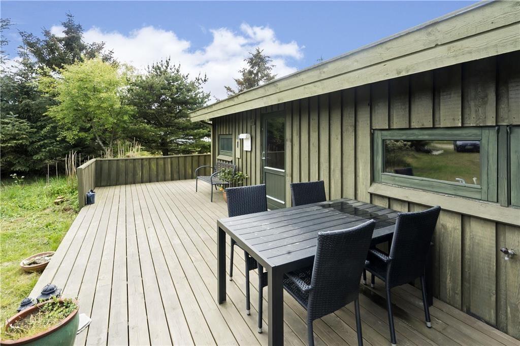 Fra stuen har I direkte adgang til en dejlig og helt ny træterrasse, som smyger sig rundt om tre af husets sider. I kan derfor slå jer ned lige dér, hvor solforholdene er bedst, og der er både havemøbler og liggestole, som forsøder driverlivet. Og bedst af alt sker afslapningen i de smukkeste omgivelser: Kværnbækken slynger sig lige i kanten af den 5.290 m2 store naturgrund, hvilket er med til at gøre omgivelserne endnu mere idylliske og skaber et rigt dyreliv i området.