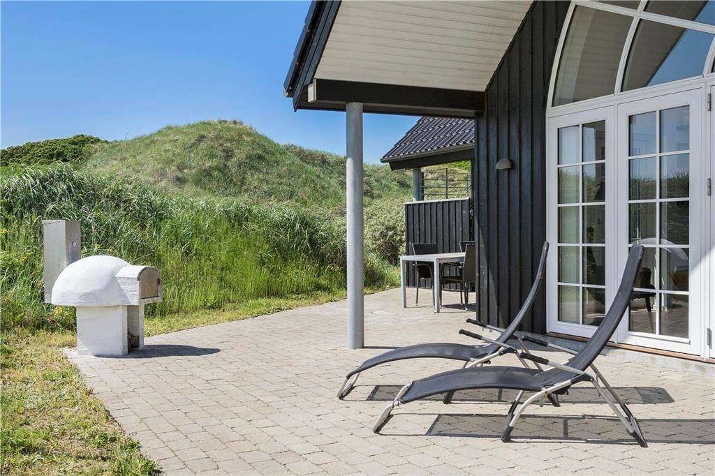 Livsnydertilværelsen kan også tilbringes ude i det fri, for her er der lagt vægt på at skabe en perfekt ferieramme på den 4.029 m2 store og uforstyrrede klitgrund. Hele vejen rundt om huset er der flisebelægning, som flere steder udvider sig til store og skønne terrassearealer. Det betyder, at I har flere opholdspladser at vælge imellem alt efter solens placering på himmelen – og nogle af dem er endda overdækkede, så I kan blive siddende ude og nyde de lyse sommeraftener.