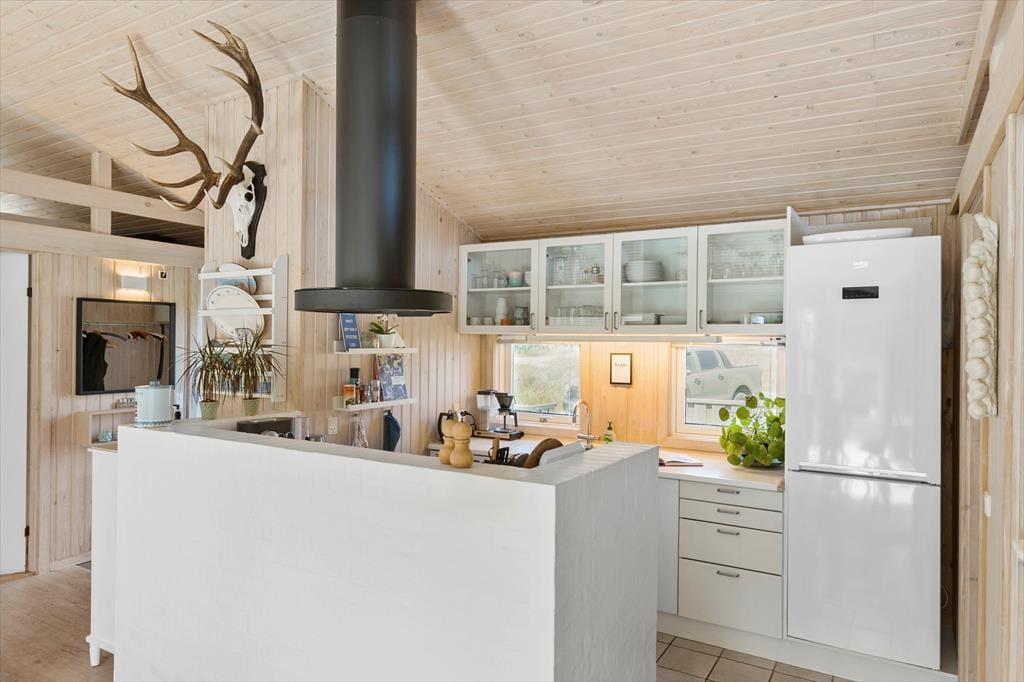 Naturen venter ikke bare udenfor døren, men bliver ligefrem inviteret ind i stuen takket være de store vinduespartier, der giver udsigt til de grønne omgivelser. Dyrelivet er rigt i området, så der er nærmest garanti for at se rådyr, der tripper forbi mellem fyrretræerne, mens I sidder med en god kop kaffe i sofaen nær brændeovnen. Stuen ligger en smule sænket, men stadig i åben forbindelse med et dejligt køkken-alrum, så alt i alt er der masser af plads til at hygge sig sammen her i den lyse og velindrettede opholdsafdeling. Derudover kan I se frem til en god nats søvn på sommerhusets tre soveværelser, og badeværelset vil også vække begejstring, for det er nemlig renoveret i 2022!