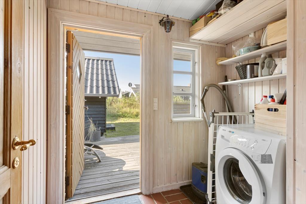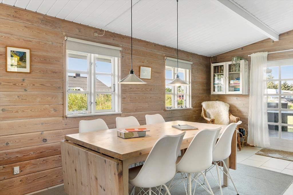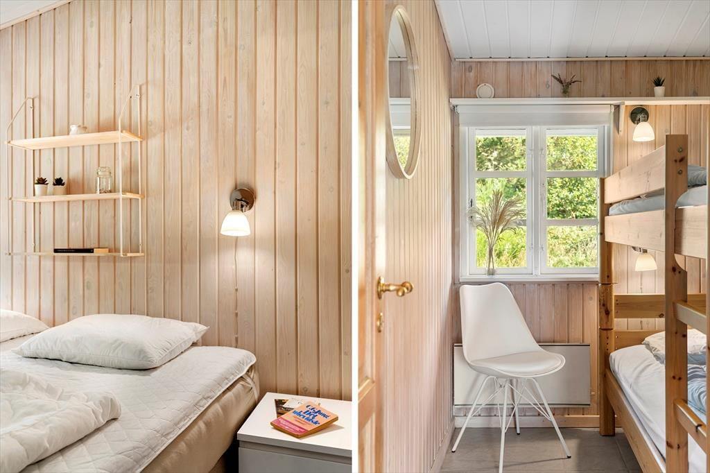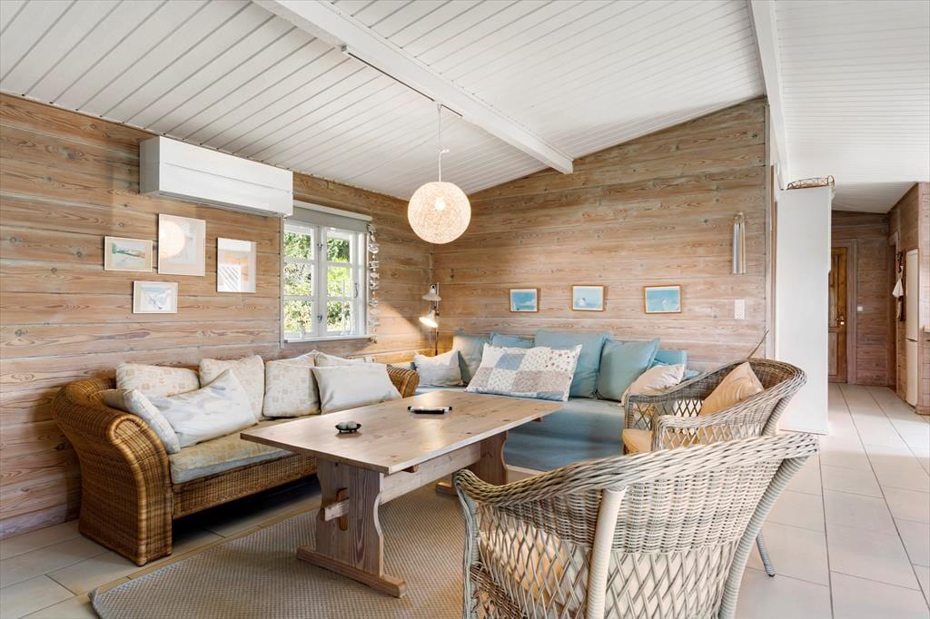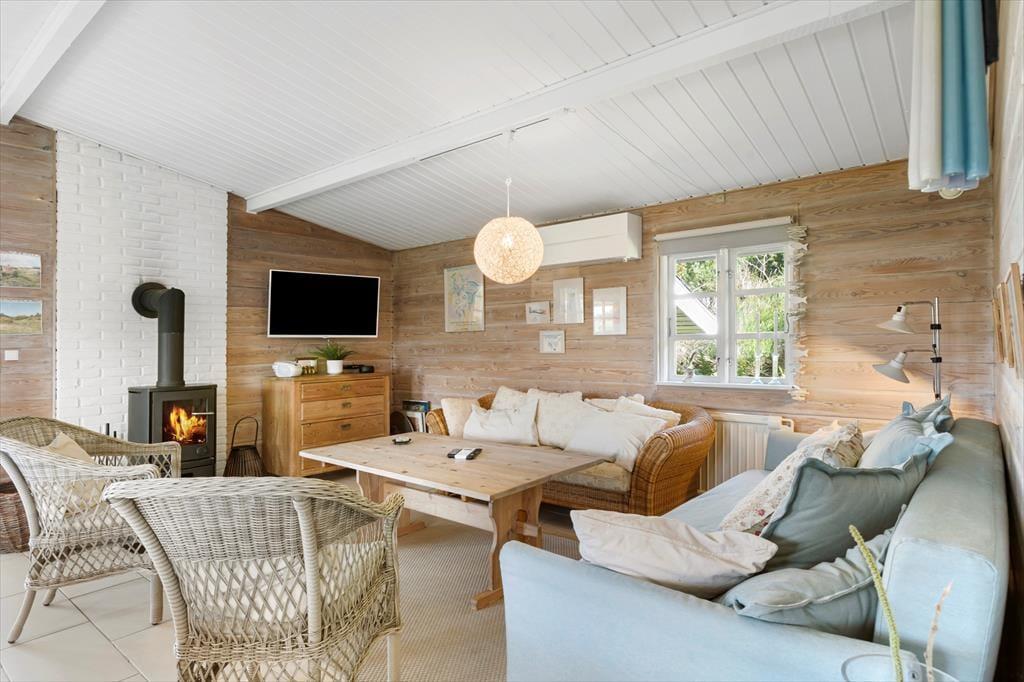 Selvom en stor del af ferien oplagt kan foregå ude i det fri, er det nu rart at bo i et hyggeligt hus som dette. I stuen er der rustikke trælister på væggene, bløde siddemøbler og et dejligt åbent køkken, og brændeovnen gør også sit for at sprede en varm og dejlig stemning herinde. På de tre soveværelser kan I se frem til en god nats søvn – i dobbeltsengene på to af værelserne og i køjesengen på det tredje – og inden I gør jer klar til dagens udflugter, kan I tage et morgenbrusebad på badeværelset eller benytte udebruseren. Bryggerset er udstyret med en vaskemaskine.