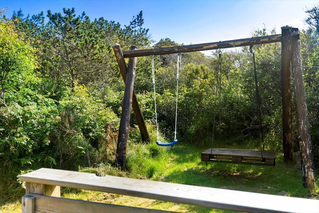 Porsevej fører lige ned til Saltum Strand, så det er svært at fare vild på den korte tur ned til Vesterhavet. Til fods kan I tilbagelægge de 500 meter på dejligt kort tid, så I kan sagtens smutte ned til havet hver dag for at bade, lege i sandet og gå tur langs med kysten. Alternativt kan I bevæge jer i retningen af Lille Norge, som er et flot og fredet naturområde, der breder sig lidt nord for sommerhuset. Det kuperede landskab byder på flotte udsigtspunkter, hvor I kan skue ud over havet og kysten.