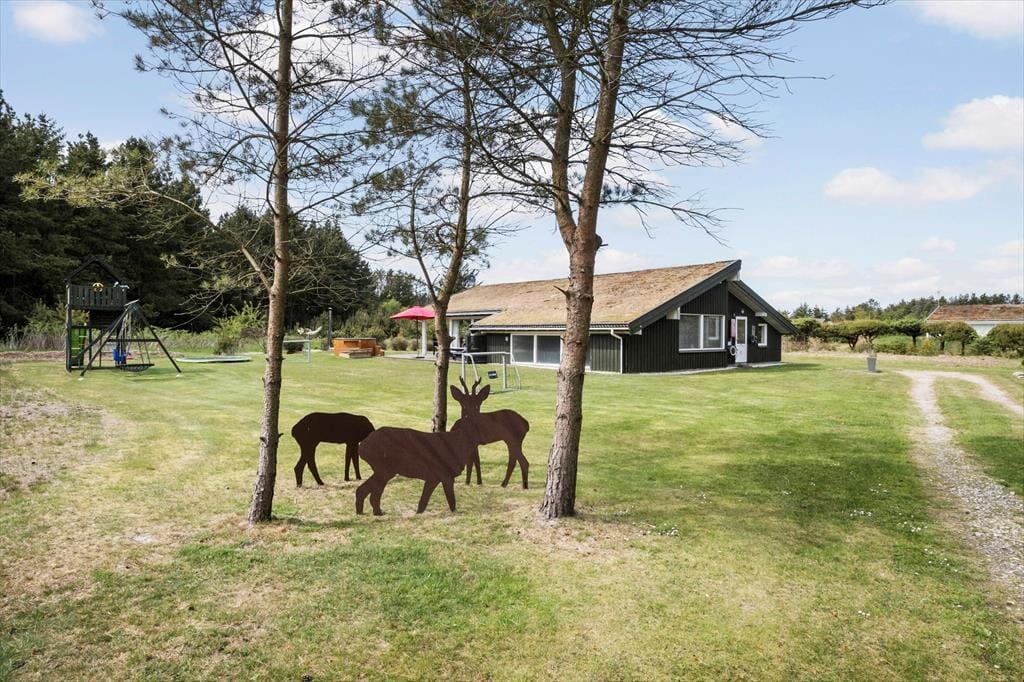 Sommerhus i Saltum, Nordjylland, med plads til 10 voksne. Der er en hyggelig indretning med bl.a. brændeovn, og du finder desuden vaskemaskine, opvaskemaskine og tørretumbler i boligen.