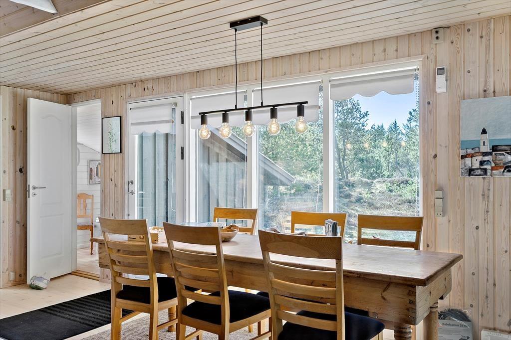 Krogsletten ender blindt, så det er kun naboer fra vejen, der passerer forbi sommerhuset – og måske også vildtet i området, der trives i det naturskønne landskab. Vesterhavet er et af de trækplastre, der lokker feriegæster til Saltum, og her fra sommerhuset kan gåturen til stranden klares på under et kvarter. En anden lokal seværdighed er Fårup Sommerland, hvor børnefamilier nemt kan bruge en dag eller to på at prøve alle forlystelser og boltre sig i aquaparken. Jambo Feriepark er også værd at besøge, for her finder I en af Europas største minigolfbaner, så hele familien kan dyste om, hvem der bliver feriens ukronede minigolfmester.