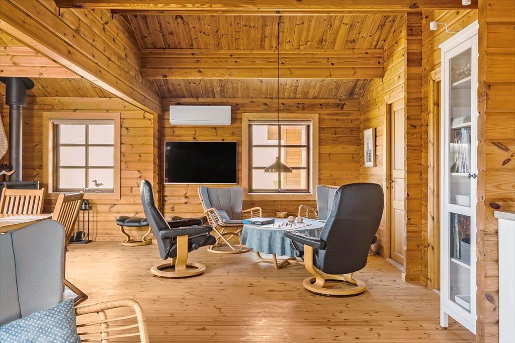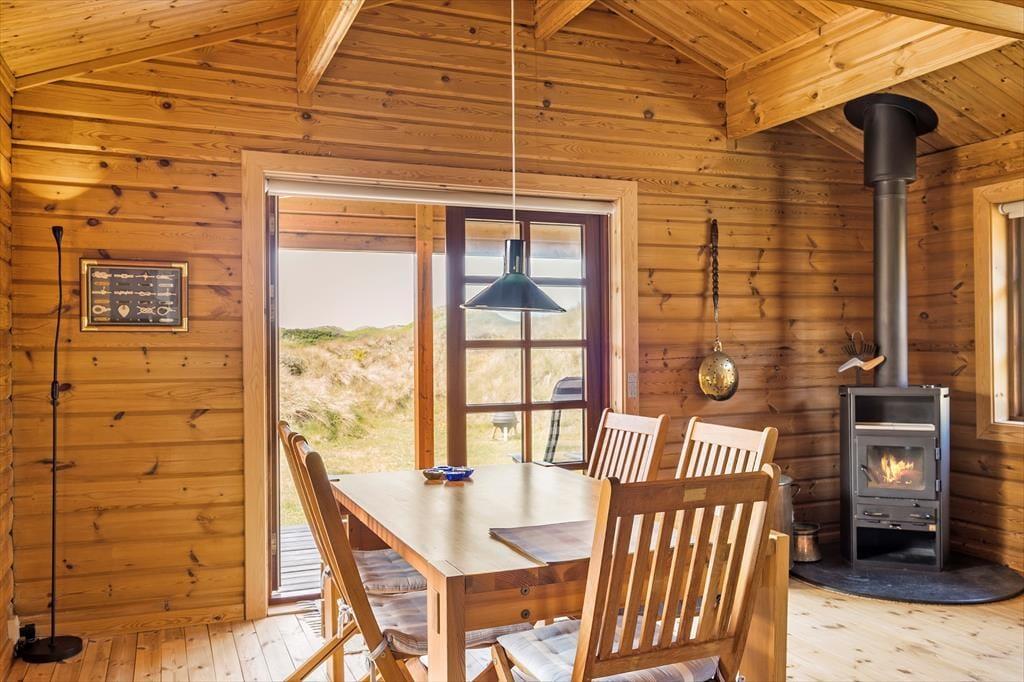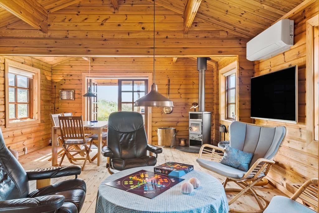 Sommerhuset byder på en indretning, der oser af sjæl og hygge, hvor du straks vil føle dig hjemme. Den store stue er husets hjerte med brændeovn, hvor du kan samles med familien og nyde varme og samvær på de køligere aftener. De store vinduer skaber en lys og åben atmosfære, og du har mulighed for at følge med i naturens gang, mens du slapper af. Køkkenet er funktionelt og åbent, hvilket gør det til et perfekt sted at tilberede måltider sammen, mens den hyggelige stemning i stuen gør det muligt at finde tid til både afslapning og leg. Her er virkelig lagt op til de små, mindeværdige øjeblikke.