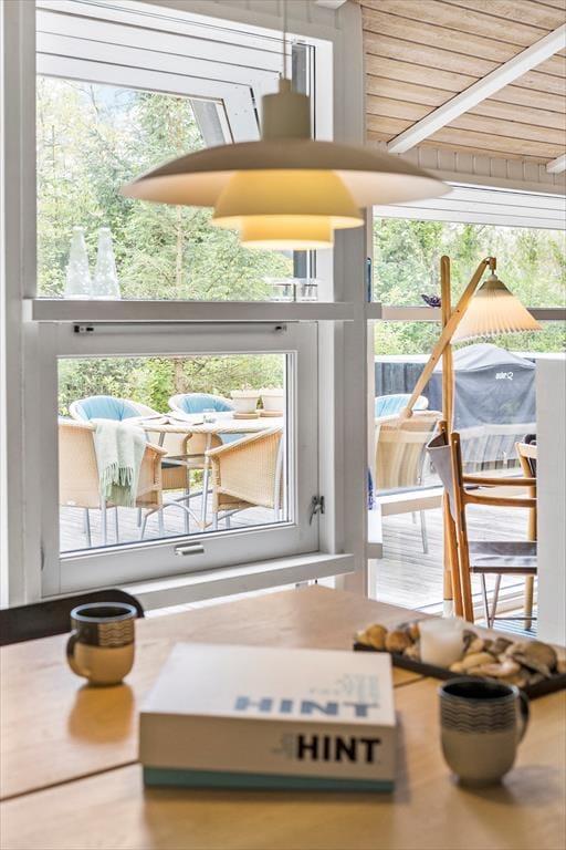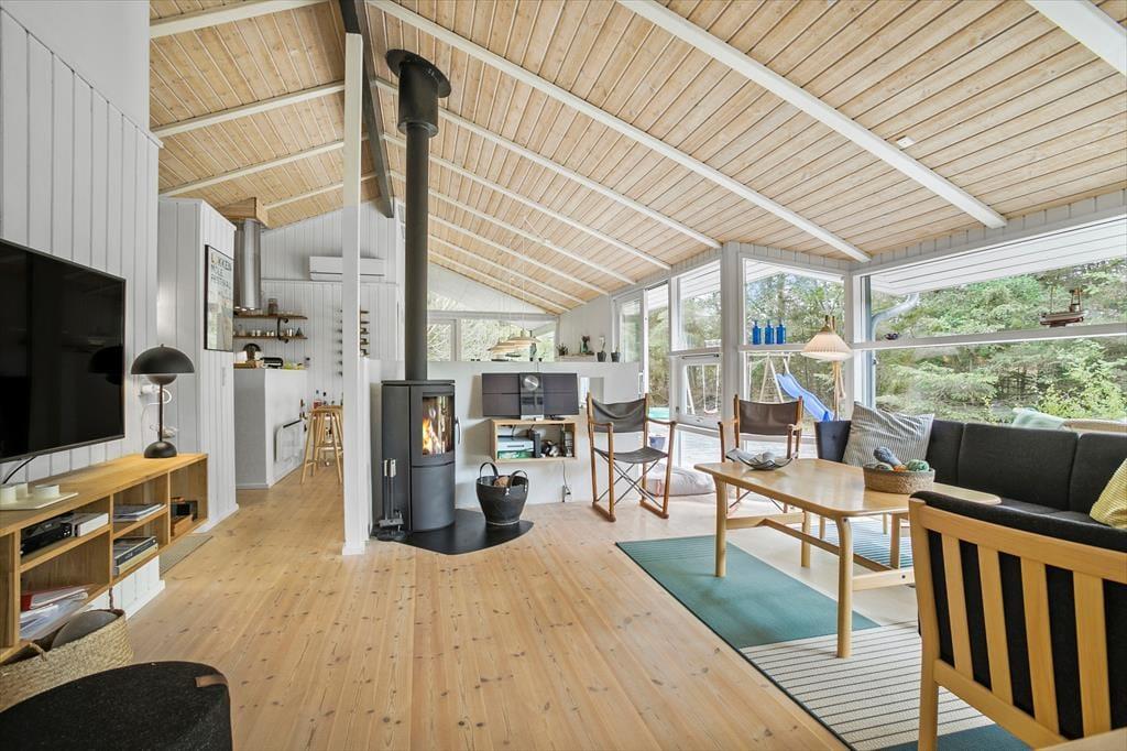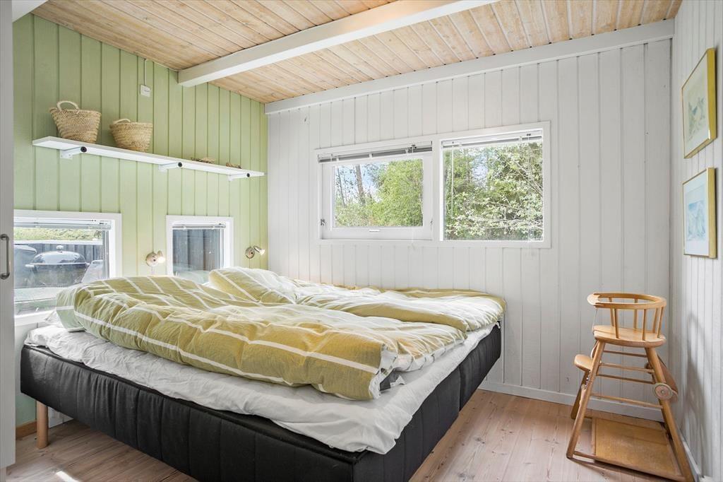 Sommerhuset er velholdt og flot indrettet med højt til loftet og masser af dejligt lys fra de mange vinduer i de fleste rum. Huset er godt udstyret med gode hårde hvidevarer, en flot brændeovn, gratis og trådløst internet og ikke mindst spabadekar og sauna på det store badeværelse, hvor man rigtig kan slappe af efter en lang dag ved stranden. Sommerhuset råder over tre værelser med dobbeltsenge, så det er særdeles velegnet til en almindelig størrelse familie, men også et par eller to vil finde sig godt tilrette her. Alle vil sætte pris på de gode faciliteter og smukke omgivelser!