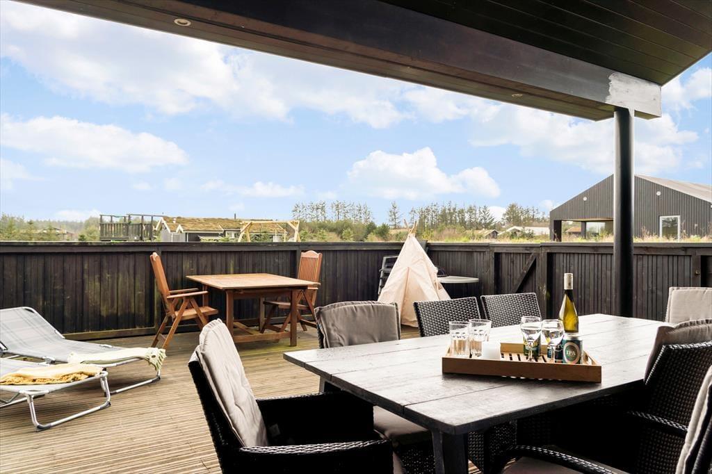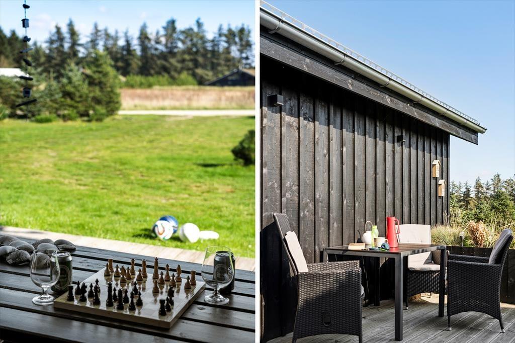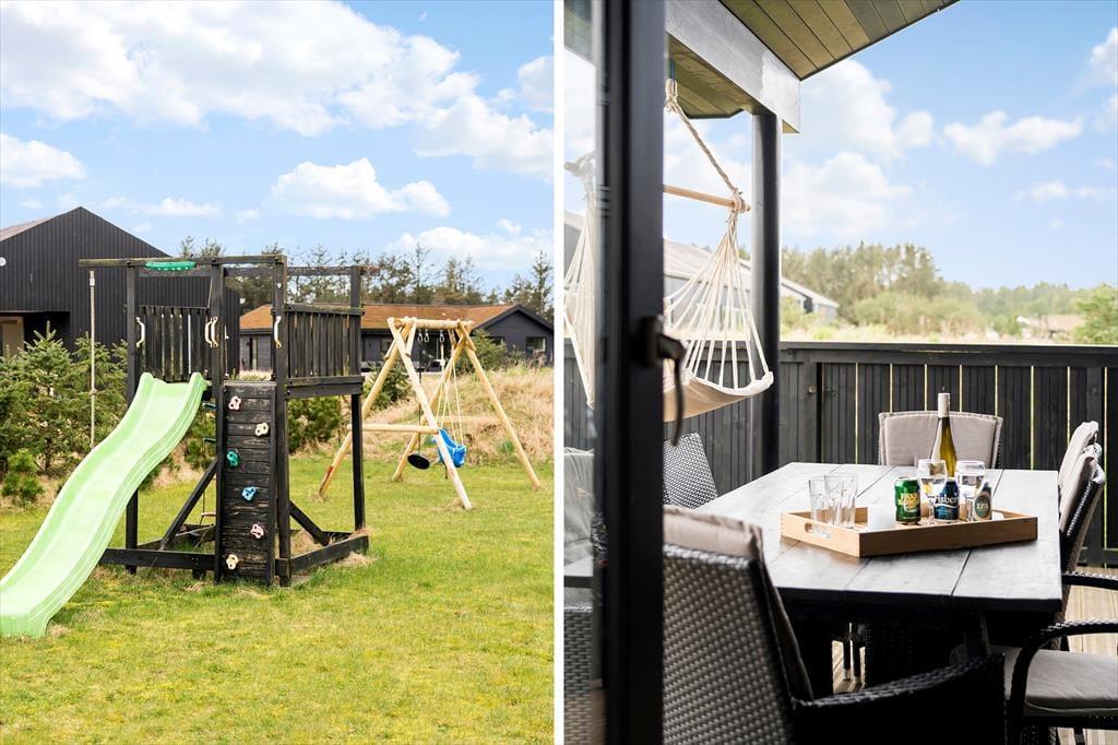 Den store naturgrund er et eldorado for børnene med gyngestativ, klatretårn og andre sjove aktiviteter, der opfordrer til timevis af leg. De voksne kan slå sig ned på en af de flotte terrasser og nyde solen eller en stille stund i skyggen. Terrasserne giver masser af muligheder for at nyde dagens måltider under åben himmel, og med den friske havluft i nærheden bliver stemningen hurtigt helt speciel. Naturgrunden omkranser huset og skaber en fredfyldt ramme, hvor I kan nyde fuglesang og den rolige atmosfære i det smukke landskab.
