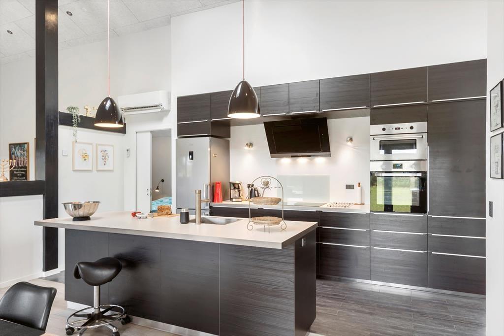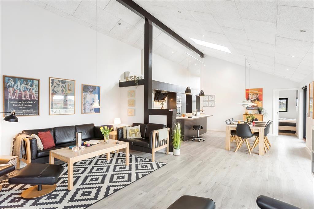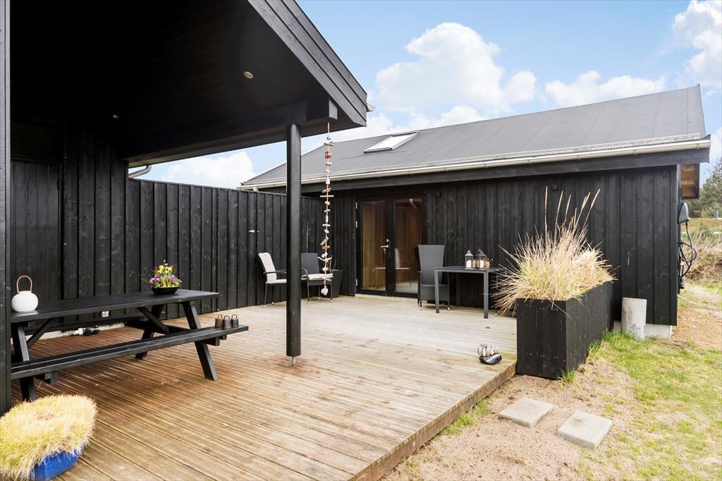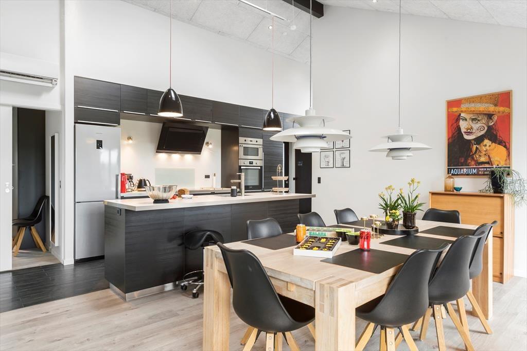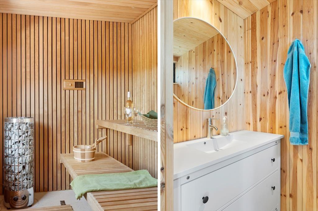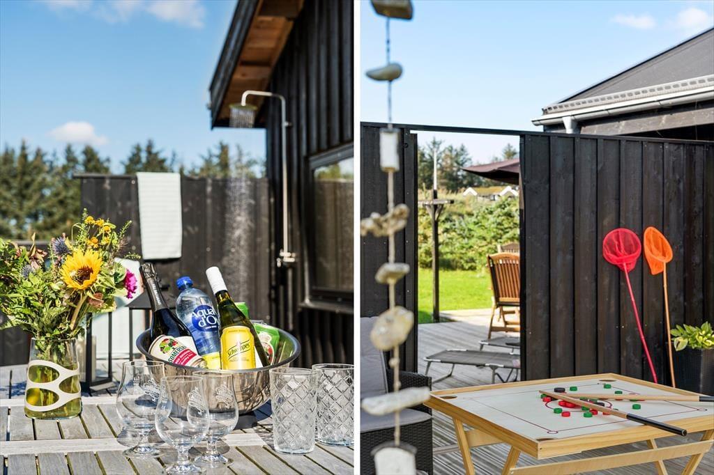 Indenfor venter en lys og moderne indretning, der indbyder til afslapning og hygge. Det rummelige opholdsrum er indrettet med en stilfuld kombination af klassisk sommerhusstemning og moderne design. Her kan I nyde hyggelige aftener foran brændeovnen, spille brætspil ved spisebordet eller lade jer underholde af en god film i sofaen. Det nye anneks er en sand fornøjelse for både børn og voksne. Her finder I et aktivitetsrum, der byder på bordtennis, bordfodbold, dart og meget mere. Efter en dag fuld af sjov kan I forkæle jer selv med en tur i den store sauna, der er designet til at give ren afslapning og velvære.