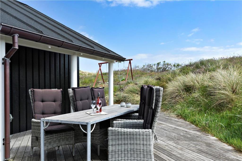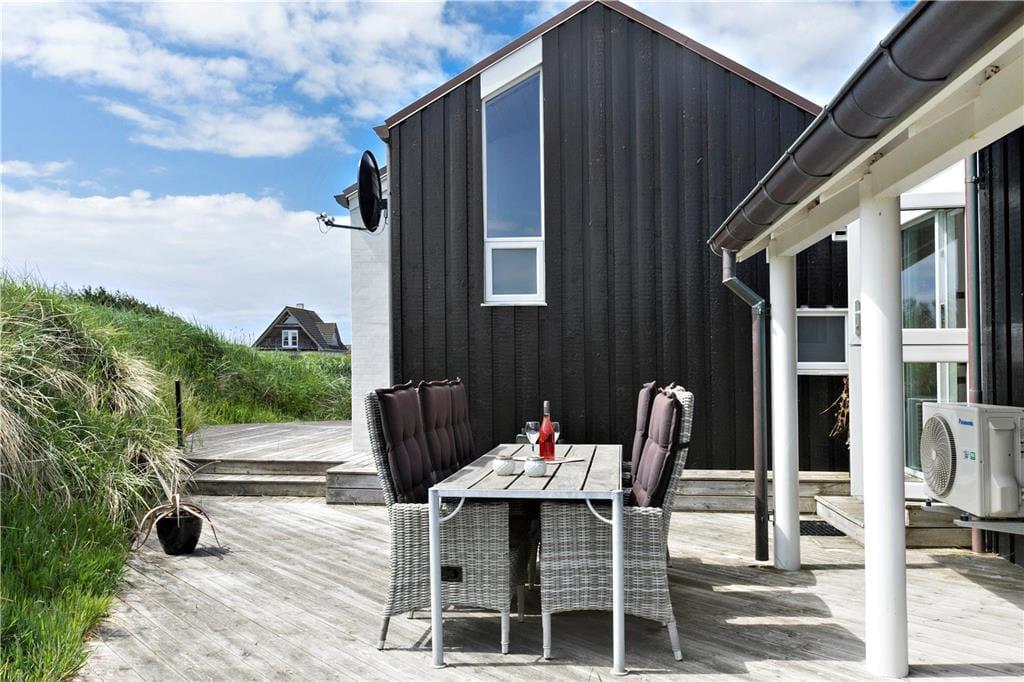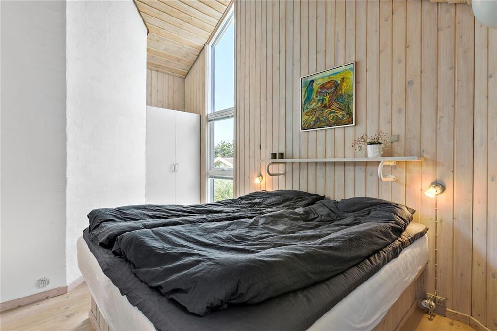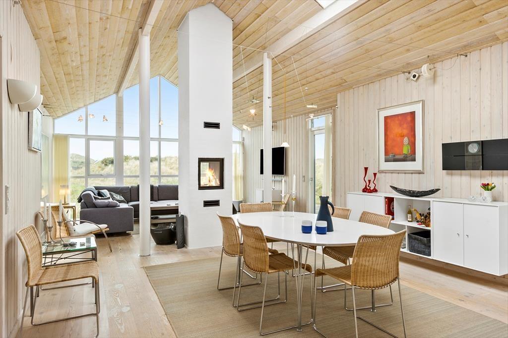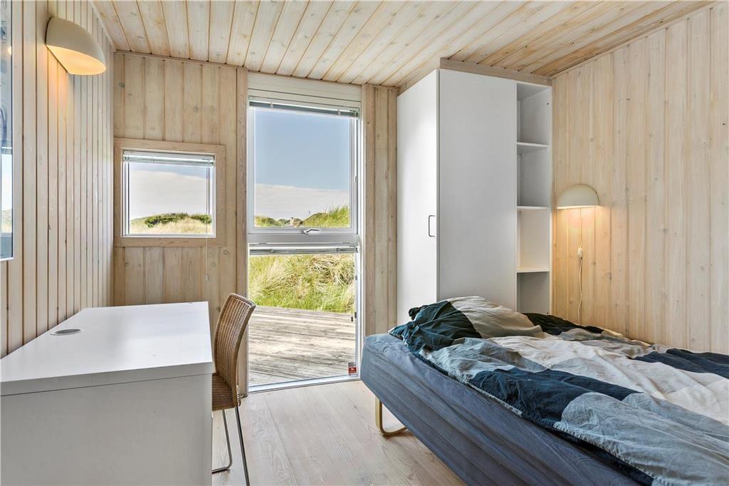 Dette sommerhus er vi stolte af at kunne præsentere; flot, eksklusivt, høj kvalitet og stor grad af komfort beskriver det bedst. I midten af huset ligger et stort og fantastisk flot opholdsrum med loftsvinduer og gulv-til-loftvinduer i den ene gavl; rummet består af et åbent køkken, spiseplads og stue, og det er her familien samles til måltider og hygge. Sommerhusets tre værelser og to badeværelser er placeret, så man kan dele sig op i en voksen og en børneafdeling. Fra det store soveværelse har man adgang til et badeværelse med sauna, hvor det er rart at blive varmet igennem efter en lang travetur ved vandet. Sommerhuset er desuden godt udstyret med hårde hvidevarer, danske og tyske programmer på tv’et og gratis og trådløst internet, så det er nemt at søge informationer op oplysninger om områdets mange muligheder. Dette sommerhus er for alle, som ønsker en afslappende og vellykket ferie i smukke omgivelser.