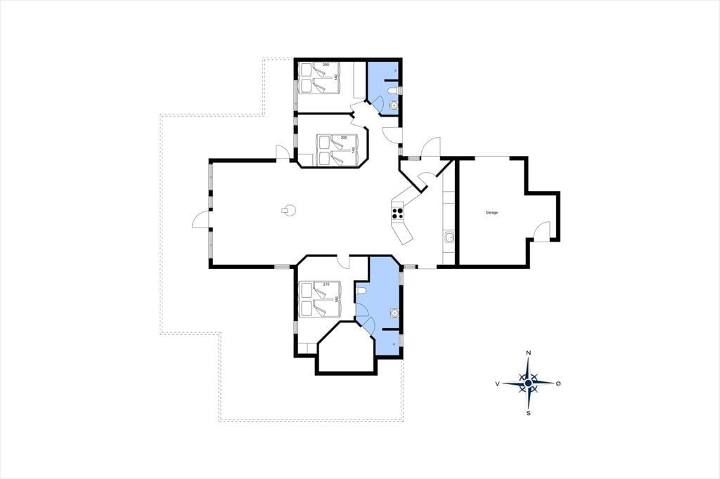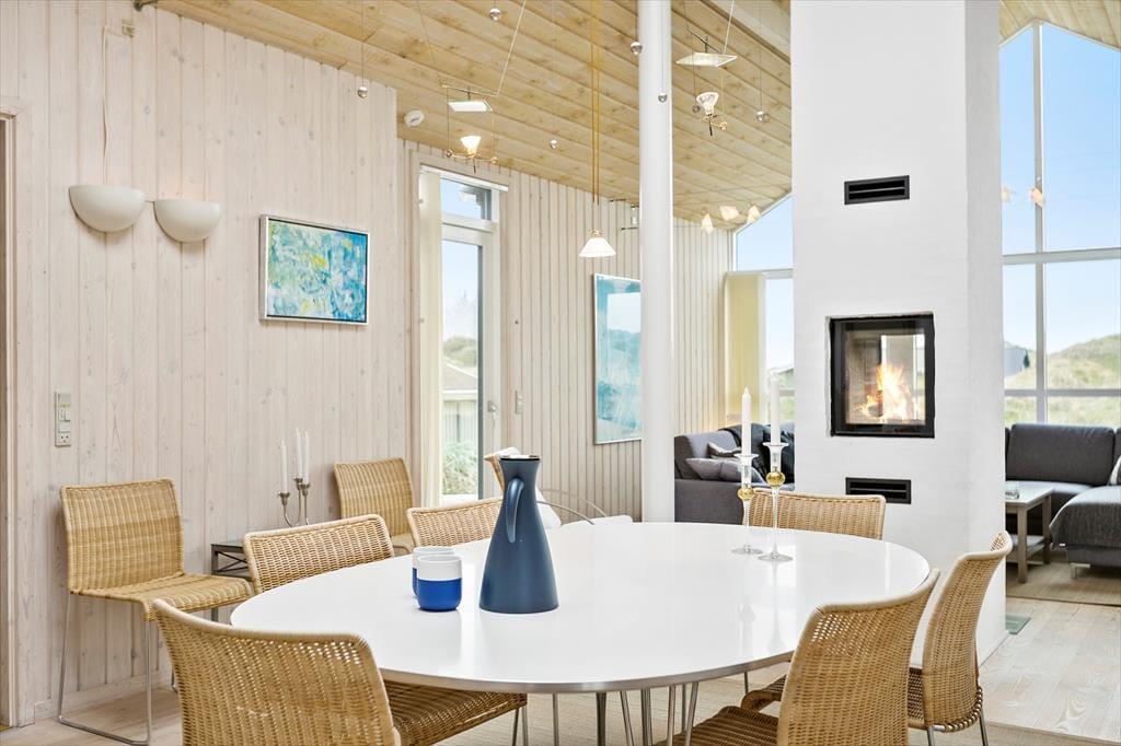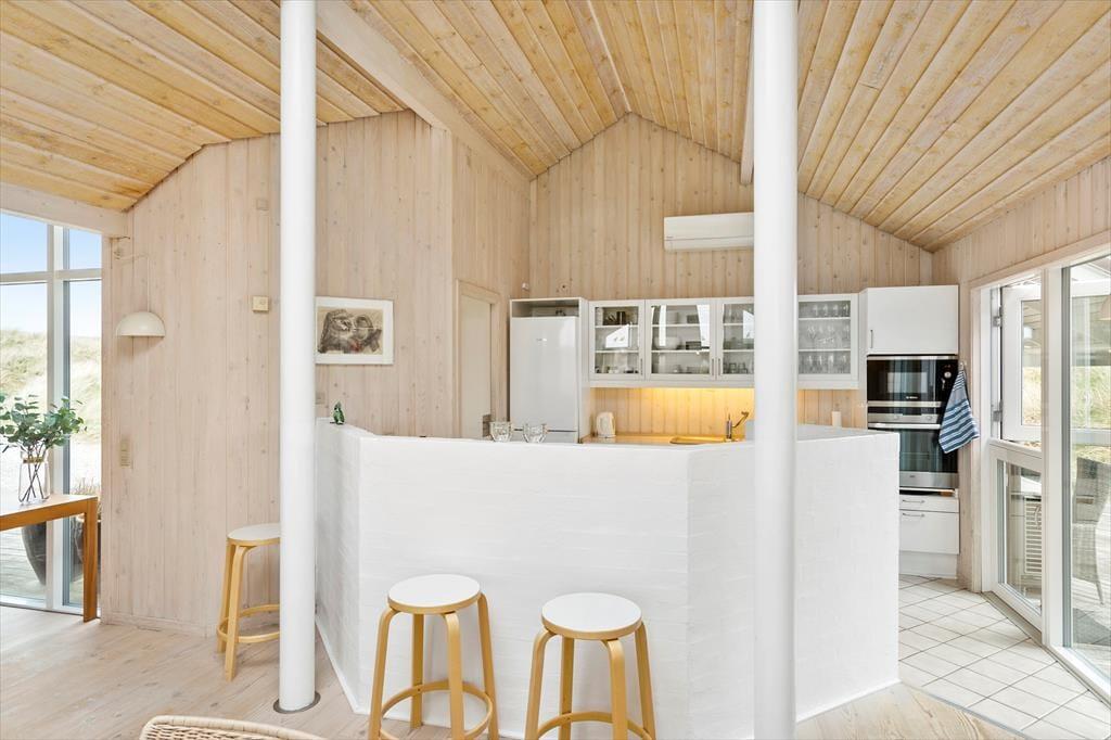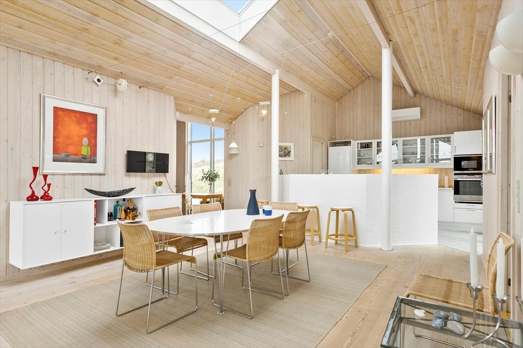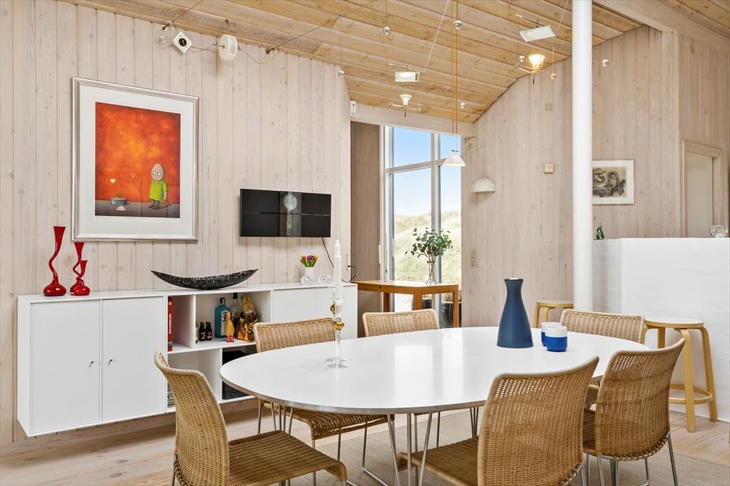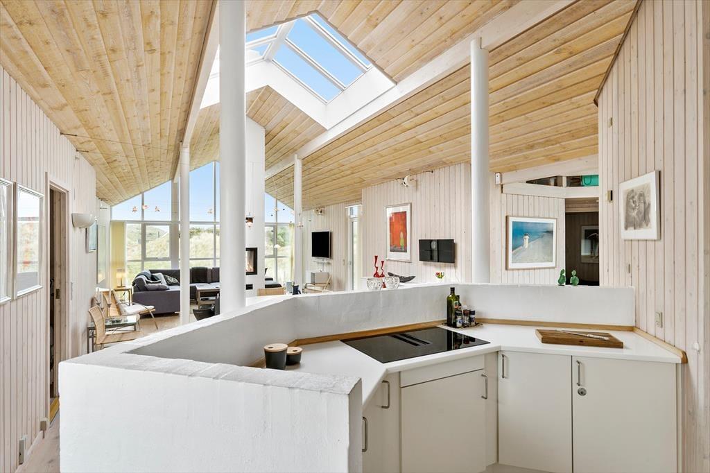 Dette sommerhus er vi stolte af at kunne præsentere; flot, eksklusivt, høj kvalitet og stor grad af komfort beskriver det bedst. I midten af huset ligger et stort og fantastisk flot opholdsrum med loftsvinduer og gulv-til-loftvinduer i den ene gavl; rummet består af et åbent køkken, spiseplads og stue, og det er her familien samles til måltider og hygge. Sommerhusets tre værelser og to badeværelser er placeret, så man kan dele sig op i en voksen og en børneafdeling. Fra det store soveværelse har man adgang til et badeværelse med sauna, hvor det er rart at blive varmet igennem efter en lang travetur ved vandet. Sommerhuset er desuden godt udstyret med hårde hvidevarer, danske og tyske programmer på tv’et og gratis og trådløst internet, så det er nemt at søge informationer op oplysninger om områdets mange muligheder. Dette sommerhus er for alle, som ønsker en afslappende og vellykket ferie i smukke omgivelser.