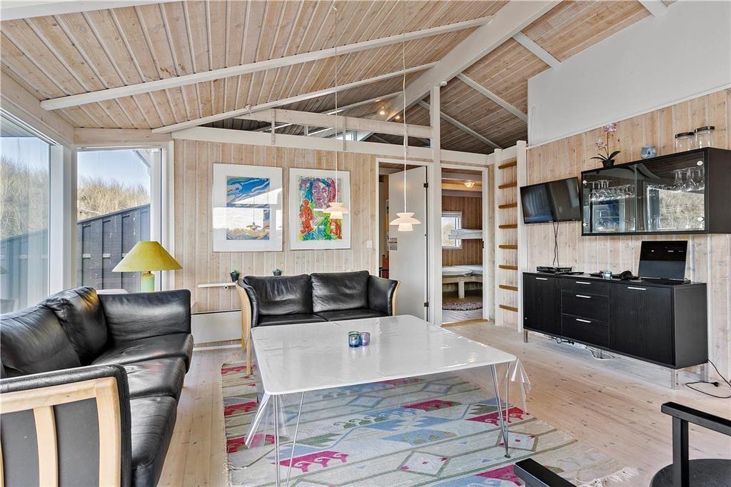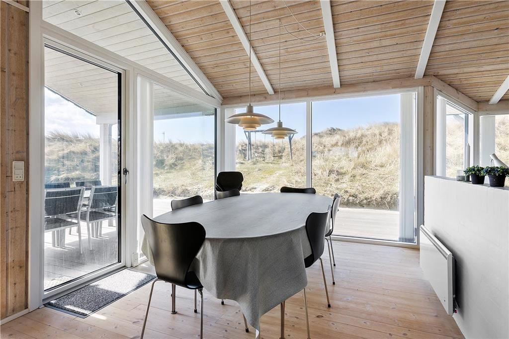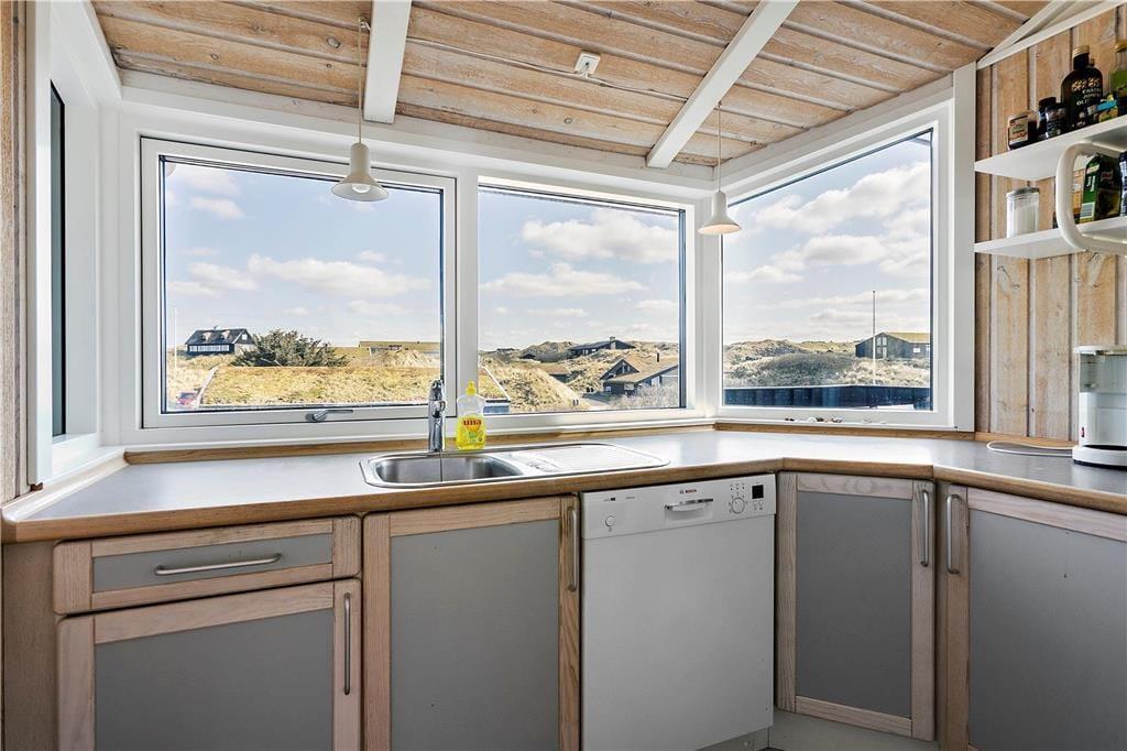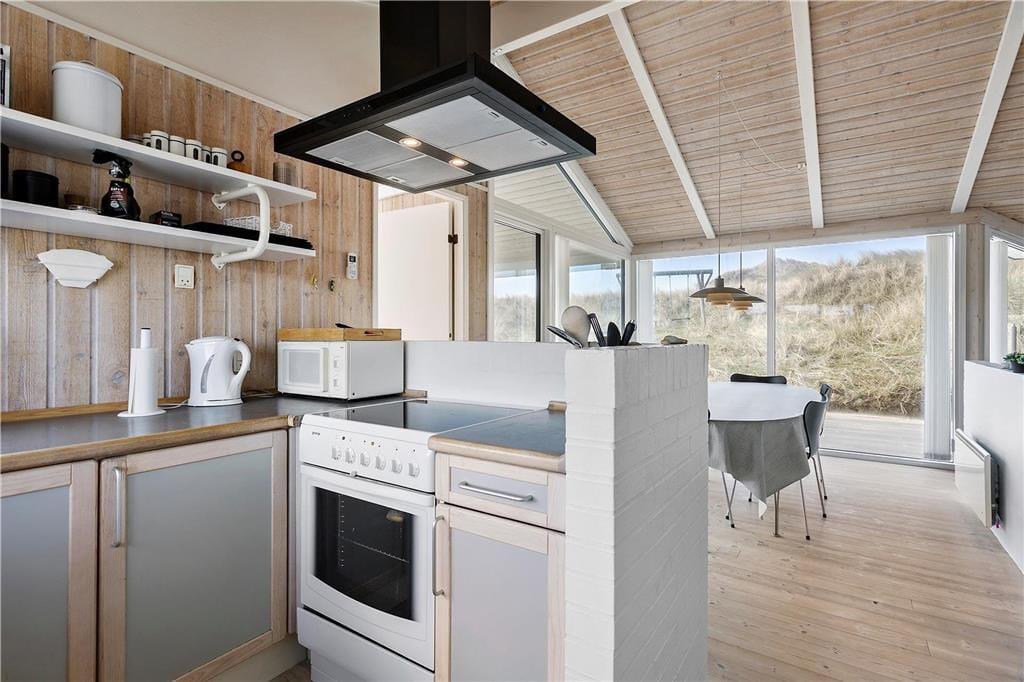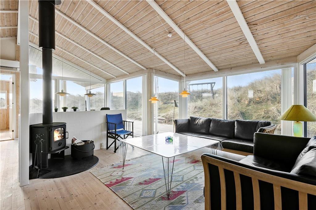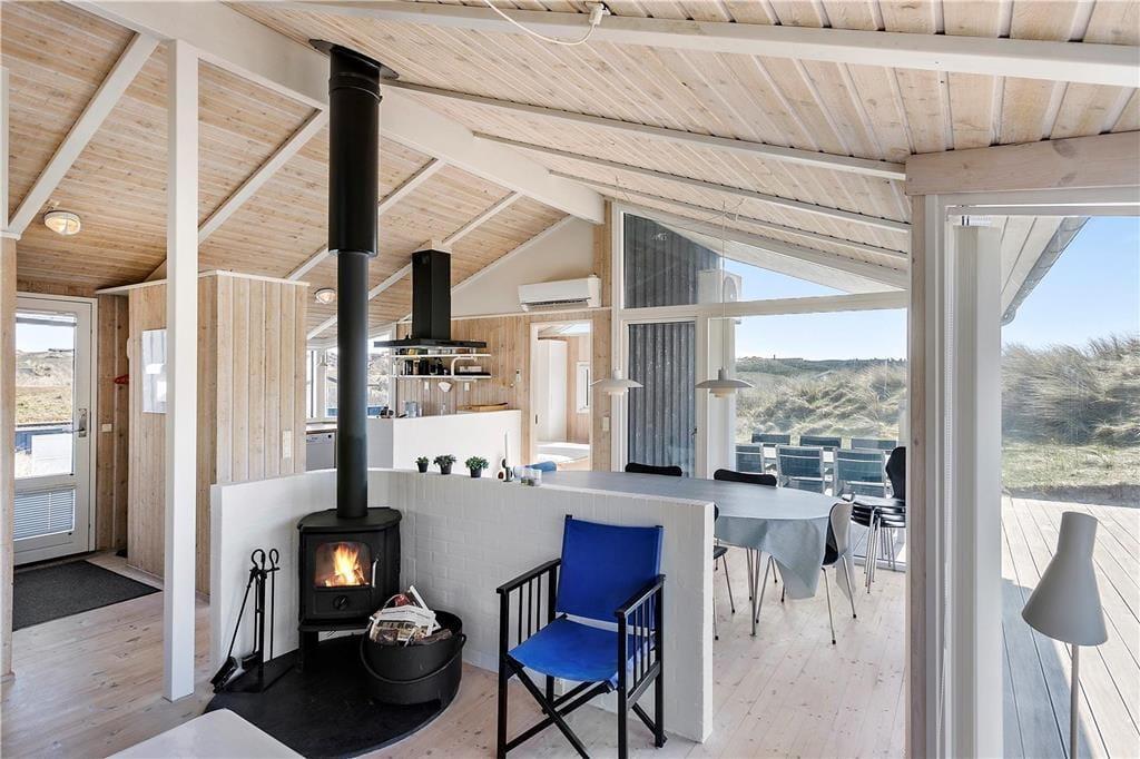 Sommerhuset er moderne og smagfuldt indrettet med masser af lys fra de mange store vinduespartier. Både køkkenet og badeværelset er godt udstyret med gode hårde hvidevarer, så man kan holde en afslappende ferie med fokus på kvalitetstid til familien. På badeværelset kan man desuden også fylde spabadet med varmt vand og tænde op i saunaen, hvis man trænger til lidt wellness-stemning efter en lang dag ved stranden eller på tur rundt i Nordjylland. Sommerhuset råder over et stort og åbent kombineret køkken og opholdsrum med brændeovn, badeværelset og tre værelser med plads til seks overnattende personer og er dermed velegnet til både familie- og parferie. Medbring gerne pc eller tablet, da huset har gratis og trådløst internet installeret.