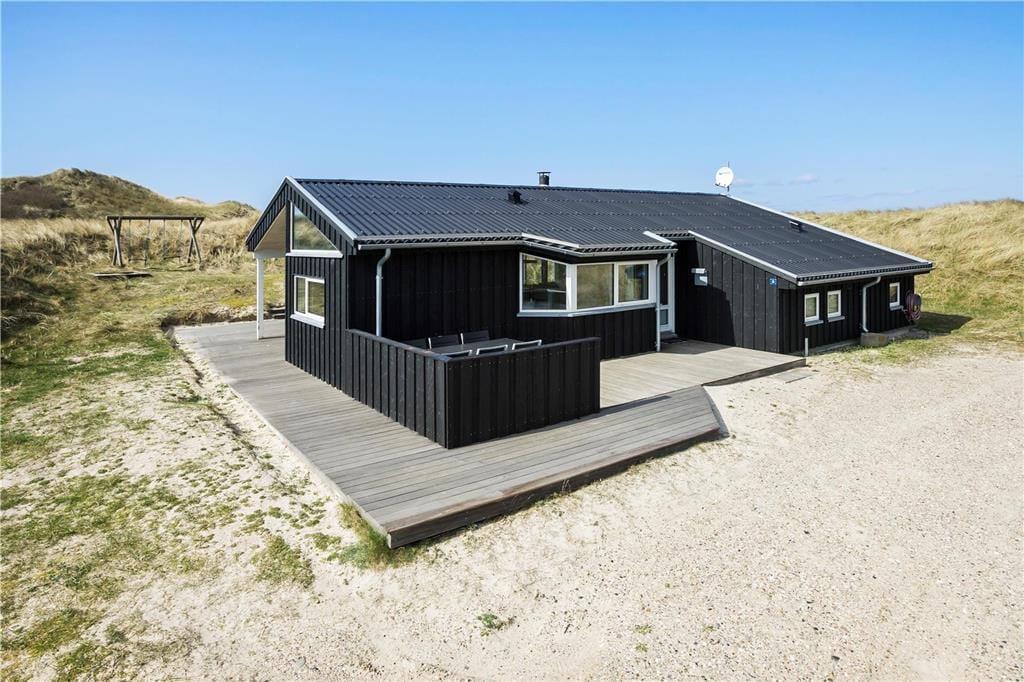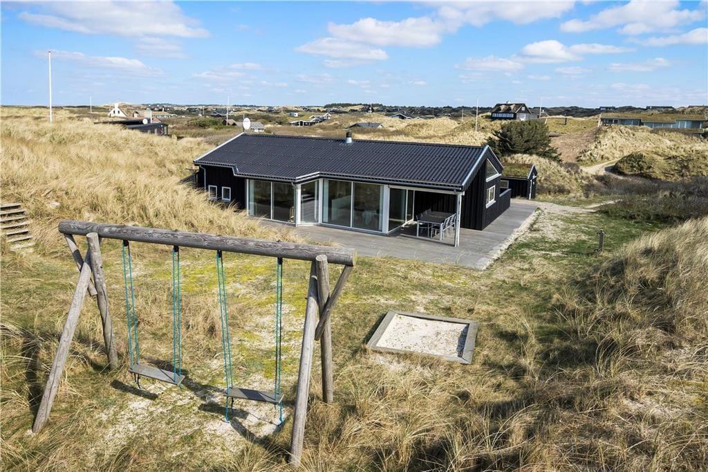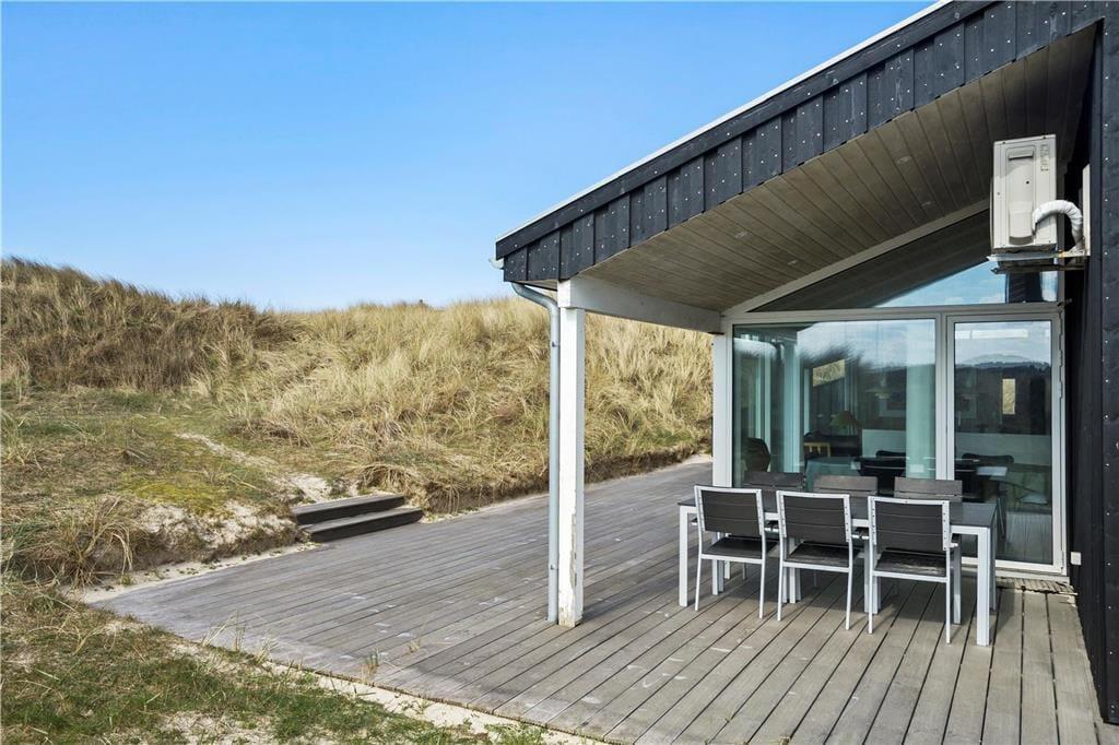 Den 7000m2 store naturgrund ligger i de sidste klitter inden Vesterhavet, og her er plads nok til, at børnene kan lege og tumle og få brugt en masse energi. Ved sommerhuset er både en østvendt terrasse, som er fin til morgenkaffen og en vestevendt med en overdækket del og en dejlig udsigt til klitterne. Når man kommer op til huset fra stranden, kan man vaske sand og salt af kroppen under den udendørs bruser.