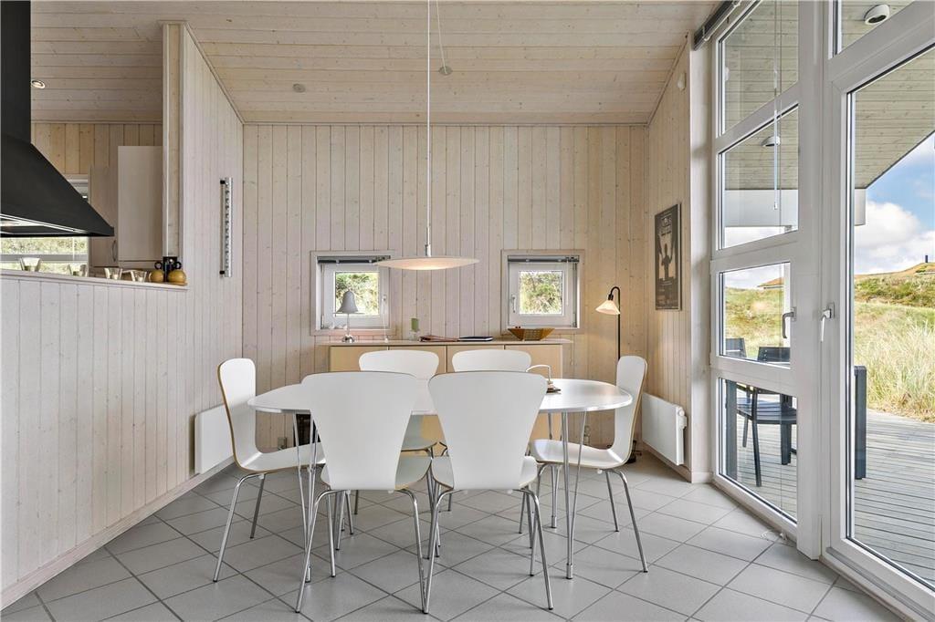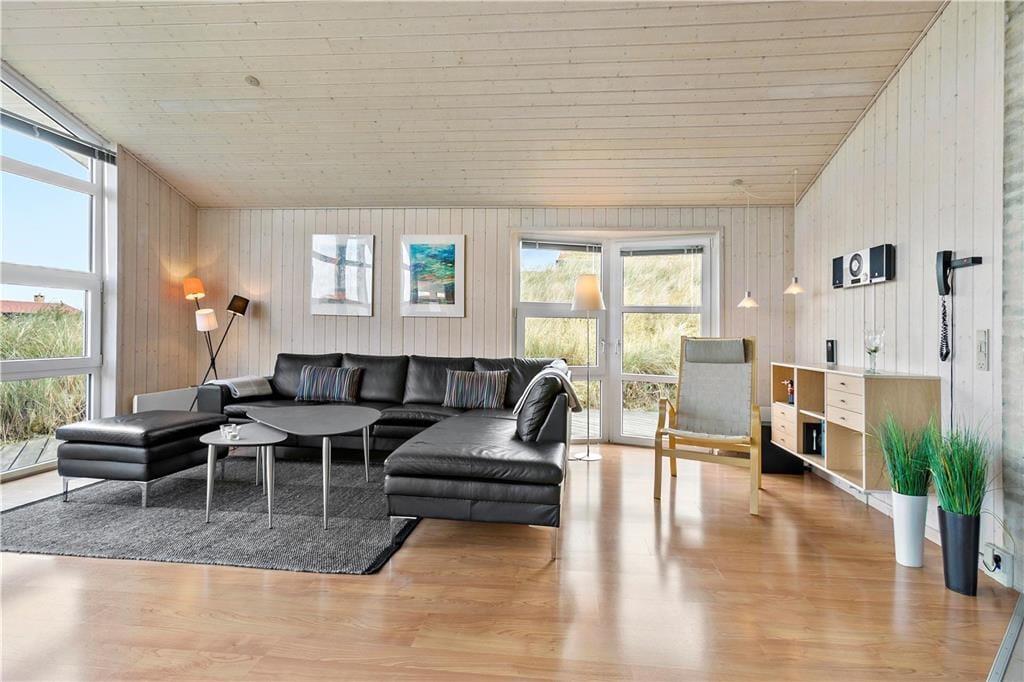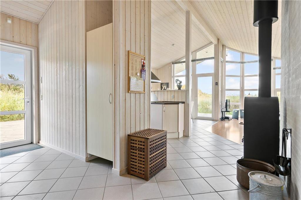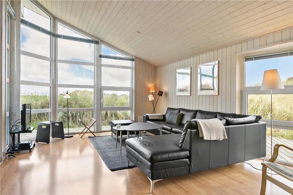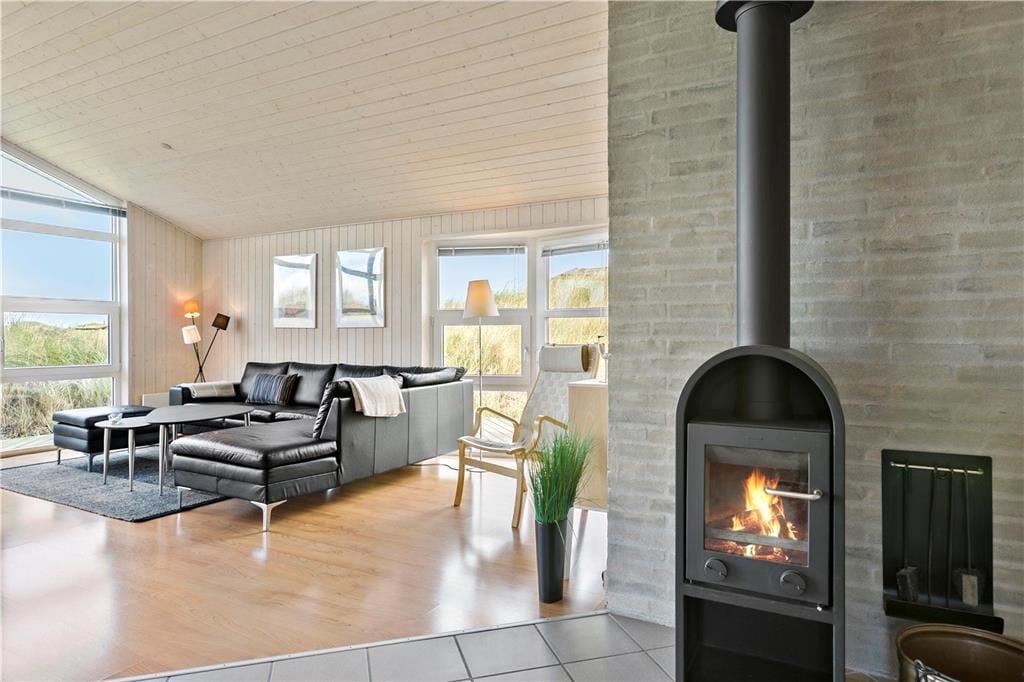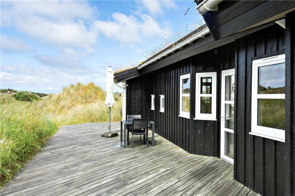 Sommerhuset har alt, hvad man kan drømme om for at få en vellykket ferie med familien; kig til havet, smagfuld og stilren indretning i høj kvalitet, masser af udstyr og hjælpemidler, egen wellnessstemning i form af spabad og sauna og moderne faciliteter som gratis, trådløst internet og parabol med danske og tyske kanaler. Huset er delt praktisk op med værelser og badeværelse til højre for indgangen og det åbne køkken-alrum med stue og brændeovn til venstre. Huset ligger højt, og gennem panoramavinduerne i stuen og spisestuen har man en skøn udsigt til klitområdet med Vesterhavet i baggrunden, som ligger små 500 meter væk. Med seks sengepladser, hvoraf de to er en køjeseng, danner sommerhuset de perfekte rammer for en lille familie eller for to par, som ønsker at holde ferie sammen.