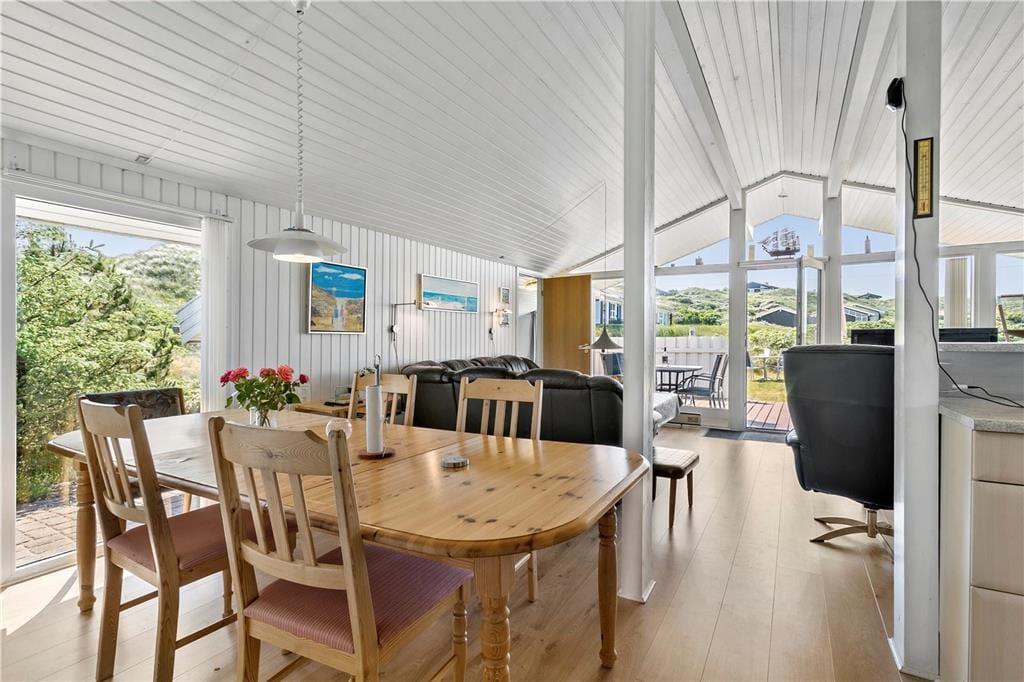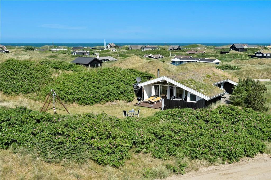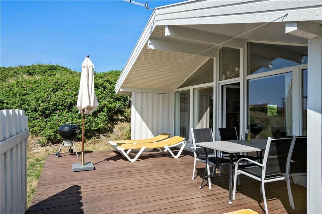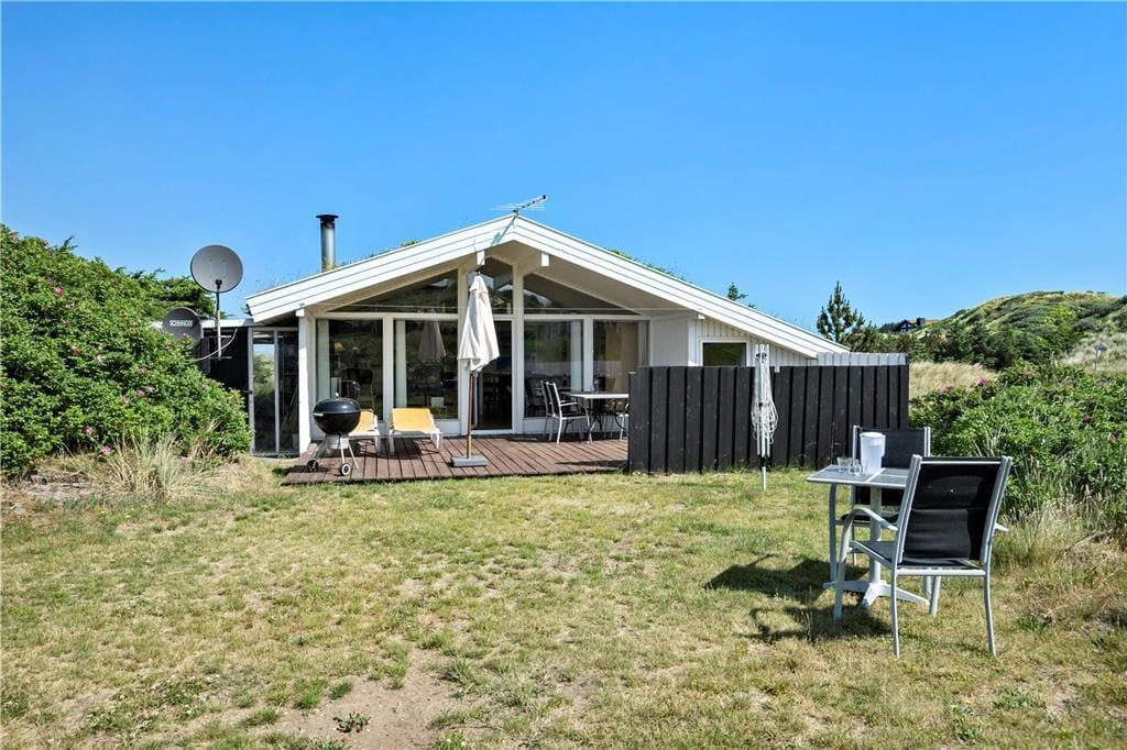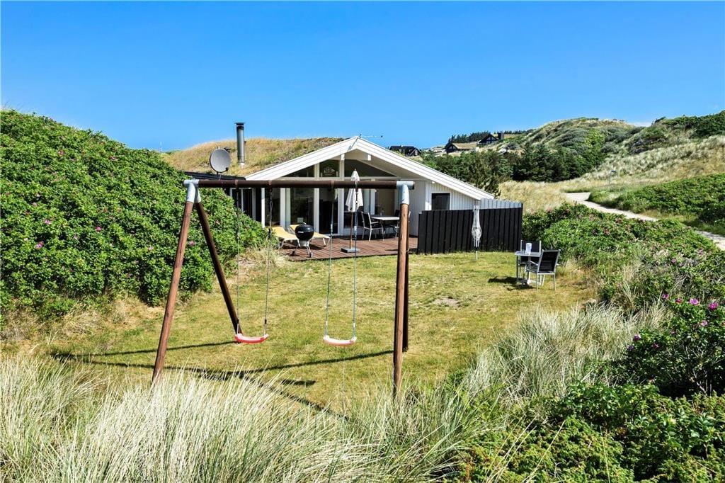 Huset er beliggende på kuperet klitgrund / naturgrund. Her føler man sig i et med naturen. Med terrasser på tre sider af huset, er der rig mulighed for at finde en lækrog. Og nyde solens stråler både morgen, middag og aften. Havemøbler og grill er naturligvis til rådighed. Her er der base for masser af udetimer, og så ligger huset kun 300 meter fra stranden og det brusende Vesterhav.