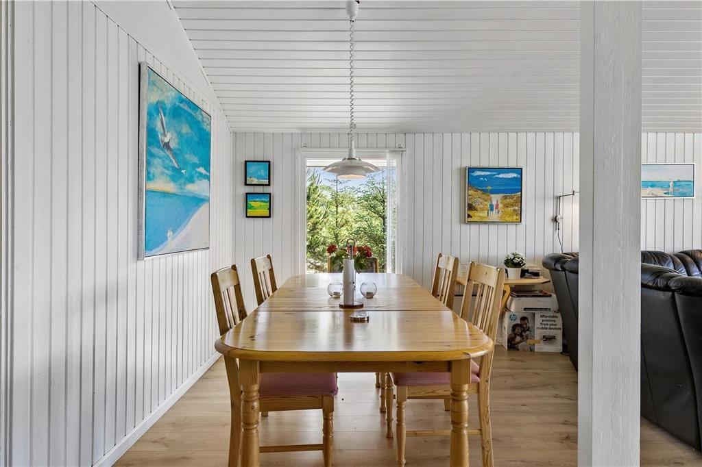 Velindrettet feriehus der overalt udstråler ejerens gode fornemmelse for stemning og hygge. Loft til kip og store vinduespartier er med til at give et godt lysindfald. Køkkenet er ud i et med stuen. Her kan hele familien samles over et spil ludo eller man kan sidde ved brændeovnen med god bog og en kop kaffe. Huset er indrettet med to badeværelser, hvor det ene har både spabad og sauna , så der er rig mulighed for afslapning efter en hyggelig feriedag med oplevelser i det nordjyske. Huset råder over alle moderne faciliteter såsom opvaskemaskine, vaskemaskine, varmepumpe og naturligvis frit internet. Uden at der er gået på kompromis med hyggen.