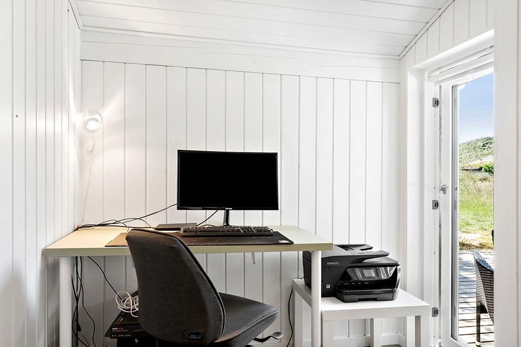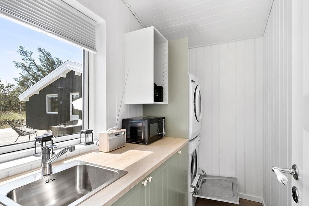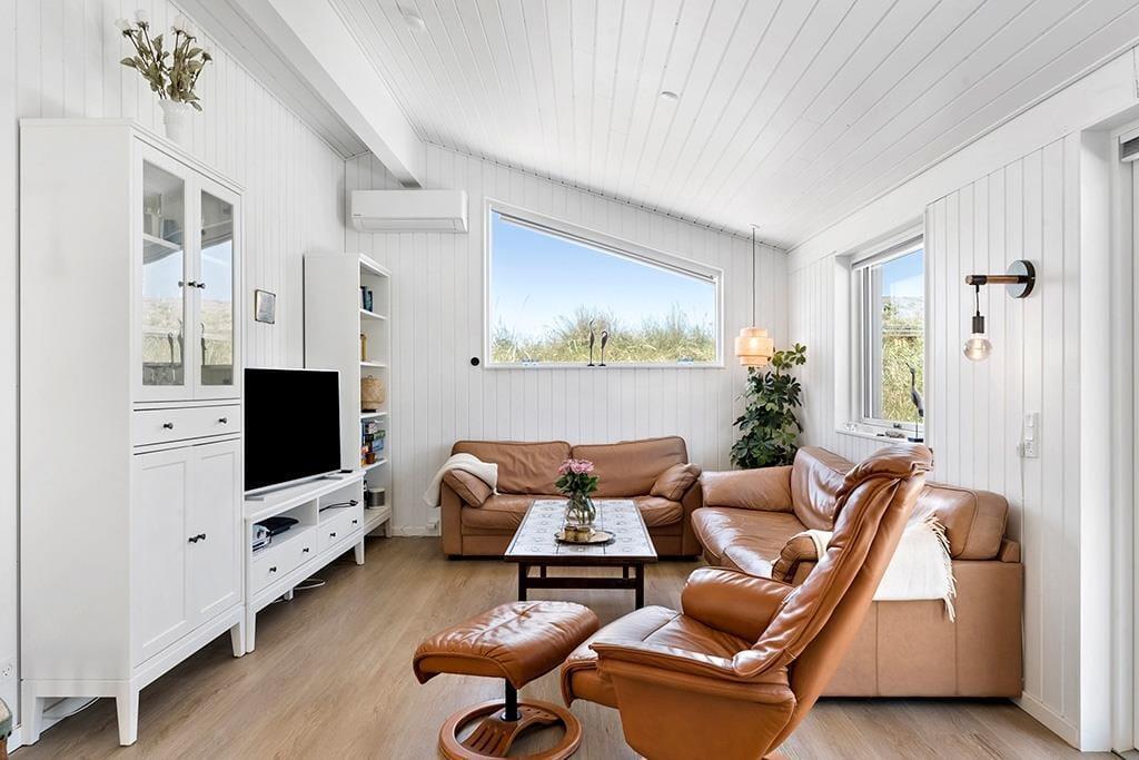 Sommerhusets indretning er lys og venlig med stilfulde møbler og store vinduespartier, der trækker naturens lys helt ind i rummene. Opholdsrummet fungerer som det naturlige samlingspunkt, hvor du kan nyde hyggelige måltider, brætspilsaftener og afslapning foran tv’et. Det moderne køkken er udstyret med alt, hvad du har brug for til feriens madlavning, og der er god skabsplads til opbevaring af dine dagligvarer. Uanset om du er på ferie med familie eller venner, vil du her føle dig hjemme i komfortable rammer.