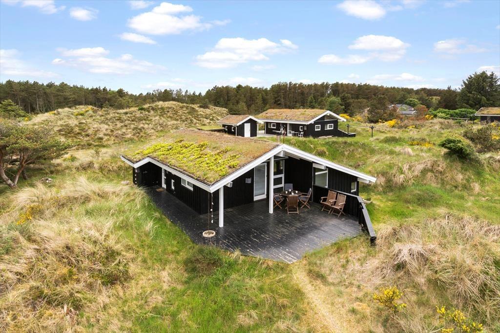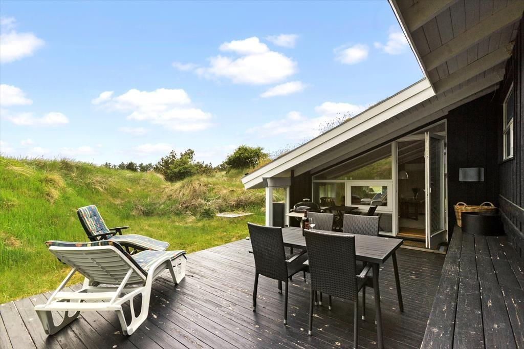 Naturgrunden måler hele 3500 m2 og er særdeles skøn med bløde, små klitter, der skærmer sommerhuset af og giver læ på terrasserne. Der er flere terrasseområder at vælge imellem, så det er let at finde en god solkrog dagen lang, og om aftenen kan I sætte jer under overdækningen. Grill, havemøbler og liggestole er til fri afbenyttelse, så I kan både kokkerere, nyde maden og få en siesta ude i det fri.