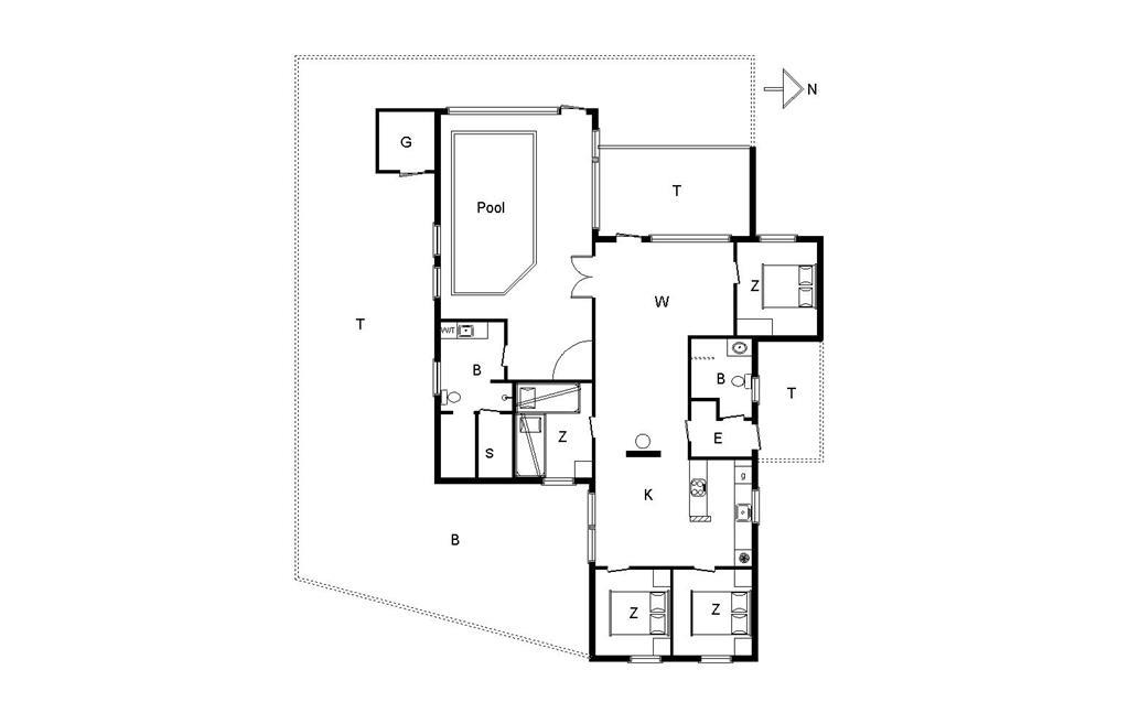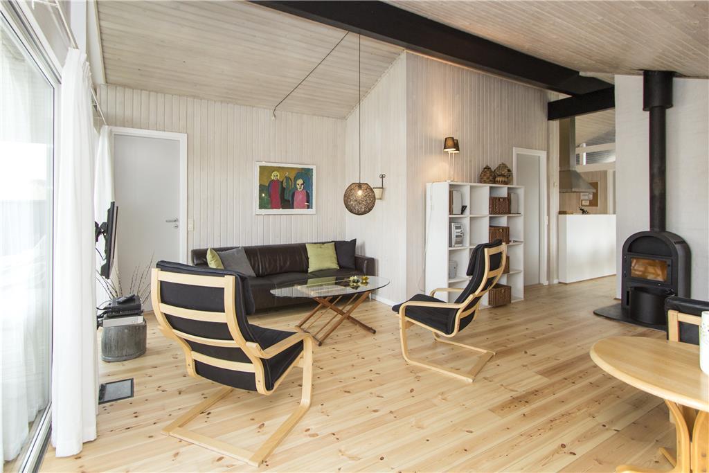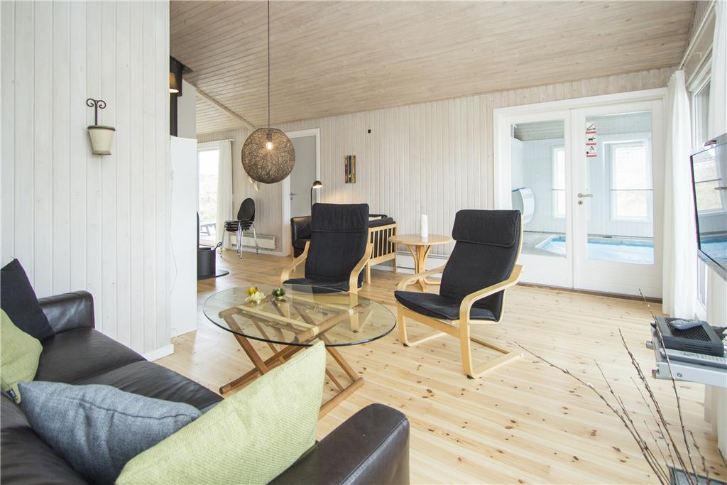 Træd ind i en lys og indbydende stue med højt til loftet og store vinduespartier, der giver et fantastisk lysindfald og en smuk udsigt over naturen. Den centrale brændeovn skaber en hyggelig atmosfære, perfekt til afslapning efter en dag i naturen. Fra stuen er der direkte adgang til et imponerende poolrum med børnevenlig pool, modstrømsanlæg og spabad – ideelt til både leg og afslapning. For enden af poolrummet finder du et stort badeværelse med sauna, hvor du kan få varmen efter en dukkert.