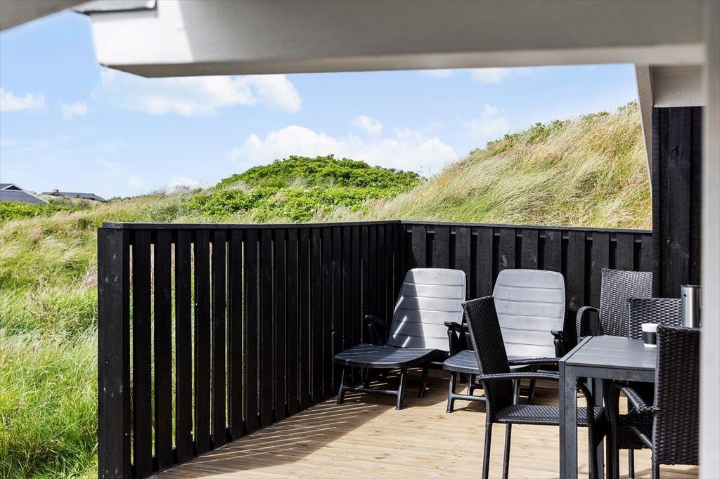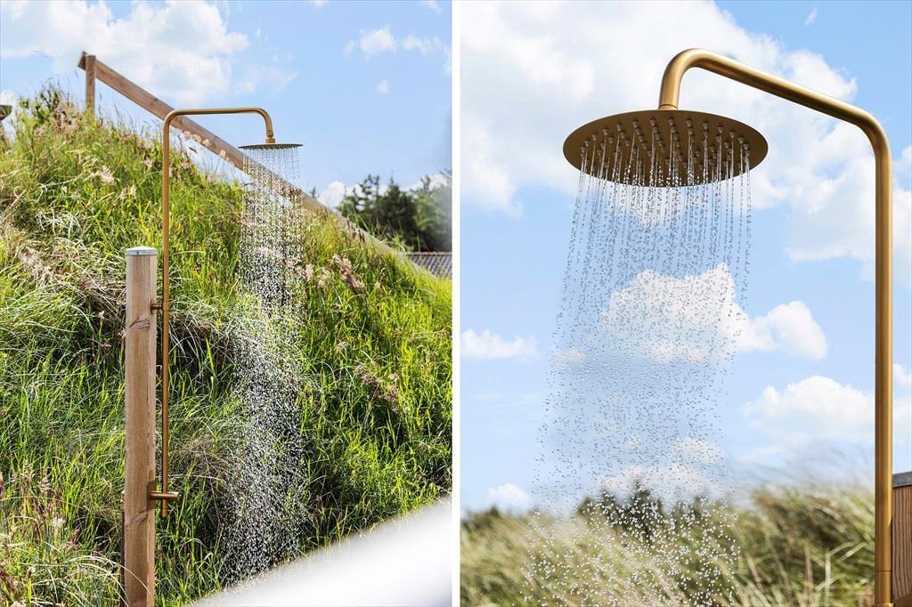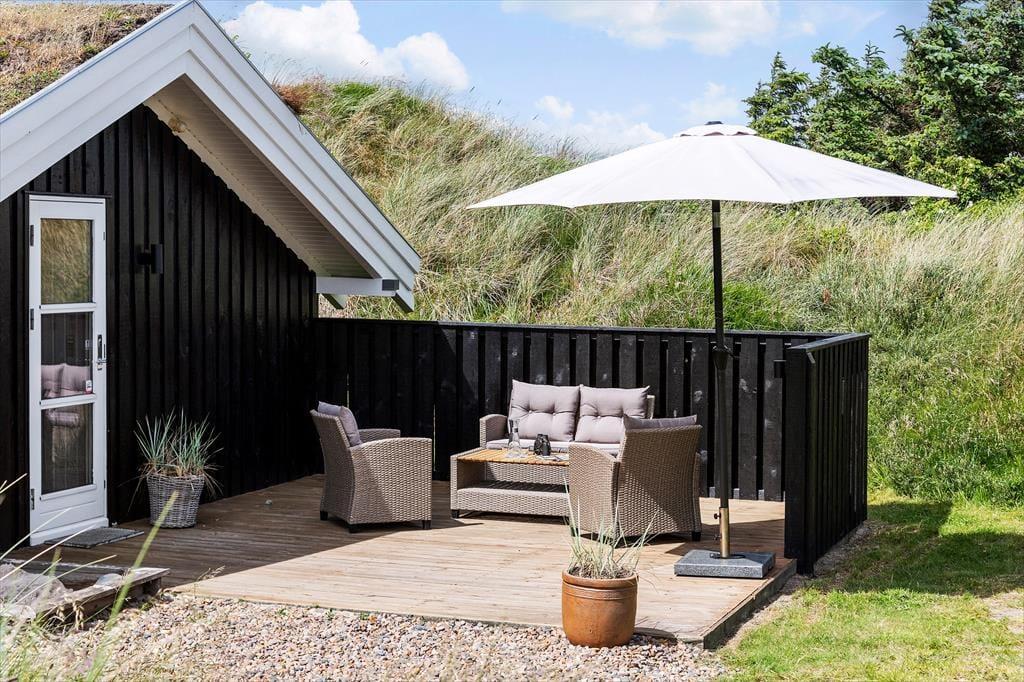 Udelivet i dette sommerhus er lige så indbydende som indendørs. Flere terrasser gør det muligt at finde den perfekte spot, hvad enten du er på udkig efter sol eller skygge. En skøn udendørsbruser giver dig mulighed for at friske op efter en dag på stranden eller bare nyde den friske luft på en varm sommerdag. Den store, ugenerte naturgrund indbyder til leg, afslapning og uforstyrrede stunder i solen. Om aftenen kan du tænde op i grillen og nyde en middag under åben himmel, mens du ser solen gå ned over landskabet.