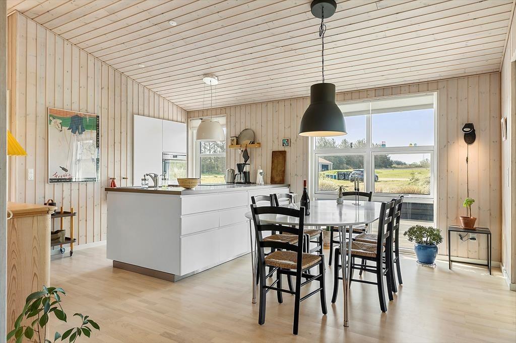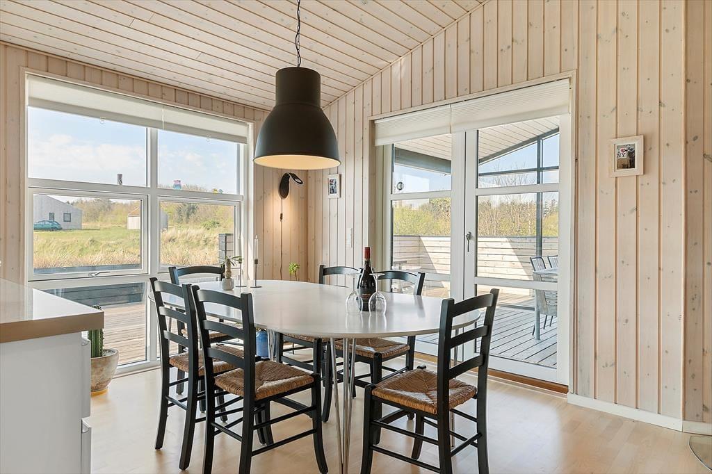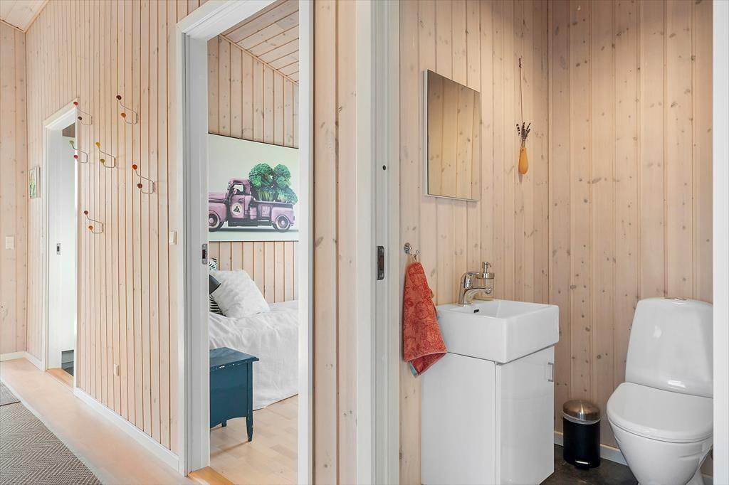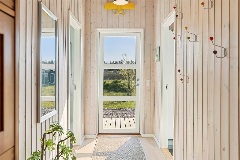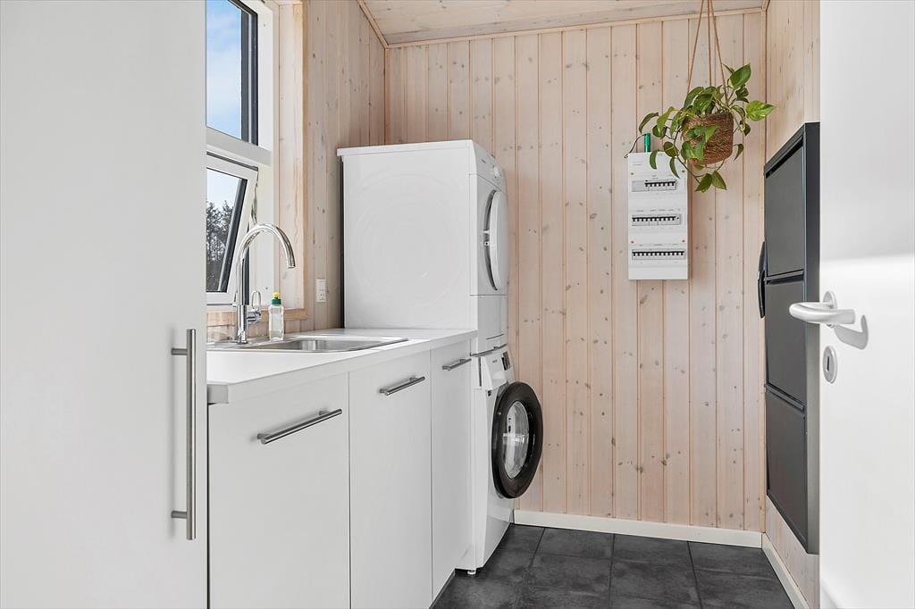 Indenfor møder du et åbent og indbydende opholdsrum med smukt lysindfald fra de store vinduer. Køkkenet er flot og moderne, og det åbne alrum gør det perfekt til at samles med familien. Brændeovnen giver en hyggelig atmosfære, og her er virkelig mulighed for at slappe af og nyde varmen fra ilden. Sommerhuset byder desuden på et lækkert badeværelse med spabad, hvor du kan forkæle dig selv med et afslappende karbad efter en aktiv dag. Huset er rummeligt, og du vil hurtigt føle dig hjemme, uanset om du planlægger at tilbringe din ferie i huset eller ude i naturen.