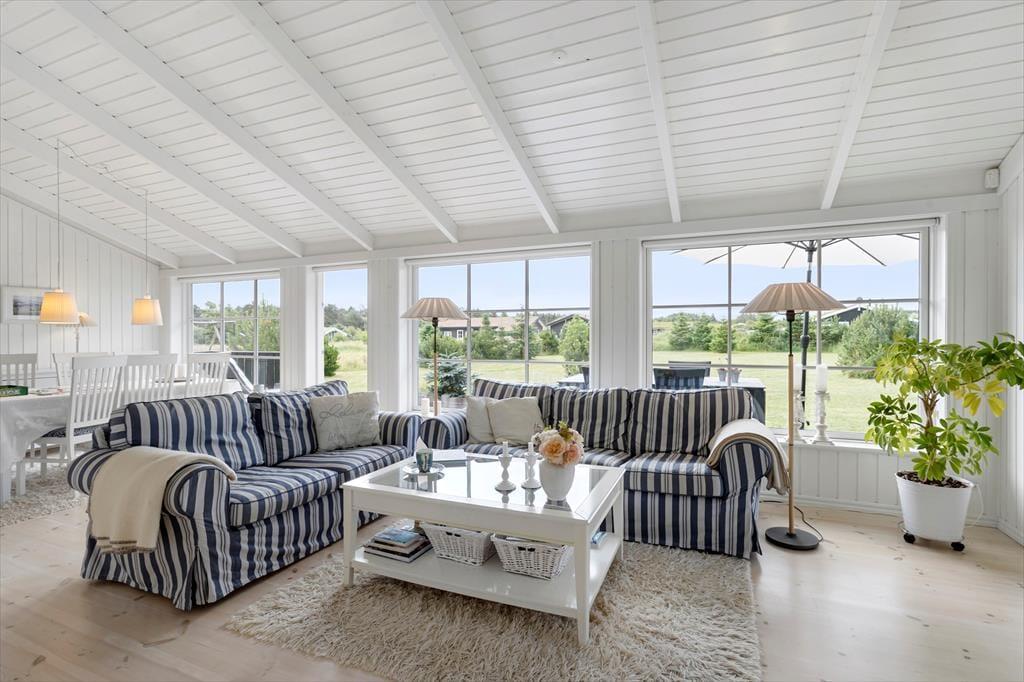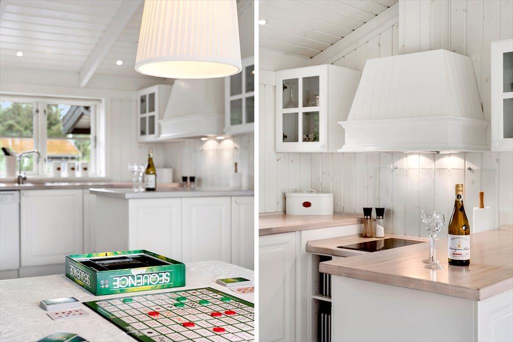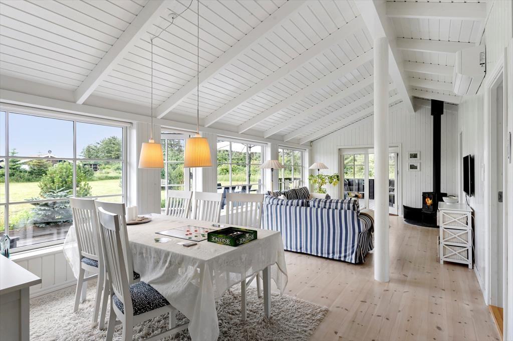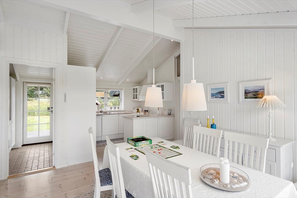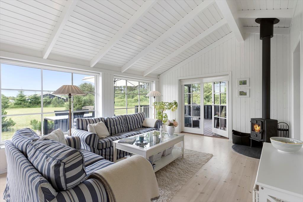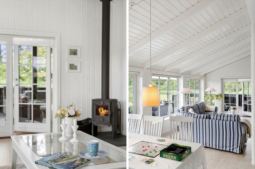 Når du træder indenfor i dette charmerende sommerhus, mødes du af et lyst og åbent indre, der emmer af varme og hygge. Den lyse indretning skaber en indbydende atmosfære, og de mange smukke detaljer i sommerhusets design understøtter den klassiske, danske sommerhusstil. Stuen er et ideelt samlingspunkt for både afslapning og hyggeligt samvær, og med en rummelig indretning kan alle finde deres eget hjørne at nyde ferien i. Det stilfulde badeværelse med spa og sauna giver mulighed for at forkæle sig selv, når der er brug for lidt ekstra velvære. Hele huset indbyder til lange, afslappende dage med god mad, brætspil og gode samtaler – perfekt til ferie med familie eller venner.