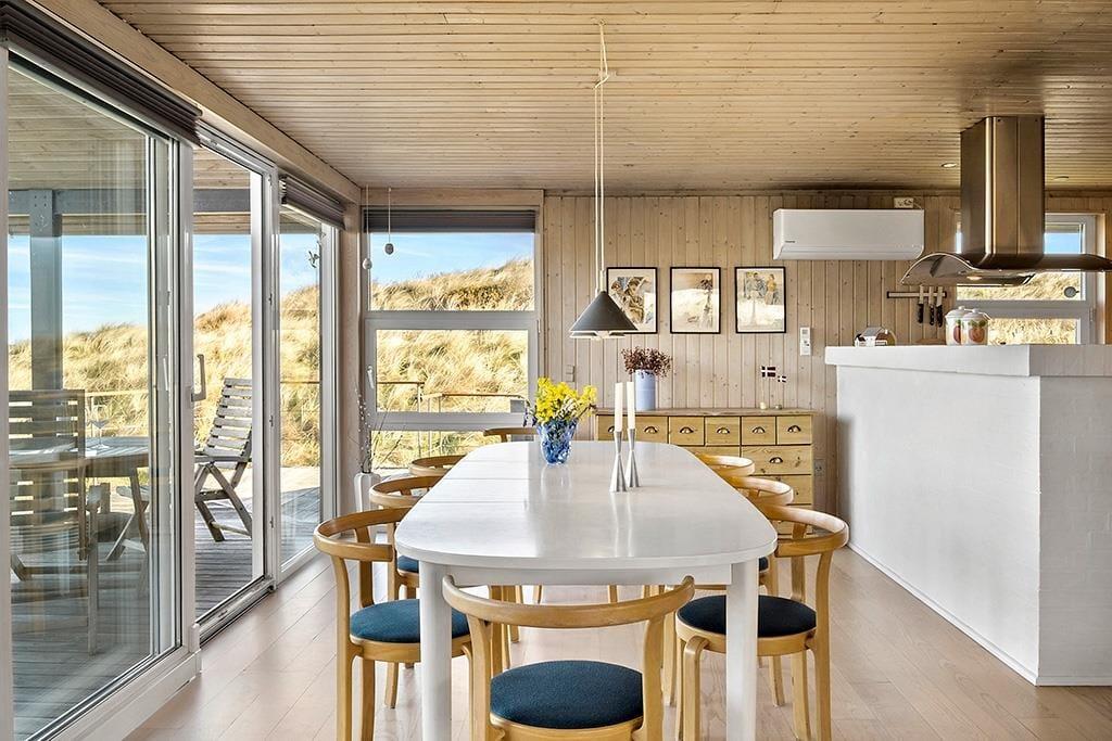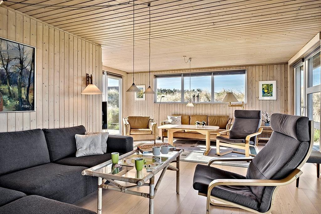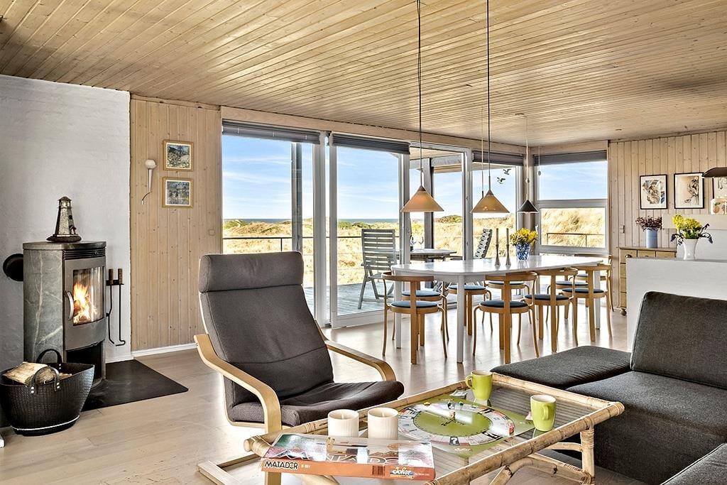 Indenfor er sommerhuset fyldt med den klassiske sommerhusstemning, som gør det til et ideelt valg for både små og store familier. Den åbne opholdsstue er hjertet i huset og indbyder til hygge og samvær med dem, du holder af. Store vinduespartier giver en fantastisk udsigt til den omkringliggende natur og havet i horisonten. I stuen er der plads til at slappe af og nyde en god bog ved brændeovnen eller til at spille brætspil med familien. Det hyggelige køkken gør det nemt at tilberede de dejligste måltider, som kan nydes sammen ved spisebordet, mens I kigger ud på naturen.
